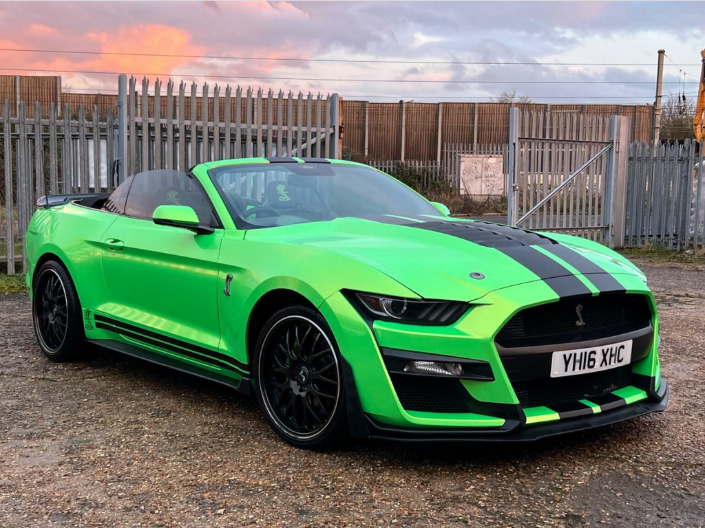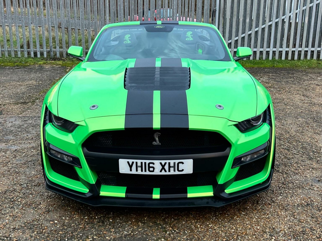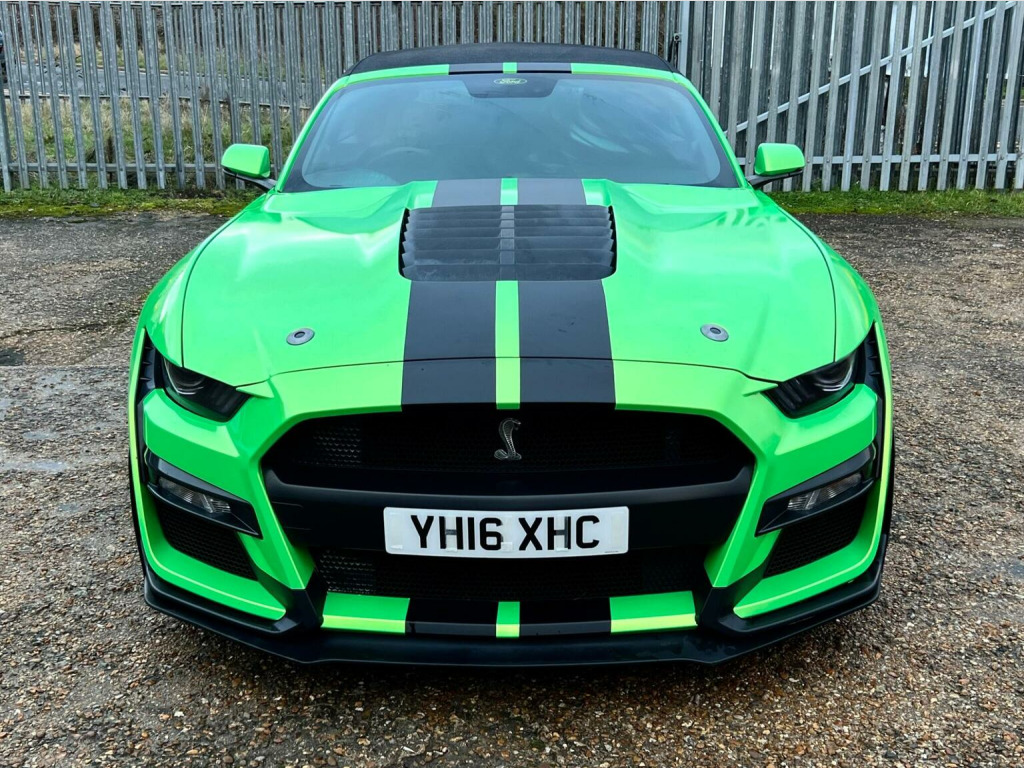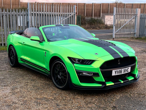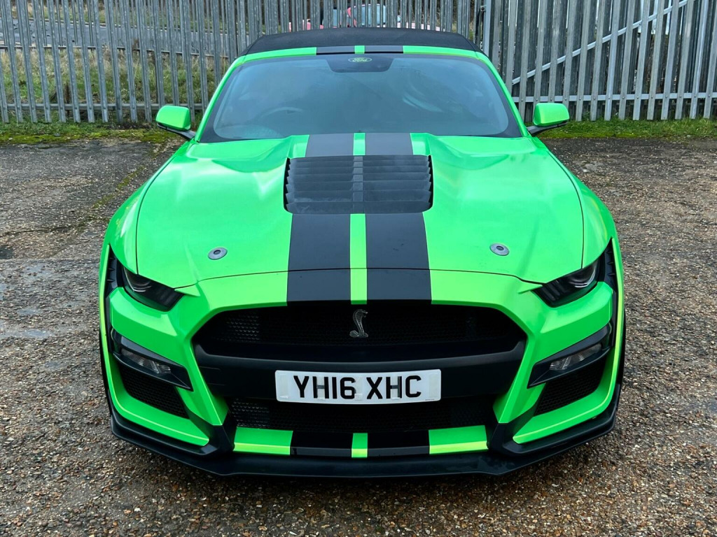 HETR WE HAVE AN OUTSTANDING SHELBY GT-500 STYLING Ford Mustang 5.0 V8 GT SelShift Euro 6 2dr, PROFESSIONALLY DONE PREMIUM HIGH GLOSS WRAP IN GREEN COLOUR, GT-500 STYLING UPGRADED COBRA RACING SEATS AND FULLY UPGRADED COBRA STYLING CARBON INTERIOR, UPGRADED ALLOYS, MODIFIED, FULLY LOADED, SERVICE HISTORY, MOT DUE 20/08/2026,, SATELLITE NAVIGATION, EXCELLENT CONDITION IN AND OUT, DRIVE SUPERB, EXCELLENT TYRES CONDITION, This 2016 Ford Mustang V8 GT offers an exhilarating driving experience with its powerful 5.0L petrol engine, meeting Euro 6 emissions standards. This model benefits from automatic headlights, a rear view camera for easier parking, and a KeyFree system for effortless entry. Stay connected on the go with the integrated Bluetooth handsfree phone system and enjoy your favourite music through Bluetooth audio streaming.The Mustang V8 GT stands out with its impressive acceleration, achieving 0-62mph in just 4.8 seconds, demonstrating its superior performance compared to similar vehicles. Furthermore, this model boasts a surprisingly large boot space, making it practical for everyday use, and is situated in a low insurance group, offering excellent value. £99 ADMIN CHARGES APPLY AS WELL, DRIVEWAY INSURANCE AVAILABLE(OPT), DELIVERY AVAILABLE(OPT), ALL CARDS PAYMENTS ACCEPTED,, WE ARE LOCATED AT 98 COLLEGE STREET, KEMPSTON, BEDFORD, MK428LU