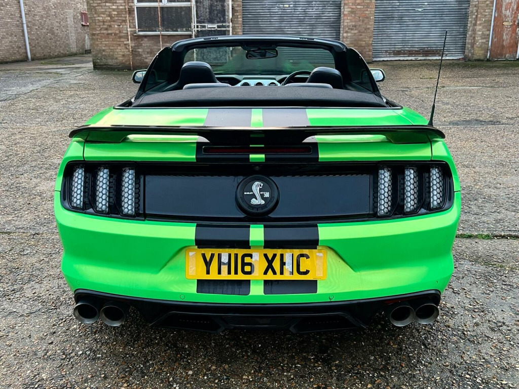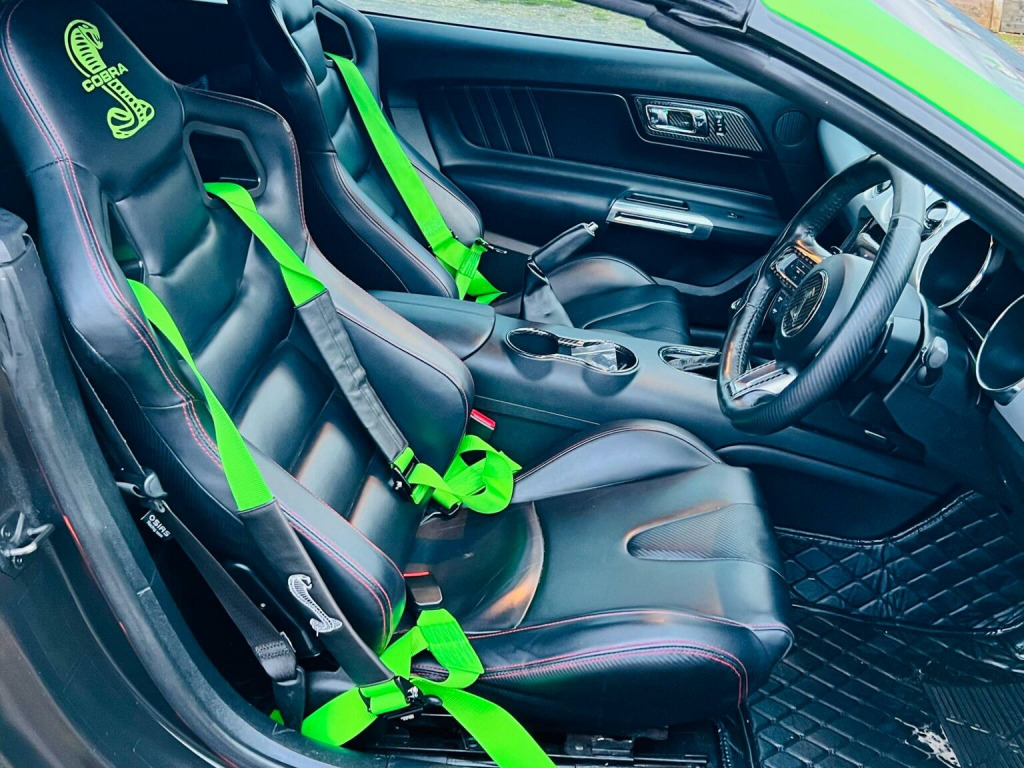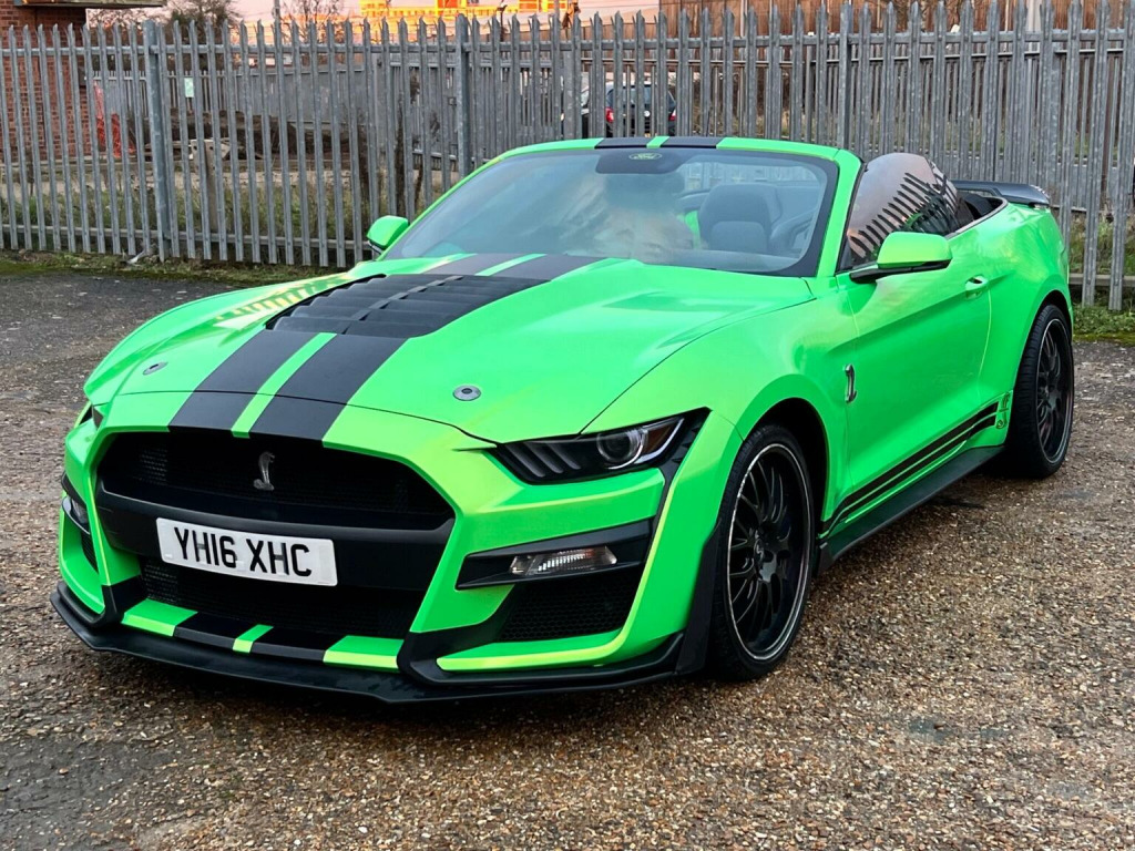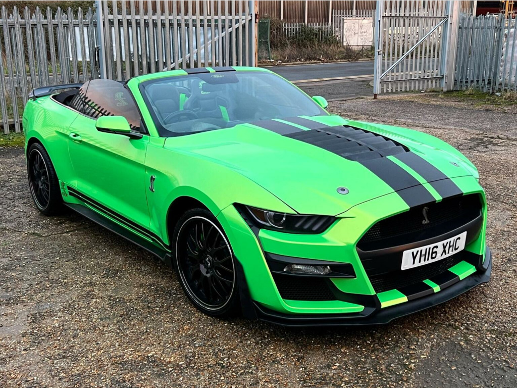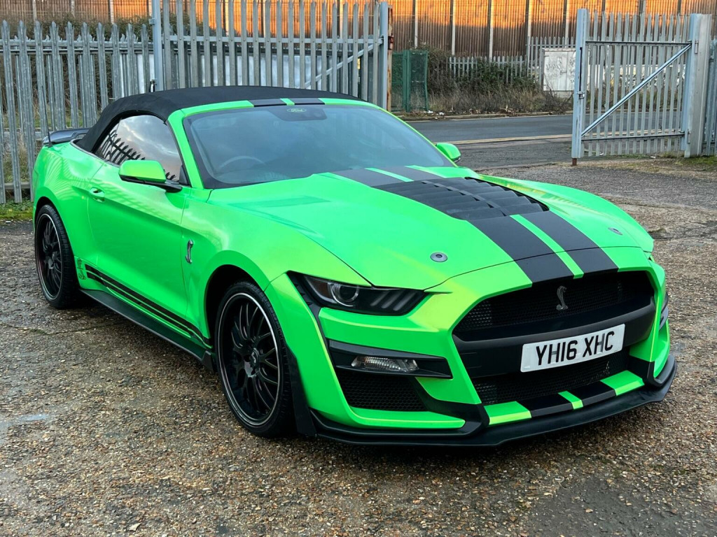 HETR WE HAVE AN OUTSTANDING SHELBY GT-500 STYLING Ford Mustang 5.0 V8 GT SelShift Euro 6 2dr, PROFESSIONALLY DONE PREMIUM HIGH GLOSS WRAP IN GREEN COLOUR, GT-500 STYLING UPGRADED COBRA RACING SEATS AND FULLY UPGRADED COBRA STYLING CARBON INTERIOR, UPGRADED ALLOYS, MODIFIED, FULLY LOADED, SERVICE HISTORY, MOT DUE 20/08/2026,, SATELLITE NAVIGATION, EXCELLENT CONDITION IN AND OUT, DRIVE SUPERB, EXCELLENT TYRES CONDITION, This 2016 Ford Mustang V8 GT offers an exhilarating driving experience with its powerful 5.0L petrol engine, meeting Euro 6 emissions standards. This model benefits from automatic headlights, a rear view camera for easier parking, and a KeyFree system for effortless entry. Stay connected on the go with the integrated Bluetooth handsfree phone system and enjoy your favourite music through Bluetooth audio streaming.The Mustang V8 GT stands out with its impressive acceleration, achieving 0-62mph in just 4.8 seconds, demonstrating its superior performance compared to similar vehicles. Furthermore, this model boasts a surprisingly large boot space, making it practical for everyday use, and is situated in a low insurance group, offering excellent value. £99 ADMIN CHARGES APPLY AS WELL, DRIVEWAY INSURANCE AVAILABLE(OPT), DELIVERY AVAILABLE(OPT), ALL CARDS PAYMENTS ACCEPTED,, WE ARE LOCATED AT 98 COLLEGE STREET, KEMPSTON, BEDFORD, MK428LU