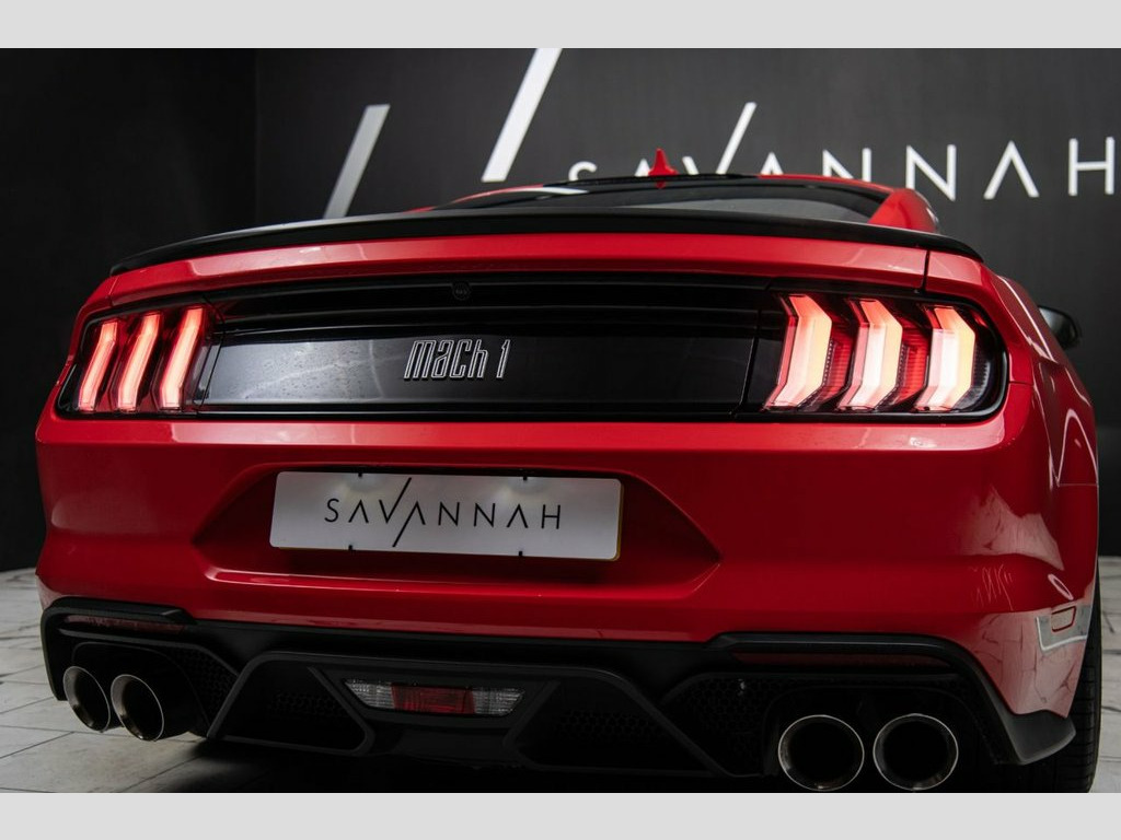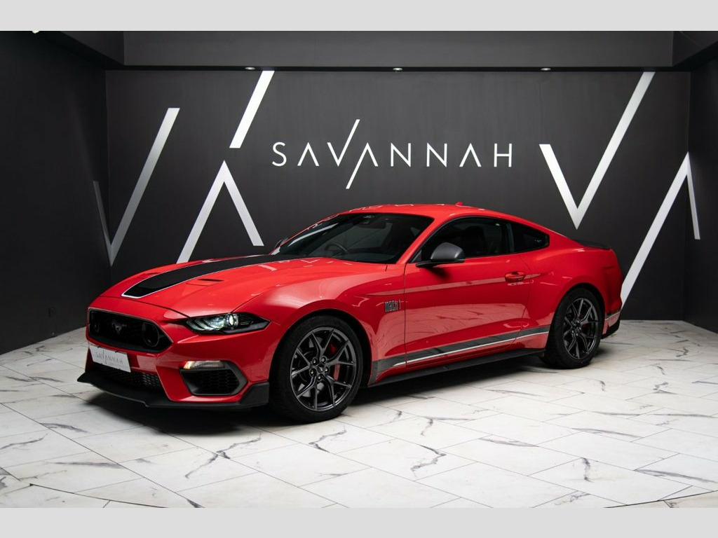 This Ford Mustang 5.0 V8 Mach 1 Fastback embodies the purest expression of American muscle engineered for the enthusiast, presented here in the striking and iconic Race Red and enhanced with the full Mach 1 aerodynamic and styling suite. Its exterior commands attention with 19in unique Mach 1 magnetic-finish alloy wheels, a low-gloss magnetic front grille, bespoke bumpers, a front splitter, rear diffuser and the distinctive Mach 1 stripe pack—clearly signalling its track-bred heritage. Underneath, the MagneRide adaptive suspension, Unique Mach 1 suspension set-up, stiffer bars and springs, new EPAS calibration, open air induction system, modified intake manifold and a Brembo performance braking system deliver exceptional precision, while the active exhaust with chrome tips amplifies the signature V8 soundtrack. Inside, the cabin blends performance and refinement with Ebony leather seats with Dove Grey accent stripe, climate-controlled sports seats, a heated leather steering wheel, 12in TFT digital cluster, ambient lighting, and the premium B&O 1000W audio system within the SYNC 3 Navigation Pack. Finalised with Mach 1 badging, unique metallic pedals, illuminated scuff plates and Mustang logo projection lamps, this Mach 1 is a rare and highly focused edition—an expertly honed Mustang built to thrill on road and track with unmistakable presence and precision engineering. 19in Alloy Wheels - 5-Spoke - Unique Mac, 6-Way Power Adjustable Front Seats - Dri, ABS - Anti-lock Braking System, Active Exhaust System with Chrome Tips, Air Conditioning - Dual Zone Electronic , Airbags, Apple Carplay and Android Auto Compatibi, Auto Headlights and Rain Sensitive Wiper, Autonomous Emergency Braking, Climate Controlled Seats, Courtesy Lights - Ambient Lighting - Map, Cruise Control, Cup Holders - Front x2, Door Trim - Premium Vinyl Detail, EBA - Emergency Brake Assist, EPAS - Electric Power Assisted Steering, Electric Rear Window Demister, Electronic Line Lock - Track Use Only, Electronic Stability Control - ESC with , Floor Mats - Front Carpet with Unique Gr, Foot Pedals
