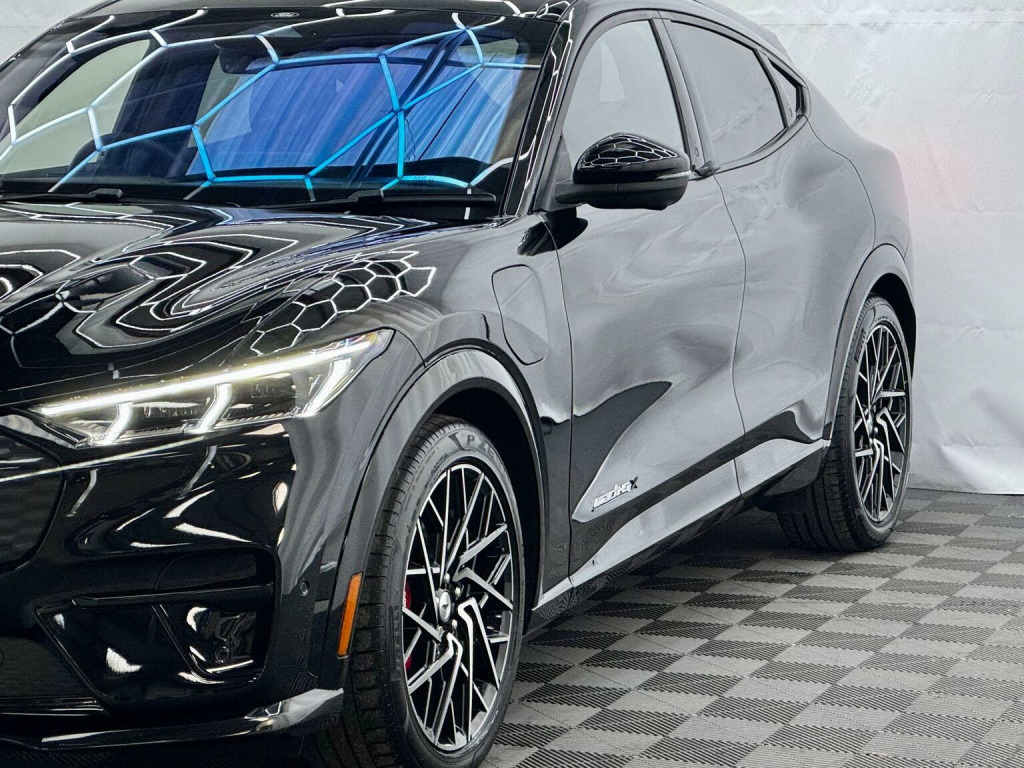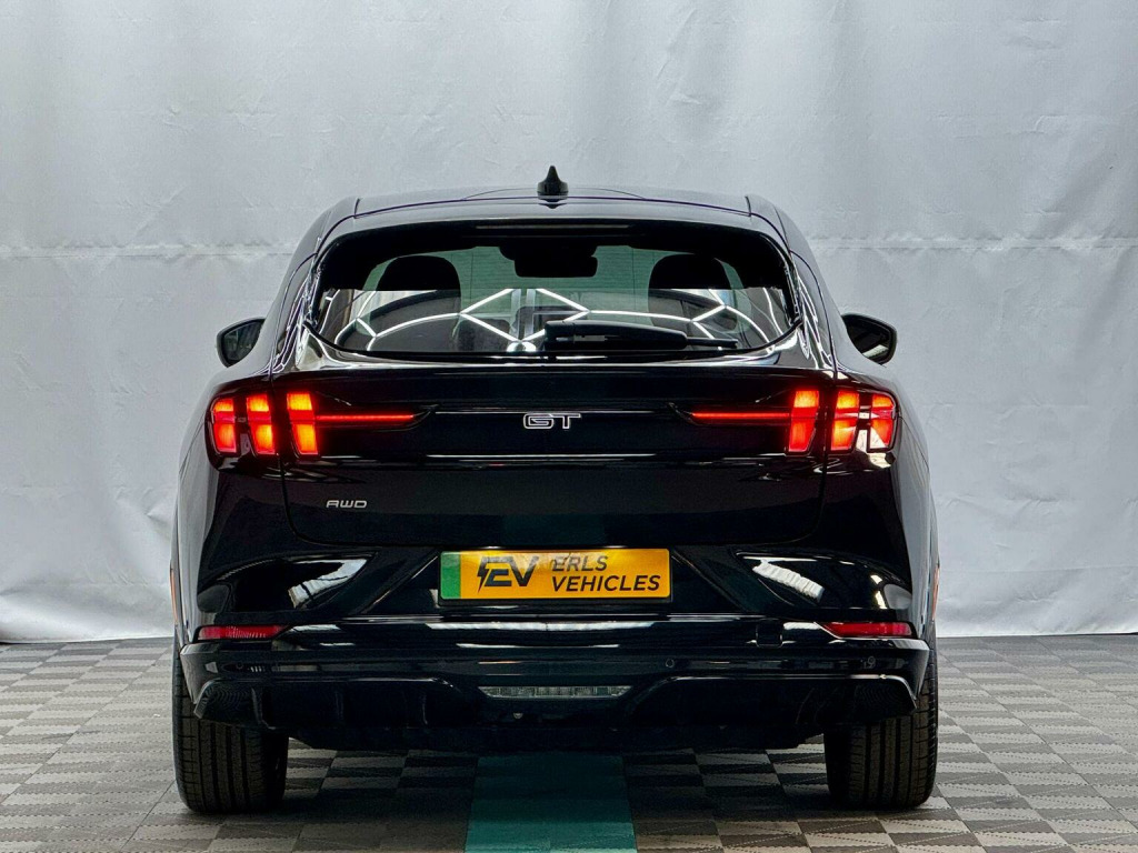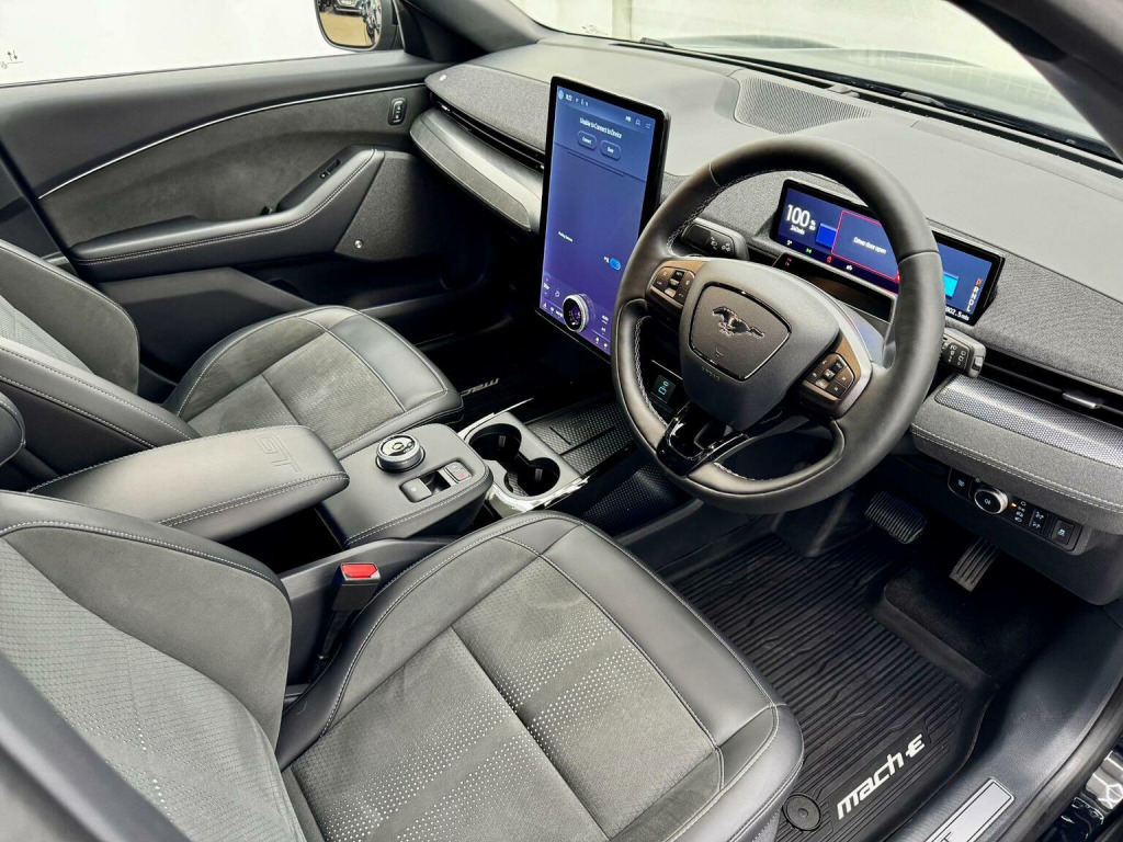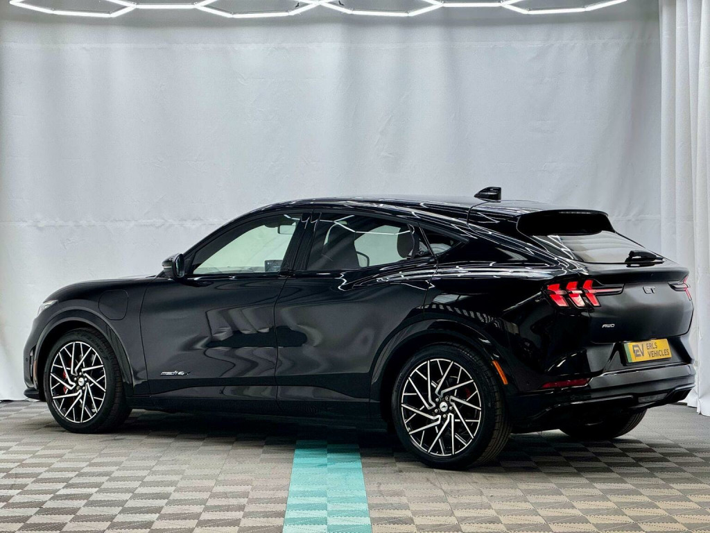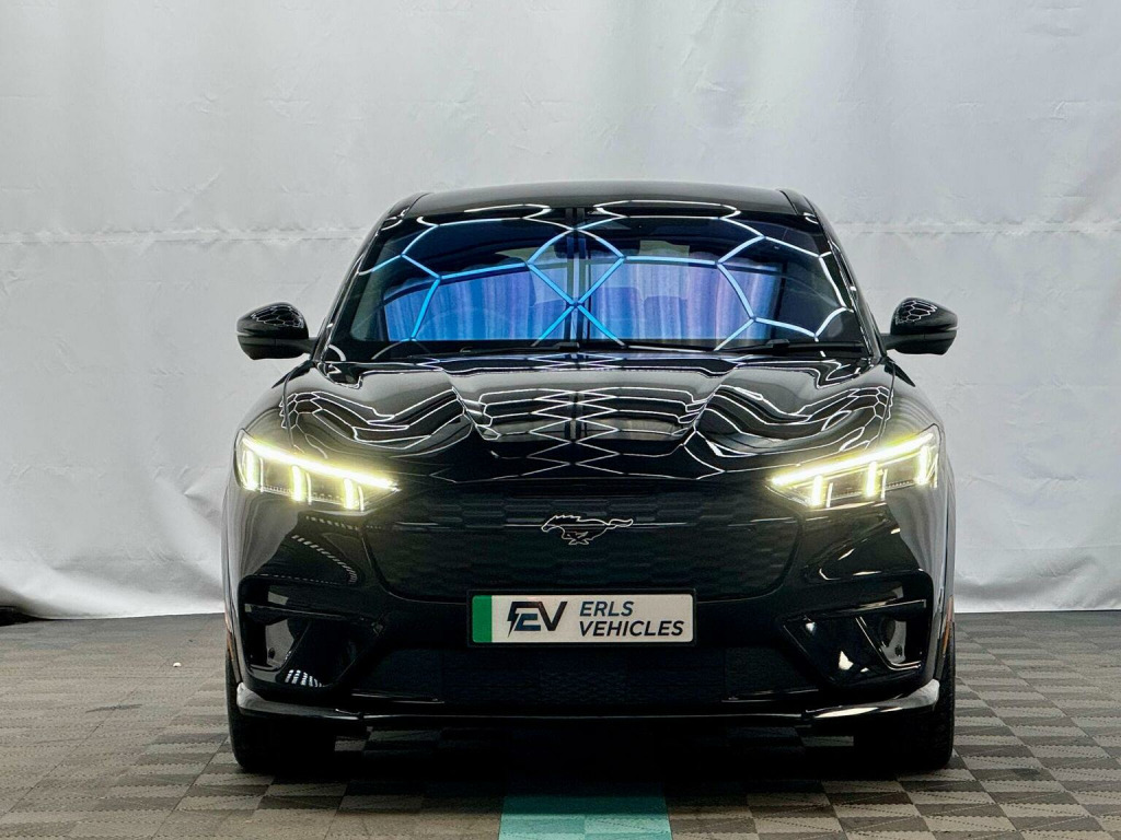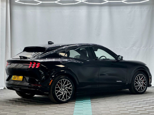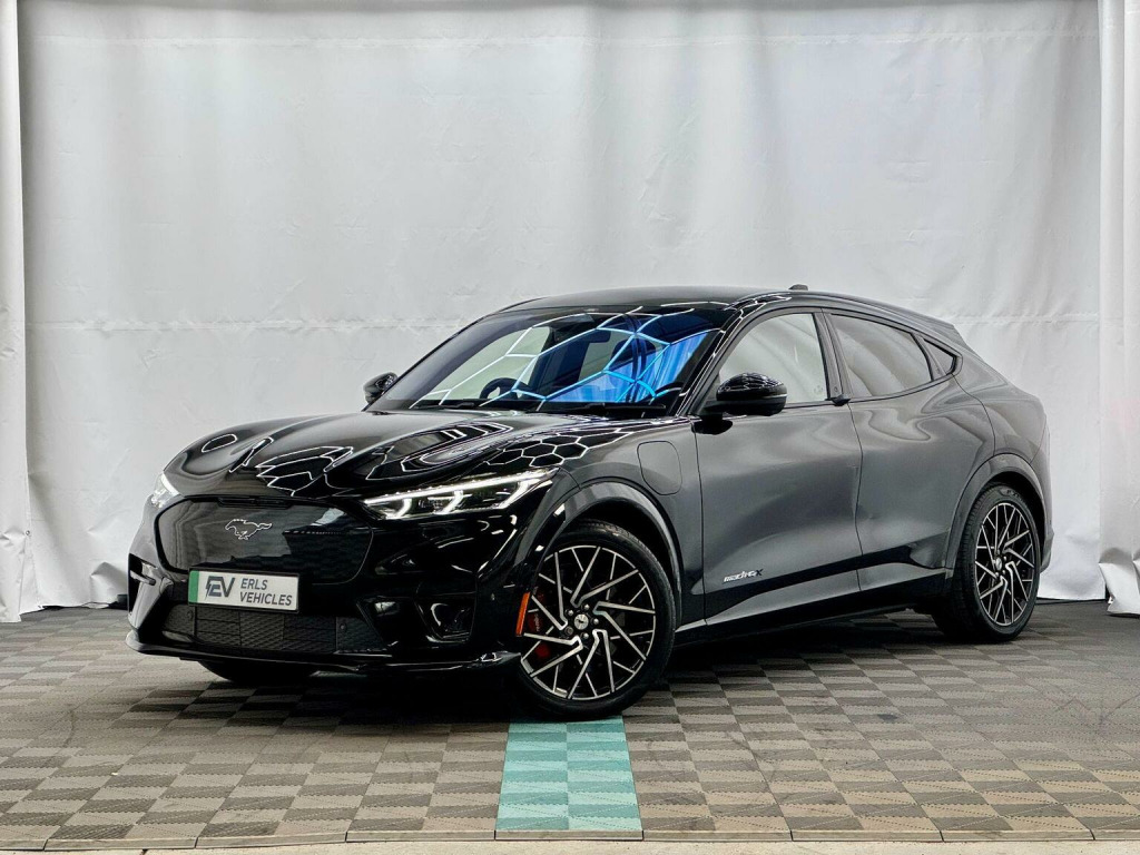Erls Vehicles are delighted to present this striking 2022 (72) Ford Mustang Mach-E GT, finished in Shadow Black with the GT-exclusive performance styling package. As the flagship of the Mach-E range, the GT delivers a compelling blend of power, refinement, and everyday usability—wrapped in unmistakably bold looks. Powered by a dual-motor AWD setup producing 487 PS and an impressive 860 Nm of torque, the Mach-E GT offers truly exhilarating performance, launching from 0–62 mph in just 3.7 seconds. The 91kWh (useable) battery provides a real-world range of around 240–270 miles depending on conditions, with rapid-charging capability of up to 150kW for swift charging on the go. The MagneRide Adaptive Suspension and performance Brembo brakes ensure composure, precision, and confidence at any speed. Inside, the GT stands apart with its premium sports seating finished in Performance Gray ActiveX with Miko suede inserts, complemented by a refined cabin layout and ambient lighting. Featured equipment is generous, including the panoramic glass roof, 15.5 SYNC 4A touchscreen with wireless Apple CarPlay/Android Auto, 360-degree camera, B&O 10-speaker sound system, adaptive LED headlights, heated front seats and steering wheel, advanced keyless entry, wireless charging pad, and a full suite of driver-assistance features such as Adaptive Cruise Control, Lane Centering, Blind Spot Assist, and Pre-Collision Assist. Balance of Fords Battery Warranty until Oct 2030/100k miles. Full Ford Service History, with the next one due in Oct 2026. No advisories on most recent MOT, and next MOT due Oct 2026. Comes with 2x Keys, a Type 2-Type 2 Cable, and OEM Rubber Floor Mats. The vehicle is available for viewing at our premises: the UKs first truly eco-friendly showroom, located in rural Northamptonshire. To ensure the highest level of service, viewings are by appointment only. All vehicles come with a three-month EV-specific warranty, with extensions available. Erls Vehicles specialise exclusively in electric cars, backed by first-hand EV expertise since 2015.