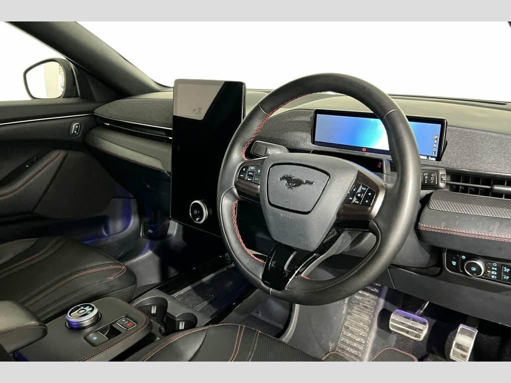 This 2023 Ford Mustang Mach E Extended Range is a superb example, having had only one owner from new and boasting a clear vehicle history check. As a fully electric vehicle, it offers an impressive maximum range of 379 miles on a full charge. Convenience is key with the E-Latch Keyless Entry System, which also includes B Pillar Keypad Access, and a handy Wireless Device Charging Pad. Inside, you'll find comfort with Dual Zone Electronic Automatic Temperature Control and a Heated Steering Wheel, all illuminated by efficient LED Reflector Headlamps. The extended range battery, with a total capacity of 99 kWh, allows for an exceptional 379 miles of driving, setting it apart from many other electric vehicles. For those longer journeys, the Mustang Mach E can achieve an 80% charge in just 51 minutes at a public charging station, while a full charge at home using a 7kW charger takes approximately 14 hours and 36 minutes. This combination of extensive range, rapid charging capability, and a host of premium features makes this Mustang Mach E a truly compelling electric car. 10.2in Full Digital Cluster and 15.5in C, 18in Alloy Wheels - 5-Spoke - Silver, 6-Way Manual Driver and Passenger Seats, ABS - Anti-lock Braking System, Adaptive Cruise Control with Stop and Go, Air Conditioning - Dual Zone Electronic , Airbags - Driver and Front Passenger, Applink Remote Control System, BLIS - Blind Spot Information System wit, Body Colour Bumpers, Body Colour Heated Mirrors with Puddle L, Brace Front Grille Design, Dark Matter Grey, E-Latch Keyless Entry System including B, Electric Windows - Front, FordPass Connect Embedded Modem, Front and Rear Parking Sensors, Front Trunk, Heated Driver and Passenger Seats, Heated Steering Wheel, High Power Charging Cable, Lane Keeping