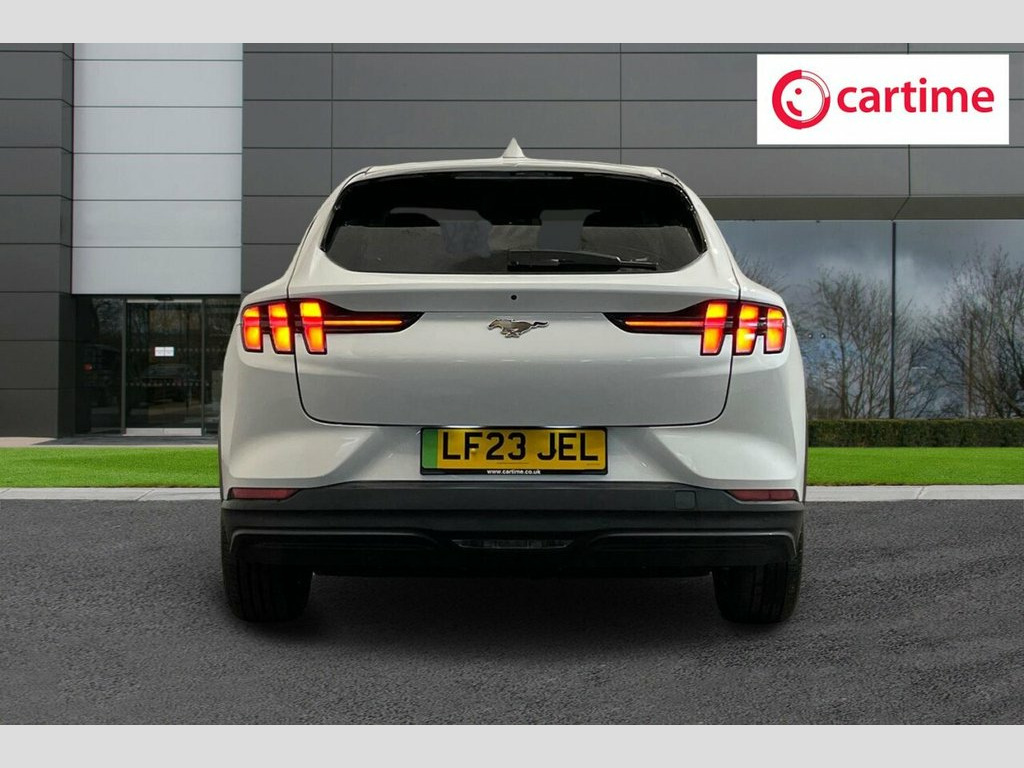 This 2023 Ford Mustang Mach E Extended Range is a single owner electric vehicle with a clear vehicle history check. It boasts a substantial 99 kWh battery, offering an impressive maximum range of 379 miles from new. This model features the Next Generation SYNC system with Connected Navigation and Natural Voice Search, a heated steering wheel for added comfort, and LED reflector headlamps for excellent visibility. Convenience is enhanced with the E-Latch Keyless Entry System, including B-Pillar Keypad Access, and Adaptive Cruise Control with Stop and Go and Lane-Centering for effortless journeys. The extended range capability of this Mustang Mach E, with a maximum of 379 miles, sets it apart from many other electric vehicles. Charging is flexible, with a full charge at home on a 7kW charger taking approximately 14 hours and 36 minutes, while rapid public charging can take you from empty to 80% in just 51 minutes. These charging times and the extensive range highlight the practicality and advanced technology of this electric Ford, making it a compelling choice for those seeking an efficient and feature-rich driving experience. 10.2in Full Digital Cluster and 15.5in C, 18in Alloy Wheels - 5-Spoke - Silver, 6-Way Manual Driver and Passenger Seats, ABS - Anti-lock Braking System, Adaptive Cruise Control with Stop and Go, Air Conditioning - Dual Zone Electronic , Airbags - Driver and Front Passenger, Applink Remote Control System, BLIS - Blind Spot Information System wit, Body Colour Bumpers, Body Colour Heated Mirrors with Puddle L, Brace Front Grille Design, E-Latch Keyless Entry System including B, Electric Windows - Front, FordPass Connect Embedded Modem, Front and Rear Parking Sensors, Front Trunk, Heated Driver and Passenger Seats, Heated Steering Wheel, High Power Charging Cable, Lane Keeping Aid with Lane Depa