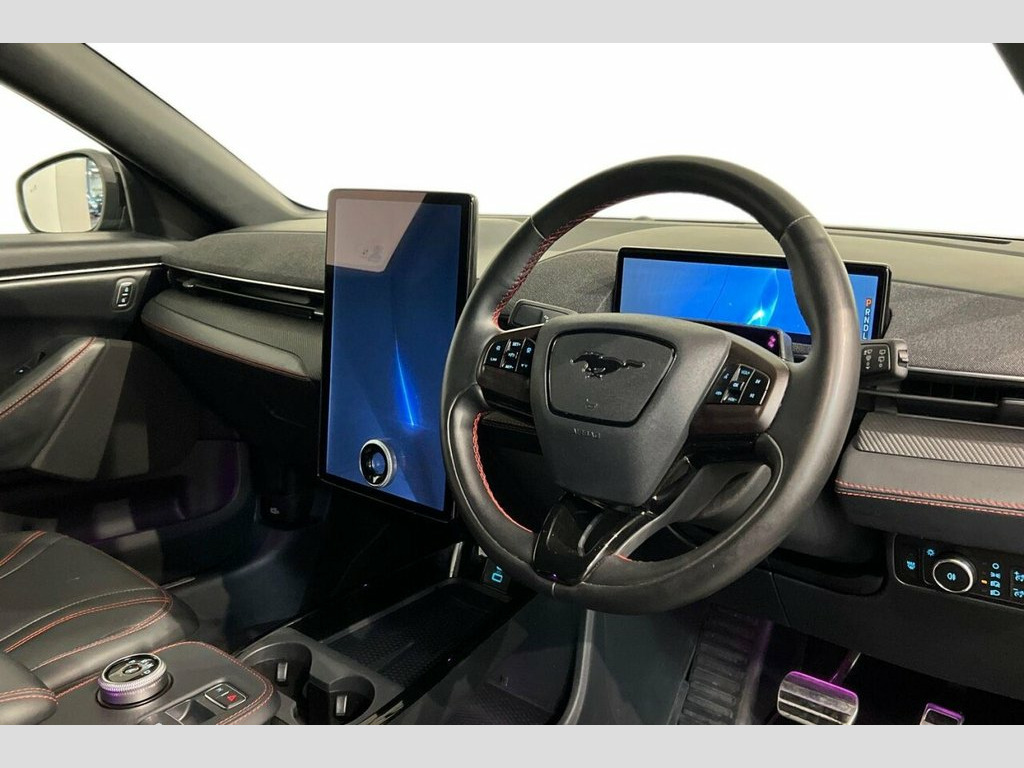 This 2023 Ford Mustang Mach E Extended Range is a superb example, having had only one owner from new and boasting a clear vehicle history check. This electric vehicle offers an impressive maximum range of 379 miles on a full charge, making it ideal for both daily commutes and longer journeys. Charging at home with a 7kW charger takes approximately 14 hours and 36 minutes, while rapid public charging can take the battery from empty to 80% in just 51 minutes. The MOT is valid until November 2026, providing peace of mind for the new owner. Inside, you'll find a host of desirable features designed for comfort and convenience. These include Dual Zone Electronic Automatic Temperature Control for personalised cabin climate, a Rear View Camera with parking assistance, and BLIS Blind Spot Information System with Cross Traffic Alert for enhanced safety. Both the driver and passenger seats are heated, as is the steering wheel, ensuring a warm and comfortable experience even on colder days. The 99 kWh battery capacity further contributes to its substantial range, setting it apart from many other electric vehicles on the market. 10.2in Full Digital Cluster and 15.5in C, 18in Alloy Wheels - 5-Spoke - Silver, 6-Way Manual Driver and Passenger Seats, ABS - Anti-lock Braking System, Absolute Black, Adaptive Cruise Control with Stop and Go, Air Conditioning - Dual Zone Electronic , Airbags - Driver and Front Passenger, Applink Remote Control System, BLIS - Blind Spot Information System wit, Body Colour Bumpers, Body Colour Heated Mirrors with Puddle L, Brace Front Grille Design, E-Latch Keyless Entry System including B, Electric Windows - Front, FordPass Connect Embedded Modem, Front and Rear Parking Sensors, Front Trunk, Heated Driver and Passenger Seats, Heated Steering Wheel, High Power Charging Cable, Lane Keeping Ai