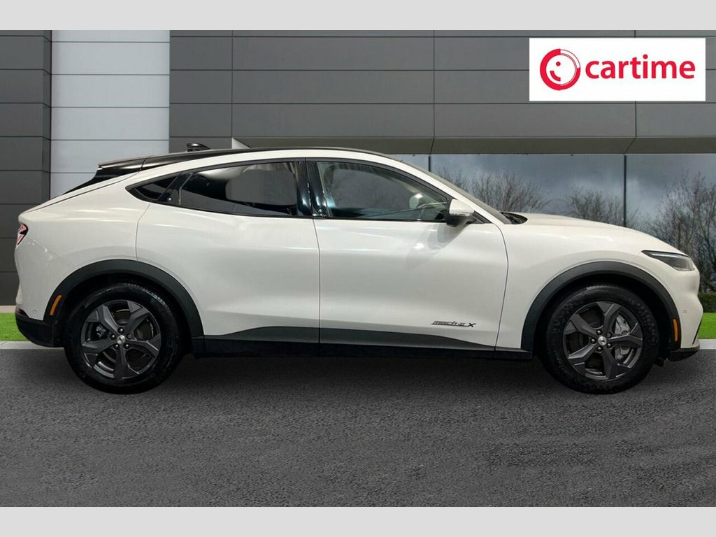 This 2022 Ford Mustang Mach E Extended Range boasts exceptionally low mileage for its age, having covered just 24477 miles. As an electric vehicle, it offers a substantial battery total capacity of 99 kWh, providing a maximum range of 379 miles when new. This model comes equipped with Dual Zone Electronic Automatic Temperature Control for personalised comfort, Blind Spot Information System with Cross Traffic Alert for enhanced safety, and Next Generation SYNC with Connected Navigation and Natural Voice Search for seamless connectivity. Parking is made easier with Front and Rear Parking Sensors and a Rear View Camera. The impressive 379 mile maximum range at new highlights the Mustang Mach E's capability for longer journeys, setting it apart from many other electric vehicles. Charging is convenient, with a full charge at home taking approximately 14 hours and 36 minutes using a 7kW charger, while rapid public charging can take you from empty to 80% in just 51 minutes. This combination of extensive range, advanced technology, and efficient charging makes this 2022 Ford Mustang Mach E Extended Range a compelling choice. 10.2in Full Digital Cluster and 15.5in C, 18in Alloy Wheels - 5-Spoke - Silver, 6-Way Manual Driver and Passenger Seats, ABS - Anti-lock Braking System, Adaptive Cruise Control with Stop and Go, Air Conditioning - Dual Zone Electronic , Airbags - Driver and Front Passenger, Applink Remote Control System, BLIS - Blind Spot Information System wit, Body Colour Bumpers, Body Colour Heated Mirrors with Puddle L, Brace Front Grille Design, E-Latch Keyless Entry System including B, Electric Windows - Front, FordPass Connect Embedded Modem, Front and Rear Parking Sensors, Front Trunk, Heated Driver and Passenger Seats, Heated Steering Wheel, High Power Charging Cable, Lane Keeping Aid with Lane Depa