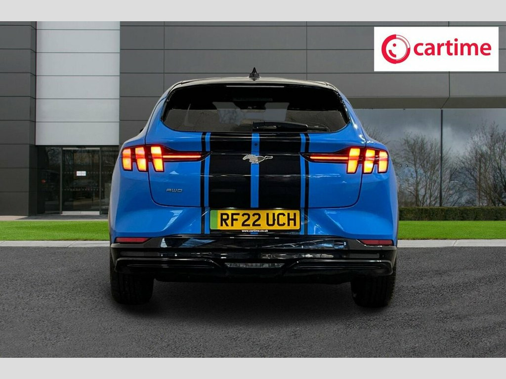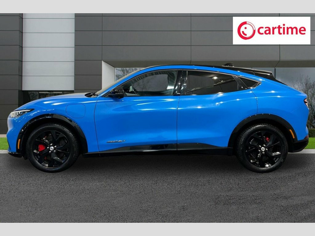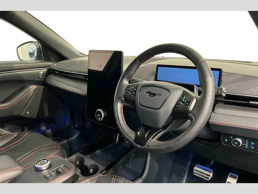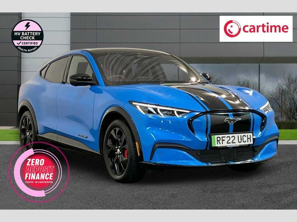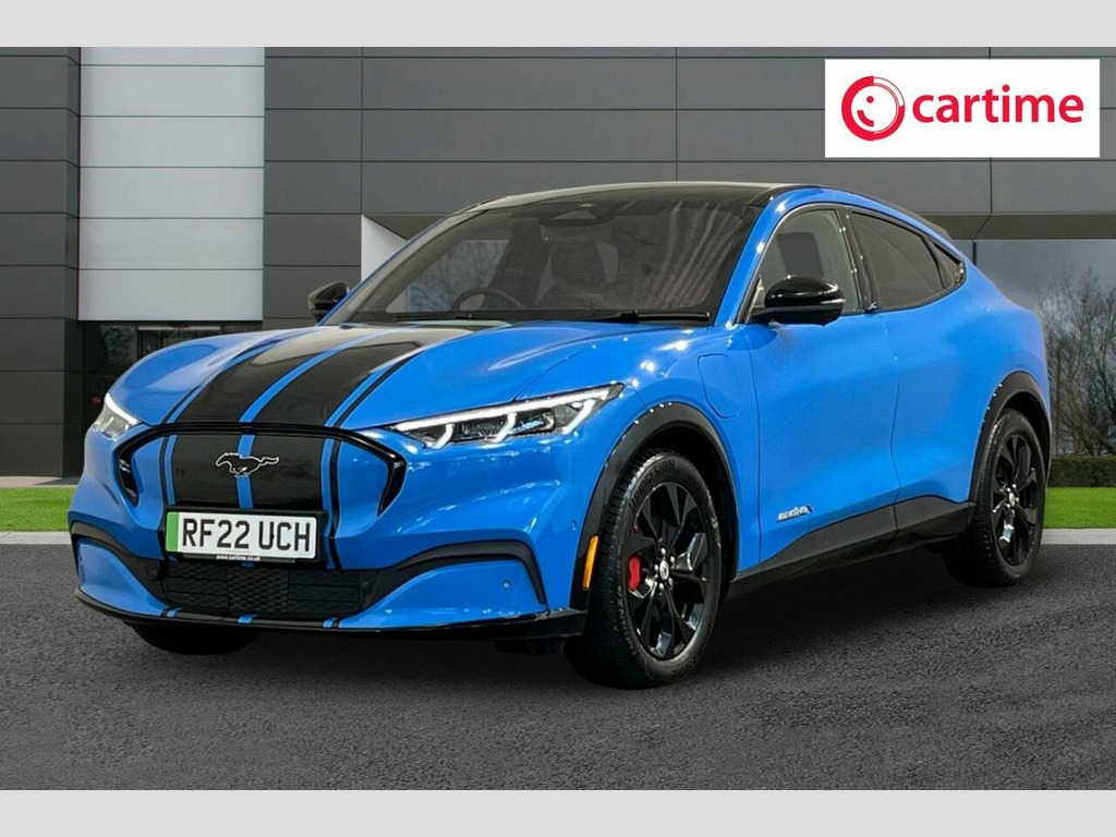 This 2022 Ford Mustang Mach-E Extended Range boasts exceptionally low mileage for its age, having covered just 18,037 miles, and has had only one owner from new, with a clear vehicle history check. This electric four wheel drive model features a substantial 99 kWh battery, offering a maximum range of 335 miles when new. Inside, you'll find a wealth of technology and comfort, including a 360 Degree Camera with parking assistance, the Tech Pack Plus which incorporates an opening panoramic sunroof and a premium branded sound system, heated driver and passenger seats, dual zone electronic automatic climate control, and a convenient wireless device charging pad. Experience impressive performance with this Mustang Mach-E, accelerating from 0 to 60mph in a swift 5.8 seconds, a figure that highlights its dynamic capabilities compared to many other electric vehicles. Charging is efficient, with a full charge at home on a 7kW charger taking approximately 14 hours and 36 minutes, while the fastest public charging can take the battery from empty to 80% in just 51 minutes. These charging times, combined with its extensive range and advanced features, make this a compelling choice for those seeking a capable and well equipped electric SUV. 10.2in Full Digital Cluster and 15.5in C, 19in Alloy Wheels - Black Machined, 360 Degree Camera, 8-Way Power Driver and Passenger Seats, ABS - Anti-lock Braking System, Adaptive Cruise Control with Stop and Go, Adaptive LED Mustang Signature Headlamps, Air Conditioning - Dual Zone Electronic , Airbags - Driver and Front Passenger, Applink Remote Control System, Black Powerfold Mirrors with Puddle Ligh, Blade Front Grille Design, BLIS - Blind Spot Information System wit, Body Colour Bumpers, E-Latch Keyless Entry System including B, Electric Windows - Front, Ford VarioPower Charging Cable, FordPass Connect Embedded Modem, Front and Rear Parking Sensors, Front Trunk, Grabber Blue, Hands-Free T