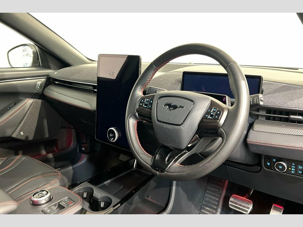 This 2023 Ford Mustang Mach-E Extended Range is a superb example, having had only one owner from new and boasting a clear vehicle history check. This electric vehicle features a substantial 99 kWh battery, offering an impressive maximum range of 335 miles when new. For convenience, a full charge at home using a 7kW charger takes approximately 14 hours and 36 minutes, while rapid public charging can take the battery from empty to 80% in just 51 minutes. The Mustang Mach-E is equipped with Four Wheel Drive for assured handling and comes with a suite of advanced features including a 360 Degree Camera with Parking Assistance, an E-Latch Keyless Entry System with B-Pillar Keypad Access, BLIS Blind Spot Information System with Cross Traffic Alert, Front and Rear Parking Sensors, and Adaptive LED Mustang Signature Headlamps. The highlights of this particular Mustang Mach-E demonstrate its exceptional performance and capability. With an acceleration of 0-60mph in just 5.8 seconds, it offers a dynamic driving experience that sets it apart. The extensive 335 mile maximum range further enhances its appeal, providing confidence for longer journeys. These attributes, combined with its advanced technology and single owner provenance, make this 2023 Ford Mustang Mach-E Extended Range a compelling choice for those seeking a premium electric vehicle. 10.2in Full Digital Cluster and 15.5in C, 19in Alloy Wheels - Black Machined, 360 Degree Camera, 8-Way Power Driver and Passenger Seats, ABS - Anti-lock Braking System, Adaptive Cruise Control with Stop and Go, Adaptive LED Mustang Signature Headlamps, Air Conditioning - Dual Zone Electronic , Airbags - Driver and Front Passenger, Applink Remote Control System, Black Powerfold Mirrors with Puddle Ligh, Blade Front Grille Design, BLIS - Blind Spot Information System wit, Body Colour Bumpers, E-Latch Keyless Entry System including B, Electric Windows - Front, Ford VarioPower Charging Cable, FordPass Connect Embedded Modem, Front and Rear Parking Sensors, Front Trunk, Hands-Free Tailgate, Heate