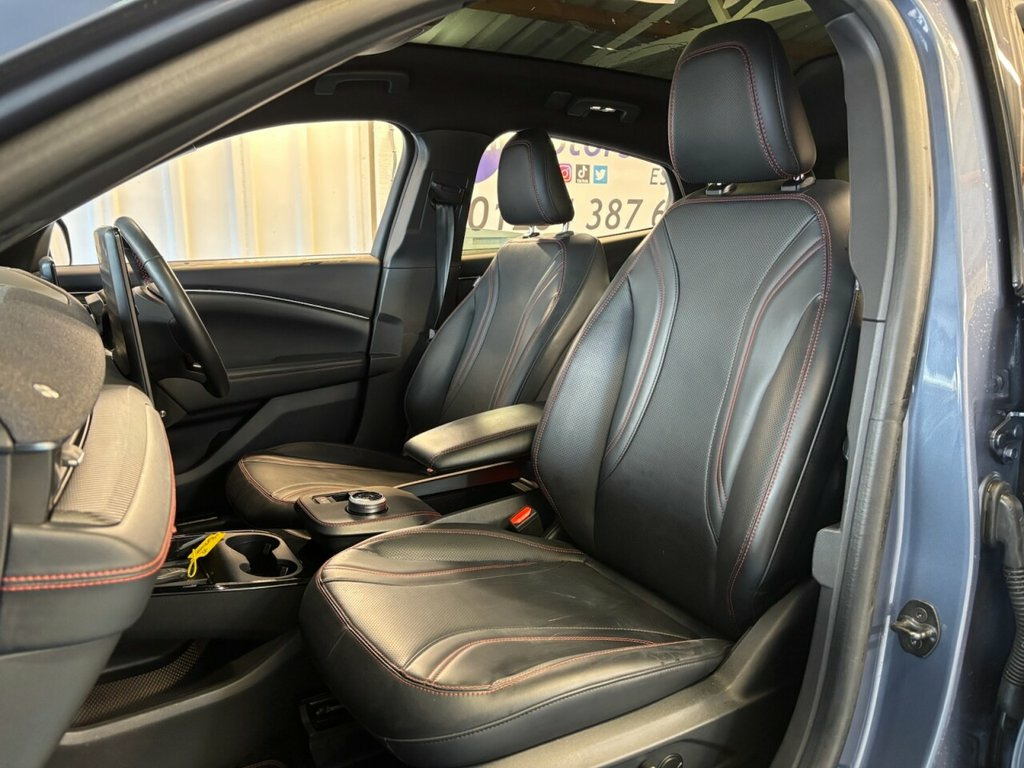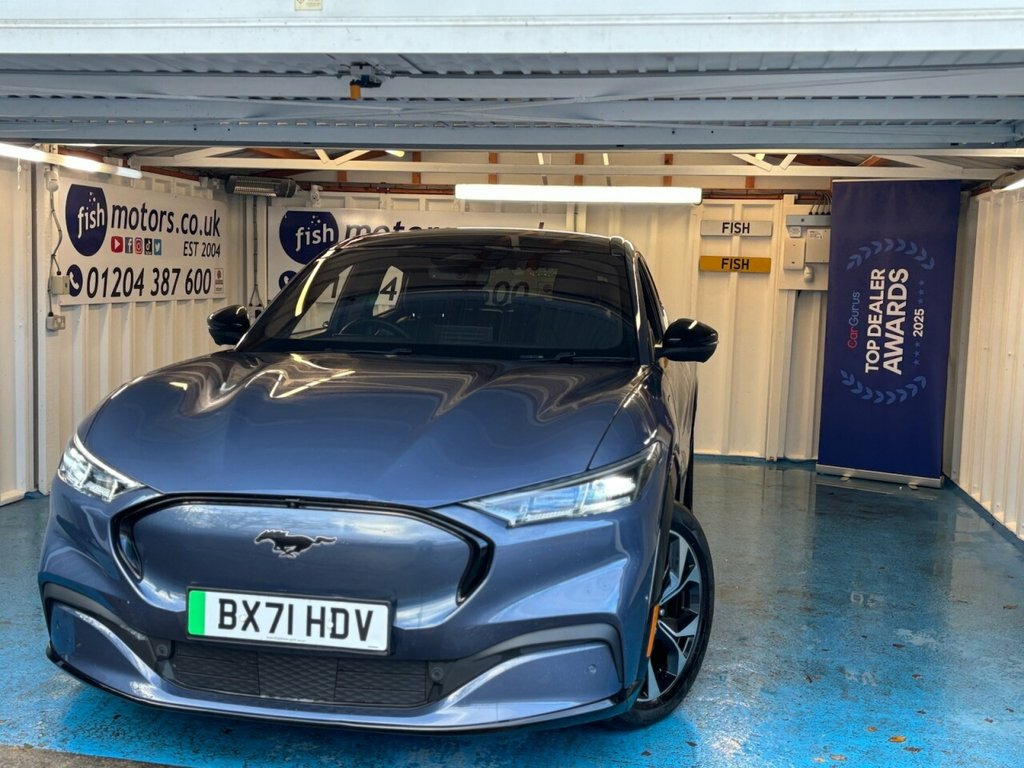2 KEYS+1 OWNER FROM NEW+CRUISE+FULL LEATHER SEATS+PANO SUNROOF+NAV+PRIVACY+CLIMATE+MEDIA+BLUETOOTH+DAB+DIGITAL DASH+APPS+ALLOYS+CRUISE+PARK SENSORS+HEATED FRONT SEATS+HPI CLEAR+VOSA MOT HISTORY+FULL DEALER FACILITIES+GOOD MPG,+RAC CHECKED+The car is in very good condition in and out . Bodywork and interior clean for age and mileage . Interior is clean and tyres good ,Engine and gearbox in good order. This 2021 Ford Mustang Mach-E Extended Range boasts a single owner from new, offering a pristine example of electric innovation. This four wheel drive model features a substantial 99 kWh battery, providing an impressive maximum range of 335 miles when new. Charging at home with a 7kW charger takes approximately 14 hours and 36 minutes, while rapid public charging can take the battery from empty to 80% in just 51 minutes. For your peace of mind, the MOT is valid until October 2026. Inside, you'll find a host of advanced features including Adaptive Cruise Control with Stop and Go and Lane Centering, a 360 Degree Camera for effortless parking, and Dual Zone Electronic Automatic Temperature Control for personalised comfort. The SYNC system with Connected Navigation and Natural Voice Search, along with the E-Latch Keyless Entry System and B-Pillar Keypad Access, further enhance the driving experience. The Mustang Mach-E Extended Range truly stands out with its exceptional performance and efficiency. Its 0-60mph acceleration in just 5.8 seconds demonstrates its dynamic capabilit 10.2in Full Digital Cluster and 15.5in C, 19in Alloy Wheels - Black Machined, 360 Degree Camera, 8-Way Power Driver and Passenger Seats, ABS - Anti-lock Braking System, Adaptive Cruise Control with Stop and Go, Adaptive LED Mustang Signature Headlamps, Advanced Active Park Assist, Air Conditioning - Dual Zone Electronic , Airbags - Driver and Front Passenger, Applink Remote Control System, B+O Premium Sound System - 10-Speaker in, Black Powerfold Mirrors with Puddle Ligh, Blade Front Grille Design, BLIS - Blind Spot Information System wit, Body Colour Bumpers, Dark Headliner, E-Latch Keyless Entry System including B, Electric Windows - Front, FordPass Connect Embedded Modem, Front and Rear P
