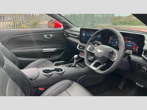 Ford Mustang 5.0 V8 GT 2dr Auto 12" digital LCD instrument cluster, Adaptive cruise control with adjustable speed limiter, Apple car play/Android Auto, Bluetooth connectivity with voice control, Electric power steering, Emergency services call system, Ford pass connect embedded modem, Fully customisable 13.2" Touchscreen with wireless smartphone integration, FordPass connect & connected navigation, Lane keeping aid with lane keeping assist, Oil pressure gauge, Rear view camera with rear parking sensors, Selectable driving modes - normal, mymode, snow/wet, sport+, track and drag mode, Service interval indicator, SYNC Emergency Assistance, Track apps with accelerometer technology, Trip computer, Wireless charging and USB charging port, Fully independent front and rear suspension, Limited slip differential, Bang & Olufsen 12-speaker surround sound audio system, DAB Digital radio, USB connection, 3rd brake light, Active exhaust system with quad tailpipes, Auto dimming rear view mirror, Auto high beam, Automatic headlights, Automatic rain sensing wipers, Body colour bumpers, Bonnet air intake, Electric front windows, GT bodykit with black door frame mouldings, GT front grille with vertical power bars, LED daytime running lights, LED rear lights with sequential indicators and welcome / farewell animations, Power-folding door mirrors including blind spot informaion system and mustang logo projection puddle lamps, Rear boot, Silver Triple-LED headlamps with welcome / farewell animation, 6 way power adjustable front seats, Ambient lighting, Cup holders, Electronic automatic temperature control (EATC), Front headrests, Heated leather flat bottom steering wheel, Heated/ventilated and cooled front seats, Illuminated entry system, Individually folding 2 rear seats in 2nd row, Isofix system on outer rear seats, Leather gearknob, Leather/vinyl upholstery, Reach and rake adjustable leather steering wheel with integrated controls, Rear head restraints, Single front passenger seat, Sports seats, 4 seatbelts, ABS, Drivers knee airbag, Dual front airbags, Electronic Line Lock, Electronic Stability Control (ESC) with three settings, ESP, Front side airbags, Performance brake system with brembo 6 piston front callipers and electronic brake prefill, Pre-collision assist with AEB and pedestrian and cyclist detection, Side curtain airbags, Tyre pressure monitor, Ford key free system with power starter button and keyless entry, Immobiliser, Thatcham Cat.1 alarm, Tyre repair kit