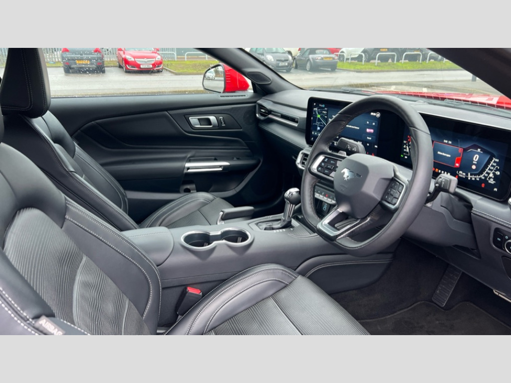 Ford Mustang 5.0 V8 GT 2dr Auto 12" digital LCD instrument cluster, Adaptive cruise control with adjustable speed limiter, Apple car play/Android Auto, Bluetooth connectivity with voice control, Electric power steering, Emergency services call system, Ford pass connect embedded modem, Fully customisable 13.2" Touchscreen with wireless smartphone integration, FordPass connect & connected navigation, Lane keeping aid with lane keeping assist, Oil pressure gauge, Rear view camera with rear parking sensors, Selectable driving modes - normal, mymode, snow/wet, sport+, track and drag mode, Service interval indicator, SYNC Emergency Assistance, Track apps with accelerometer technology, Trip computer, Wireless charging and USB charging port, Fully independent front and rear suspension, Limited slip differential, Bang & Olufsen 12-speaker surround sound audio system, DAB Digital radio, USB connection, 3rd brake light, Active exhaust system with quad tailpipes, Auto dimming rear view mirror, Auto high beam, Automatic headlights, Automatic rain sensing wipers, Body colour bumpers, Bonnet air intake, Electric front windows, GT bodykit with black door frame mouldings, GT front grille with vertical power bars, LED daytime running lights, LED rear lights with sequential indicators and welcome / farewell animations, Power-folding door mirrors including blind spot informaion system and mustang logo projection puddle lamps, Rear boot, Silver Triple-LED headlamps with welcome / farewell animation, 6 way power adjustable front seats, Ambient lighting, Cup holders, Electronic automatic temperature control (EATC), Front headrests, Heated leather flat bottom steering wheel, Heated/ventilated and cooled front seats, Illuminated entry system, Individually folding 2 rear seats in 2nd row, Isofix system on outer rear seats, Leather gearknob, Leather/vinyl upholstery, Reach and rake adjustable leather steering wheel with integrated controls, Rear head restraints, Single front passenger seat, Sports seats, 4 seatbelts, ABS, Drivers knee airbag, Dual front airbags, Electronic Line Lock, Electronic Stability Control (ESC) with three settings, ESP, Front side airbags, Performance brake system with brembo 6 piston front callipers and electronic brake prefill, Pre-collision assist with AEB and pedestrian and cyclist detection, Side curtain airbags, Tyre pressure monitor, Ford key free system with power starter button and keyless entry, Immobiliser, Thatcham Cat.1 alarm, Tyre repair kit