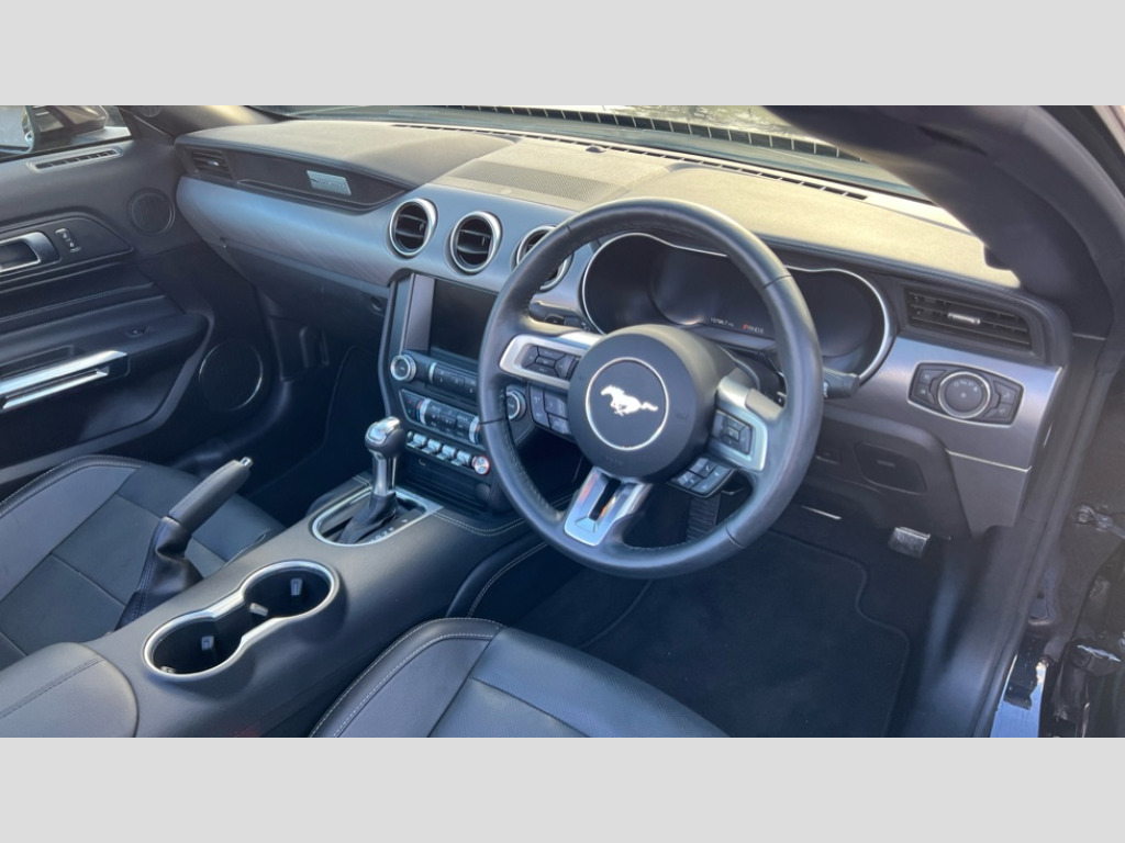 Ford Mustang 5.0 V8 GT [Custom Pack 2] 2dr 12" digital LCD instrument cluster, Adaptive cruise control with adjustable speed limiter, Apple car play/Android Auto, Bluetooth connectivity with voice control, Electric power steering, Emergency services call system, Ford pass connect embedded modem, Ford SYNC 3 with 8" colour touch screen, Lane keeping aid with lane keeping assist, Oil pressure gauge, Rear view camera with rear parking sensors, Selectable driving modes - normal, mymode, snow/wet, sport+, track and drag mode, Service interval indicator, SYNC Emergency Assistance, Track apps with accelerometer technology, Trip computer, Adaptive damping system, Fully independent front and rear suspension, Limited slip differential, DAB Digital radio, USB connection, 3rd brake light, 5.0 Exterior badge on front wings, Active exhaust system with quad tailpipes, Auto dimming rear view mirror, Auto high beam, Automatic headlights, Automatic rain sensing wipers, Body colour bumpers, Body colour door mirrors, Bonnet air intake, Electric front windows, GT exterior badge on bootlid, GT front grille with vertical power bars, LED headlamps with daytime running lights and LED fog lamps, LED rear lights, Magnetic blade decklid rear spoiler, Power folding door mirrors with Mustang logo projection puddle lamps, Rear boot, 6 way power adjustable front seats and driver seat power lumbar adjust, Ambient lighting, Cup holders, Dual electronic automatic temperature control, Front headrests, Heated steering wheel, Illuminated entry system, Individually folding 2 rear seats in 2nd row, Isofix system on outer rear seats, Leather gearknob, Leather multifunction steering wheel, Leather upholstery, Reach and rake adjustable leather steering wheel with integrated controls, Rear head restraints, Single front passenger seat, Custom pack 2 - Mustang, 4 seatbelts, ABS, Drivers knee airbag, Dual front airbags, Electronic Line Lock, Electronic Stability Control (ESC) with three settings, ESP, Front side airbags, Performance brake system with brembo 6 piston front callipers and electronic brake prefill, Pre-collision assist with AEB and pedestrian and cyclist detection, Tyre pressure monitor, Ford key free system with power starter button and keyless entry, Immobiliser, MyKey system, Thatcham Cat.1 alarm, Tyre repair kit