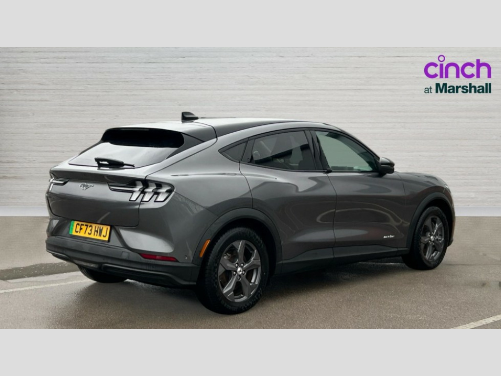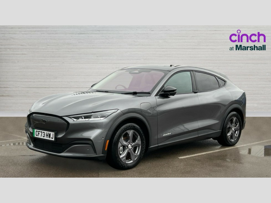 Ford Mustang Mach-E 198kW Standard Range 70kWh RWD 5dr Auto 10.2" full digital cluster and 15.5" central touch screen, Applink remote control system, BLIS (Blind Spot Information System) with cross traffic alert, Distance alert and indication system, Electric power steering, Emergency services call system, Ford pass connect embedded modem, Front and rear parking sensors, Intelligent adaptive cruise control with stop and go + lane centering, Lane departure warning with lane keeping aid, Next generation SYNC with connected navigation+DAB and natural voice search, Rear view camera, Selectable drive modes - active, whisper and untamed, Trip computer, Wireless device charging pad, 11 kW AC onboard charger, High power charging cable, Home charging cable, 3rd brake light, Body colour bumpers, Brace front grille design, Daytime running lights, Heated body colour door mirrors with Mustang logo projection puddle lamps, LED headlamps with reflector technology, LED signature tail lights, Privacy glass, Quickclear heated windscreen, Rear side wing doors, Rear wiper, Side cladding and wheel arches in black, 3 seat bench in 2nd row, 6 way manual driver and passenger seats - fore/aft/up/down/recline, Dual zone electronic air temperature control, Front headrests, Front trunk, Full sensico artificical leather upholstery, Heated driver and front passenger seats, Heated steering wheel, One pedal drive, Rear head restraints, Single front passenger seat, 3 point rear seatbelts, ABS, Child locks on rear doors, ESP, Evasive steering assist, Pre collision assist with Forward Collision Warning (FCW), Dynamic Brake Support (DBS), Autonomous Emergency Braking (AEB), E-Latch keyless entry system including B-Pillar keypad access, Thatcham Cat.1 alarm, 18" 5 spoke silver alloy wheels