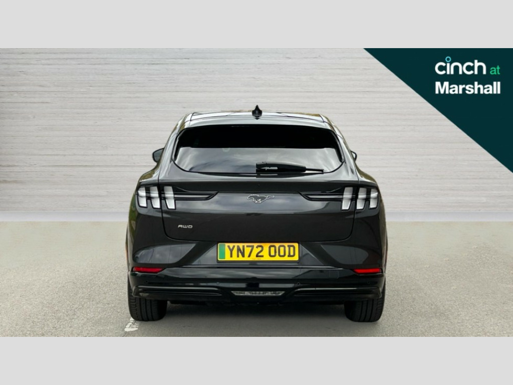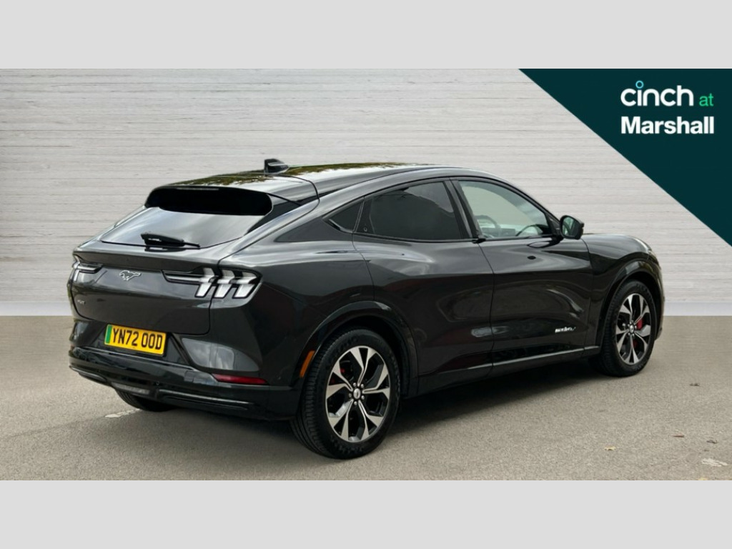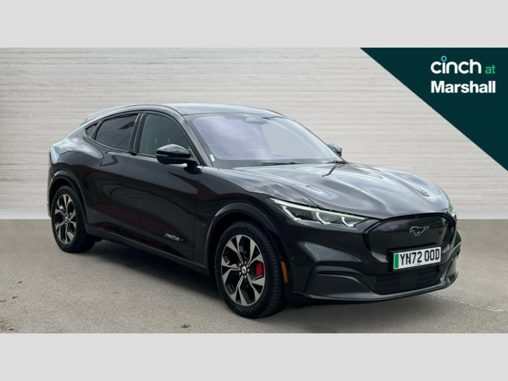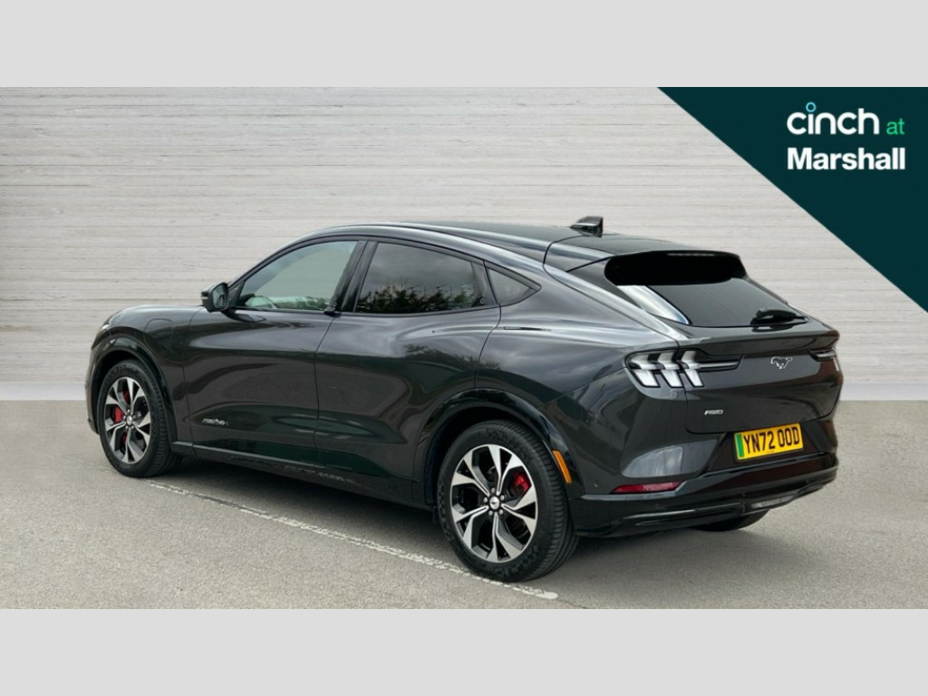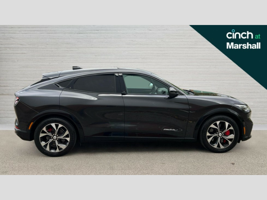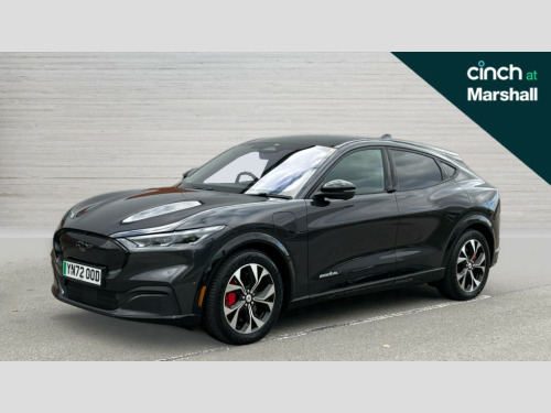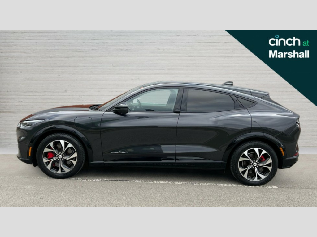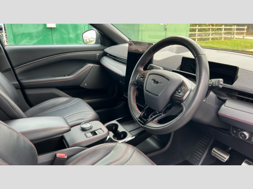 Ford Mustang Mach-E 258kW Extended Range 88kWh AWD 5dr Auto 10.2" full digital cluster and 15.5" central touch screen, 360 degree view camera, Advanced active park assist, Applink remote control system, BLIS (Blind Spot Information System) with cross traffic alert, Distance alert system, Electric power steering, Emergency services call system, Ford pass connect embedded modem, Front and rear parking sensors, Hands free tailgate, Intelligent adaptive cruise control with stop and go + lane centering, Lane departure warning with lane keeping aid, Next generation SYNC with connected navigation+DAB and natural voice search, Selectable drive modes - active, whisper and untamed, Trip computer, Wireless device charging pad, Ford vario power charging cable, High power charging cable, B and O premium sound system 10 speaker including dashboard sound bar, 3rd brake light, Adaptive LED Mustang signature headllamps, Black power folding door mirrors with Mustang logo projection puddle lamps, Blade front grille design, Body colour bumpers, Daytime running lights, Fixed full panoramic roof, LED signature tail lights, Privacy glass, Quickclear heated windscreen, Rear side wing doors, Rear wiper, Side cladding and wheel arches in piano black, 3 seat bench in 2nd row, 8 way power driver and passenger seats with lumbar - fore/aft/up/down/recline, Dual electronic automatic temperature control, Front headrests, Front trunk, Heated driver and front passenger seats, Heated steering wheel, One pedal drive, Perforated full sensico artificial leather upholstery, Rear head restraints, Single front passenger seat, 3 point rear seatbelts, ABS, Child locks on rear doors, ESP, Evasive steering assist, Pre collision assist with Forward Collision Warning (FCW), Dynamic Brake Support (DBS), Autonomous Emergency Braking (AEB), Red brake callipers, E-Latch keyless entry system including B-Pillar keypad access, Thatcham Cat.1 alarm, 19" Black machined alloy wheels