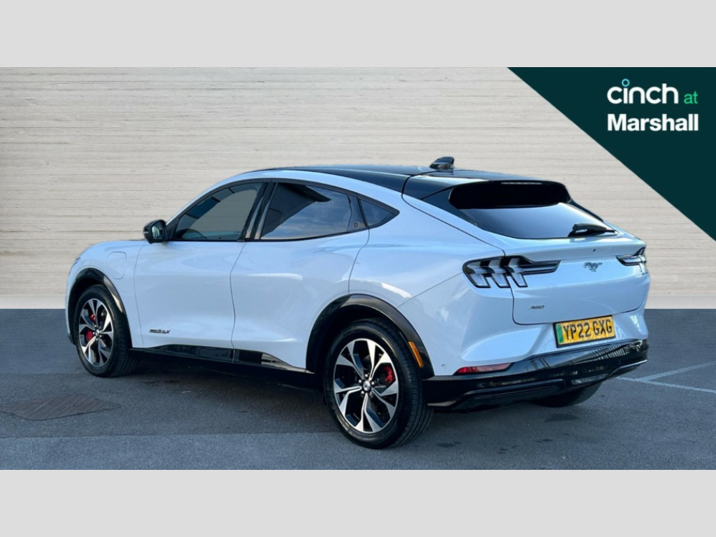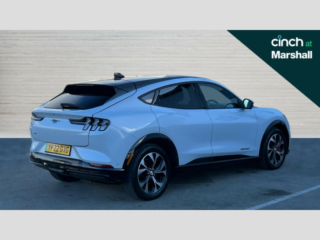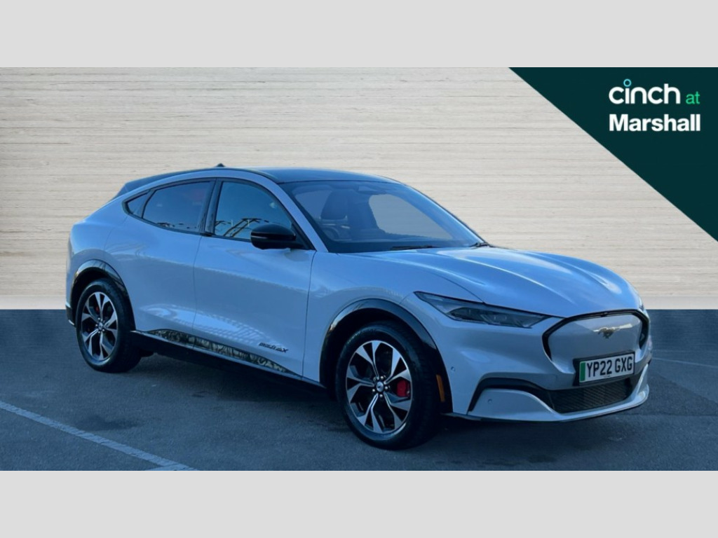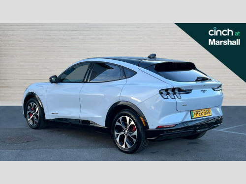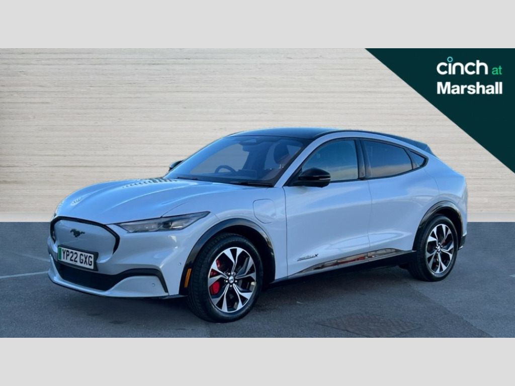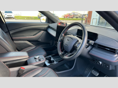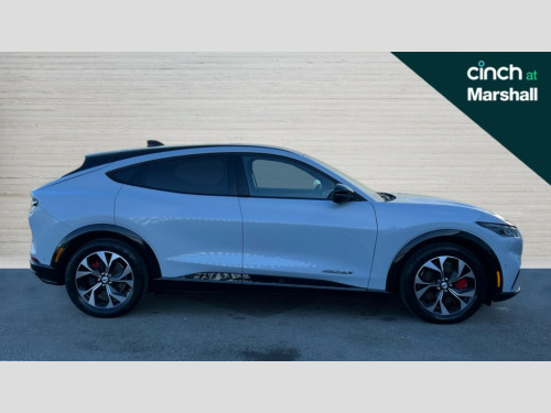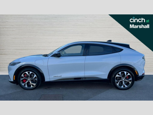 Ford Mustang Mach-E 258kW Extended Range 88kWh AWD 5dr Auto 10.2" full digital cluster and 15.5" central touch screen, 360 degree view camera, Advanced active park assist, Applink remote control system, BLIS (Blind Spot Information System) with cross traffic alert, Distance alert system, Electric power steering, Emergency services call system, Ford pass connect embedded modem, Front and rear parking sensors, Hands free tailgate, Intelligent adaptive cruise control with stop and go + lane centering, Lane departure warning with lane keeping aid, Next generation SYNC with connected navigation+DAB and natural voice search, Selectable drive modes - active, whisper and untamed, Trip computer, Wireless device charging pad, Ford vario power charging cable, High power charging cable, B and O premium sound system 10 speaker including dashboard sound bar, 3rd brake light, Adaptive LED Mustang signature headllamps, Black power folding door mirrors with Mustang logo projection puddle lamps, Blade front grille design, Body colour bumpers, Daytime running lights, Fixed full panoramic roof, LED signature tail lights, Privacy glass, Quickclear heated windscreen, Rear side wing doors, Rear wiper, Side cladding and wheel arches in piano black, 3 seat bench in 2nd row, 8 way power driver and passenger seats with lumbar - fore/aft/up/down/recline, Dual electronic automatic temperature control, Front headrests, Front trunk, Heated driver and front passenger seats, Heated steering wheel, One pedal drive, Perforated full sensico artificial leather upholstery, Rear head restraints, Single front passenger seat, 3 point rear seatbelts, ABS, Child locks on rear doors, ESP, Evasive steering assist, Pre collision assist with Forward Collision Warning (FCW), Dynamic Brake Support (DBS), Autonomous Emergency Braking (AEB), Red brake callipers, E-Latch keyless entry system including B-Pillar keypad access, Thatcham Cat.1 alarm, 19" Black machined alloy wheels