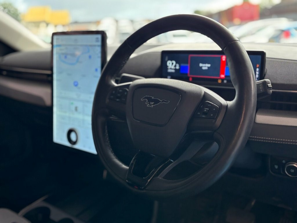 1 OWNER FROM NEW+2 CABLES+NAV+FULL LEATHER SEATS+PARK CONTROL+DAB+PRIVACY+CLIMATE+BLUETOOTH+MEDIA+19" ALLOYS+USB+AUX+CRUISE+HEATED FRONT SEATS+HPI CLEAR+VOSA MOT HISTORY,+SH+FULL DEALER FACILITIES+GOOD MPG,+RAC CHECKED+The car is in very good condition in and out . Bodywork and interior clean for age and mileage . Interior is clean and tyres good ,Engine and gearbox in good order. This 2021 Ford Mustang Mach E Standard Range has had only one owner, offering a pristine example of this popular electric vehicle. With a total battery capacity of 76 kWh, it boasts a maximum range of 273 miles when new, making it ideal for both daily commutes and longer journeys. Charging at home using a 7kW charger takes approximately 11 hours and 24 minutes for a full charge, while rapid public charging can replenish the battery from empty to 80% in as little as 43 minutes. This particular model comes with an MOT valid until August 2026, providing peace of mind for the new owner. Further enhancing the driving experience are several notable features designed for convenience and safety. These include BLIS Blind Spot Information System with Cross Traffic Alert and Blind Spot Assistance, a heated steering wheel for comfort on colder days, and a rear view camera for easier parking. The E Latch Keyless Entry System, complete with B Pillar Keypad Access, offers seamless entry and security. Inside, you'll find heated driver and passenger seats, ensuring a comfortable ride for everyone. These 10.2in Full Digital Cluster and 15.5in C, 18in Alloy Wheels - 5-Spoke - Silver, 6-Way Manual Driver and Passenger Seats, ABS - Anti-lock Braking System, Adaptive Cruise Control with Stop and Go, Air Conditioning - Dual Zone Electronic , Airbags - Driver and Front Passenger, Applink Remote Control System, BLIS - Blind Spot Information System wit, Body Colour Bumpers, Body Colour Heated Mirrors with Puddle L, Brace Front Grille Design, E-Latch Keyless Entry System including B, Electric Windows - Front, FordPass Connect Embedded Modem, Front and Rear Parking Sensors, Front Trunk, Heated Driver and Passenger Seats, Heated Steering Wheel, High Power Charging Cable, Home Charging Cable, Lane Keepi