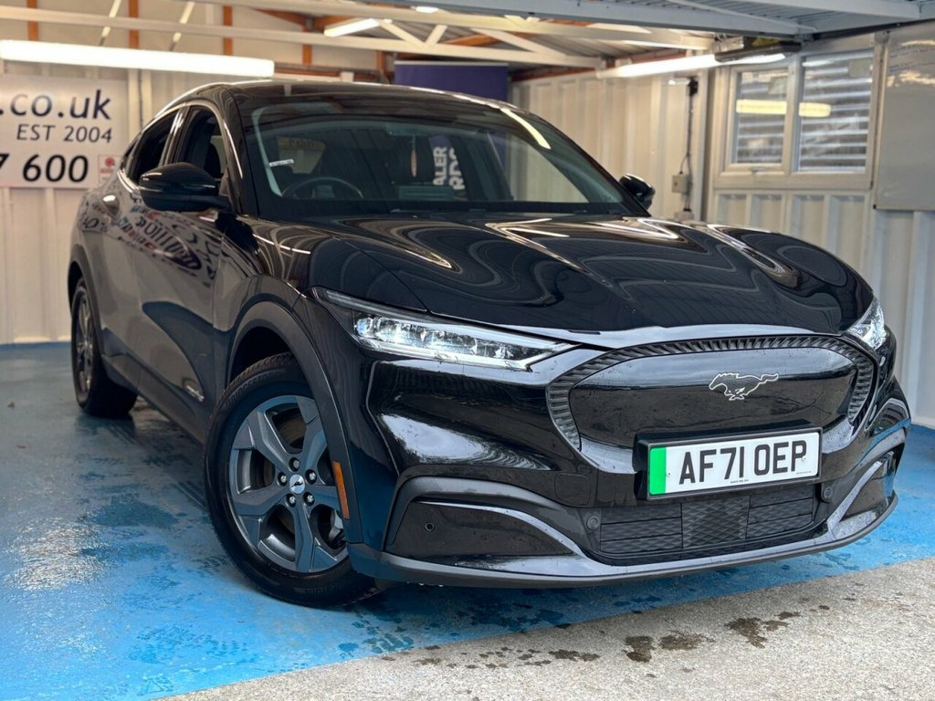 2 KEYS+1 OWNER FROM NEW+FSH+2 CABLES+FULL LEATHER SEATS+PRIVACY+18" ALLOYS+PARK CONTROL+DIGITAL DASH+BLUETOOTH+MEDIA+NAV+CLIMATE+HEATED FRONT SEATS+HPI CLEAR+VOSA MOT HISTORY,+SH+FULL DEALER FACILITIES+GOOD MPG,+RAC CHECKED+The car is in very good condition in and out . Bodywork and interior clean for age and mileage . Interior is clean and tyres good ,Engine and gearbox in good order. This 2021 Ford Mustang Mach-E, with only one owner from new, offers an exceptional electric driving experience. As a Standard Range model, it boasts a 76 kWh battery providing a maximum range of 273 miles when new. Charging is convenient, with a full charge at home using a 7kW charger taking approximately 11 hours and 24 minutes, while rapid public charging can take you from empty to 80% in just 43 minutes. This vehicle is ready for the road, with its MOT valid until August 2026. Notable features include striking LED Reflector Headlamps, a comfortable Heated Steering Wheel, and the convenient E-Latch Keyless Entry System with B-Pillar Keypad Access. Inside, you'll find the advanced SYNC system with Connected Navigation and Natural Voice Search, along with a Wireless Device Charging Pad for seamless connectivity. The Mustang Mach-E stands out with its impressive electric capabilities and thoughtful features. The extended MOT validity and single ownership history indicate a well cared for vehicle, suggesting a higher standard of maintenance compared to others. The combination of its s 10.2in Full Digital Cluster and 15.5in C, 18in Alloy Wheels - 5-Spoke - Silver, 6-Way Manual Driver and Passenger Seats, ABS - Anti-lock Braking System, Absolute Black, Adaptive Cruise Control with Stop and Go, Air Conditioning - Dual Zone Electronic , Airbags - Driver and Front Passenger, Applink Remote Control System, BLIS - Blind Spot Information System wit, Body Colour Bumpers, Body Colour Heated Mirrors with Puddle L, Brace Front Grille Design, E-Latch Keyless Entry System including B, Electric Windows - Front, FordPass Connect Embedded Modem, Front and Rear Parking Sensors, Front Trunk, Heated Driver and Passenger Seats, Heated Steering Wheel, High Power Charging Cable, Home Charging C