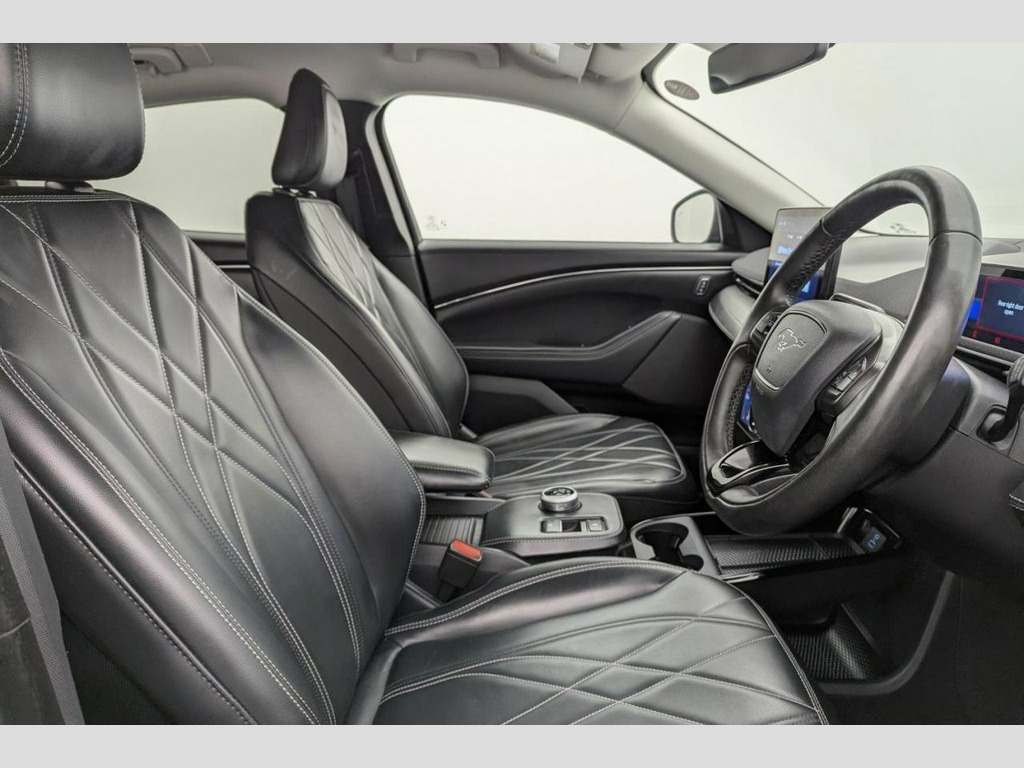 Henson Car Store Presents the FORD MUSTANG MACH-E Standard Range 70kWh SUV 5dr Electric Automatic finished in Black, this car comes with service history and is VAT qualifying. This 2021 Ford Mustang Mach E is a remarkable example, having been cherished by only one owner since new. As a Standard Range electric model, it boasts a 76 kWh battery offering a maximum range of 273 miles when new. This impressive electric vehicle also features the convenient E-Latch Keyless Entry System with B-Pillar Keypad Access, ensuring effortless entry. Experience enhanced comfort and convenience with the Mustang Mach E's Adaptive Cruise Control, complete with Stop and Go and Lane Centering capabilities. Both the driver and front passenger can enjoy the warmth of heated seats, while the heated steering wheel provides extra comfort on colder days. The Dual Zone Electronic Automatic Temperature Control allows for personalised climate settings, making every journey a pleasure. Charging is efficient, with a full charge at home taking approximately 11 hours and 24 minutes using a 7kW charger, and a rapid charge from empty to 80% achievable in just 43 minutes at a public charging station. These features collectively position this Mustang Mach E as a superior choice for electric vehicle ownership. 10.2in Full Digital Cluster and 15.5in C, 18in Alloy Wheels - 5-Spoke - Silver, 6-Way Manual Driver and Passenger Seats, ABS - Anti-lock Braking System, Adaptive Cruise Control with Stop and Go, Air Conditioning - Dual Zone Electronic , Airbags - Driver and Front Passenger, Applink Remote Control System, BLIS - Blind Spot Information System wit, Body Colour Bumpers, Body Colour Heated Mirrors with Puddle L, Brace Front Grille Design, E-Latch Keyless Entry System including B, Electric Windows - Front, FordPass Connect Embedded Modem, Front Trunk, Front and Rear Parking Sensors, Heated Driver and Passenger Seats, Heated Steering Wheel, High Power Charging Cable, Home Charging Cable, LED Mustan