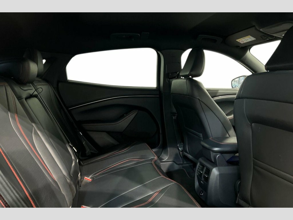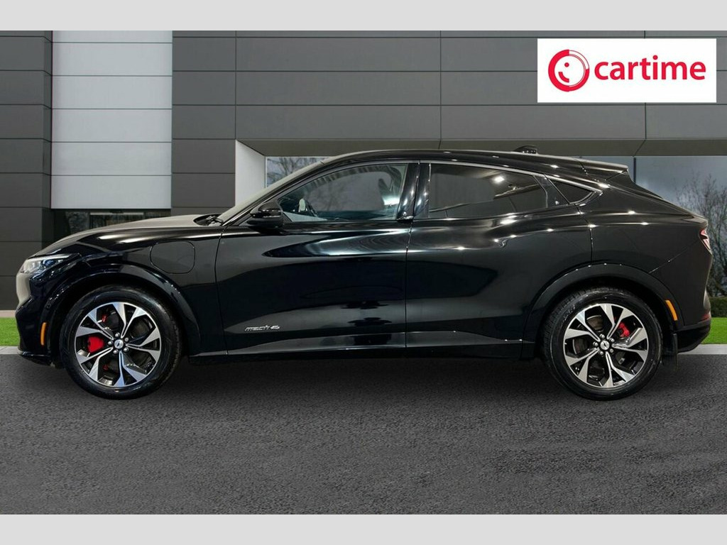 This 2021 Ford Mustang Mach-E is a remarkable example, having had only one owner since new. This electric vehicle, presented in the Standard Range variant, boasts a four wheel drive drivetrain powered by a 76 kWh battery, offering a maximum range of 248 miles when new. Charging at home with a 7kW charger takes approximately 11 hours and 24 minutes, while rapid public charging can take the battery from empty to 80% in just 43 minutes. Inside, you'll find a host of convenient features including a wireless device charging pad, heated driver and passenger seats, and dual zone electronic automatic climate control. For enhanced safety and ease of parking, it is equipped with a 360 degree camera and BLIS blind spot information system with cross traffic alert. Experience exhilarating performance with this Mustang Mach-E, capable of accelerating from 0 to 60mph in a swift 5.6 seconds. This impressive acceleration highlights its dynamic capabilities, setting it apart from many other vehicles in its class. The combination of its electric powertrain, all wheel drive system, and advanced technology ensures a refined and responsive driving experience, making it a compelling choice for those seeking both efficiency and performance. 10.2in Full Digital Cluster and 15.5in C, 19in Alloy Wheels - Black Machined, 360 Degree Camera, 8-Way Power Driver and Passenger Seats, ABS - Anti-lock Braking System, Absolute Black, Adaptive Cruise Control with Stop and Go, Adaptive LED Mustang Signature Headlamps, Air Conditioning - Dual Zone Electronic , Airbags - Driver and Front Passenger, Applink Remote Control System, Black Powerfold Mirrors with Puddle Ligh, Blade Front Grille Design, BLIS - Blind Spot Information System wit, Body Colour Bumpers, E-Latch Keyless Entry System including B, Electric Windows - Front, Ford VarioPower Charging Cable, FordPass Connect Embedded Modem, Front and Rear Parking Sensors, Front Trunk, Hands-Free