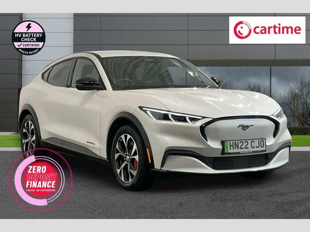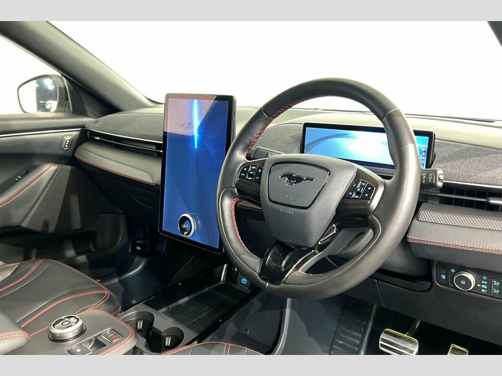 This 2022 Ford Mustang Mach-E Standard Range is a superb example, having had only one owner since new. This electric vehicle boasts a four wheel drive drivetrain and a 76 kWh battery, offering a maximum range of 248 miles when new. It features the convenient E-Latch Keyless Entry System with B-Pillar Keypad Access, alongside Adaptive LED Mustang Signature Headlamps. Inside, you'll find the Next Generation SYNC system with Connected Navigation and Natural Voice Search, a Heated Steering Wheel for those colder journeys, and a 360 Degree Camera for effortless parking. Experience exhilarating performance with this Mustang Mach-E, accelerating from 0-60mph in just 5.6 seconds, a figure that demonstrates its dynamic capability. Charging is straightforward, with a full charge at home on a 7kW charger taking approximately 11 hours and 24 minutes, while rapid public charging can take the battery from empty to 80% in as little as 43 minutes. These attributes combine to make this electric Mustang Mach-E a compelling choice for those seeking a blend of performance, technology, and practicality. 10.2in Full Digital Cluster and 15.5in C, 19in Alloy Wheels - Black Machined, 360 Degree Camera, 8-Way Power Driver and Passenger Seats, ABS - Anti-lock Braking System, Adaptive Cruise Control with Stop and Go, Adaptive LED Mustang Signature Headlamps, Air Conditioning - Dual Zone Electronic , Airbags - Driver and Front Passenger, Applink Remote Control System, Black Powerfold Mirrors with Puddle Ligh, Blade Front Grille Design, BLIS - Blind Spot Information System wit, Body Colour Bumpers, E-Latch Keyless Entry System including B, Electric Windows - Front, Ford VarioPower Charging Cable, FordPass Connect Embedded Modem, Front and Rear Parking Sensors, Front Trunk, Hands-Free Tailgate, Heate