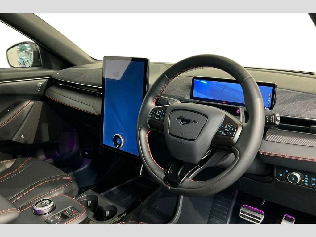 This 2022 Ford Mustang Mach-E Standard Range boasts exceptionally low mileage, having covered just 8260 miles, and has had only one owner since new. This electric vehicle features a Four Wheel Drive drivetrain and a 76 kWh battery, offering a maximum range of 248 miles when new. Charging at home with a 7kW charger takes approximately 11 hours and 24 minutes, while rapid public charging can take the battery from empty to 80% in as little as 43 minutes. The MOT is valid until July 2026, providing peace of mind. Notable features include Adaptive LED Mustang Signature Headlamps, Dual Zone Electronic Automatic Climate Control, Heated Driver and Passenger Seats, Adaptive Cruise Control with Stop and Go and Lane Centering, and Front and Rear Parking Sensors. Experience the impressive performance of this Mustang Mach-E, with its ability to accelerate from 0 to 60mph in a swift 5.6 seconds. This rapid acceleration, combined with its electric powertrain and advanced features, sets it apart from other vehicles in its class. The Adaptive Cruise Control and parking sensors make driving and maneuvering easier, while the heated seats ensure comfort in all conditions. The long MOT and low ownership history further highlight the care this vehicle has received, making it a compelling choice for those seeking an electric SUV with both style and substance. 10.2in Full Digital Cluster and 15.5in C, 19in Alloy Wheels - Black Machined, 360 Degree Camera, 8-Way Power Driver and Passenger Seats, ABS - Anti-lock Braking System, Absolute Black, Adaptive Cruise Control with Stop and Go, Adaptive LED Mustang Signature Headlamps, Air Conditioning - Dual Zone Electronic , Airbags - Driver and Front Passenger, Applink Remote Control System, Black Powerfold Mirrors with Puddle Ligh, Blade Front Grille Design, BLIS - Blind Spot Information System wit, Body Colour Bumpers, E-Latch Keyless Entry System including B, Electric Windows - Front, Ford VarioPower Charging Cable, FordPass Connect Embedded Modem, Front and Rear Parking Sensors, Front Trunk, Hands-Free