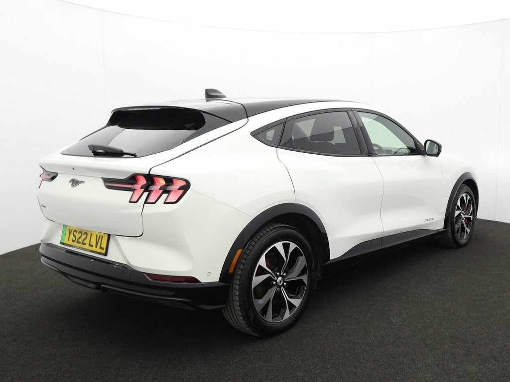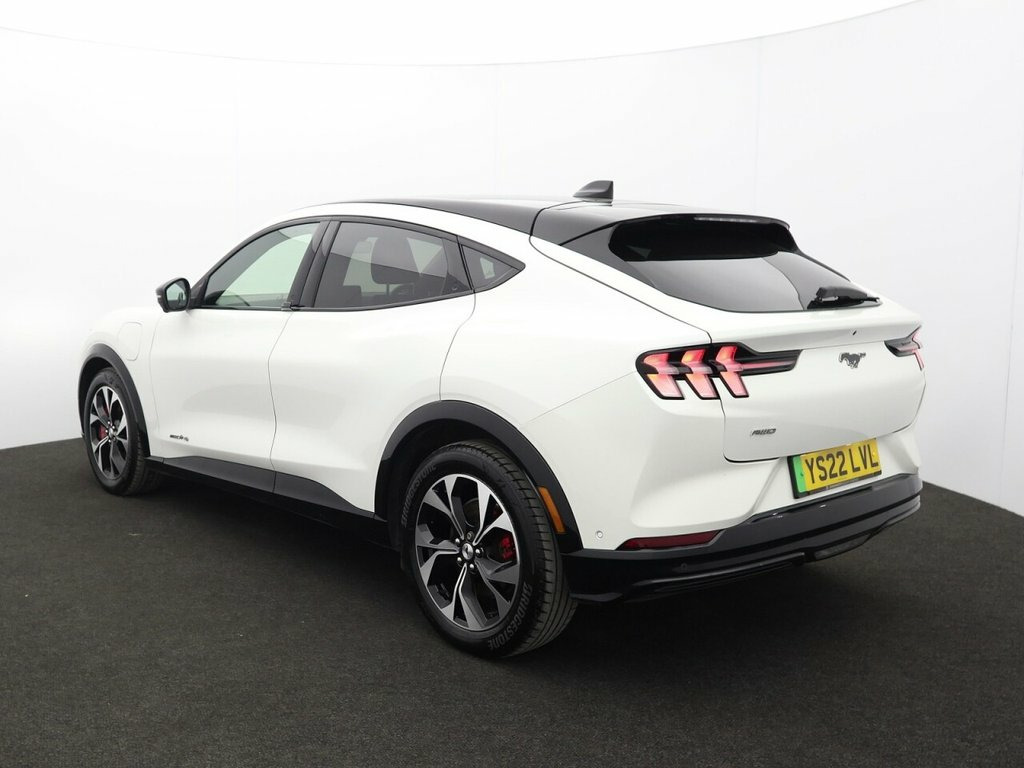 This 2022 Ford Mustang Mach-E Standard Range boasts exceptionally low mileage for its age, having covered just 28,807 miles, and has been cared for by a single owner. This electric four wheel drive model features a 76 kWh battery offering a maximum range of 248 miles when new. Charging at home with a 7kW charger takes approximately 11 hours and 24 minutes for a full charge, while rapid public charging can take you from empty to 80% in as little as 43 minutes. The vehicle's MOT is long, providing peace of mind. Experience a refined drive with features like Dual Zone Electronic Automatic Temperature Control, a 360 Degree Camera for effortless parking assistance, and the convenient E-Latch Keyless Entry System with B-Pillar Keypad Access. Stay comfortable with a Heated Steering Wheel and enjoy an enhanced audio experience thanks to the Premium Branded Sound System included in the Tech Pack Plus. The Mustang Mach-E's performance is equally impressive, with an acceleration of 0-60mph in just 6.3 seconds, demonstrating its capability compared to other vehicles in its class. 10.2in Full Digital Cluster and 15.5in C, Applink Remote Control System, FordPass Connect Embedded Modem, Next Generation SYNC with Connected Navi, Wireless Device Charging Pad, 19in Alloy Wheels - Black Machined, Black Powerfold Mirrors with Puddle Ligh, Blade Front Grille Design, Body Colour Bumpers, Electric Windows - Front, Privacy Glass, Quickclear Heated Windscreen, Red Brake Calipers, Side Cladding and Wheel Arches Piano Bla, 8-Way Power Driver and Passenger Seats, Air Conditioning - Dual Zone Electronic , Front Trunk, Hands-Free Tailgate, Heated Driver and Passenger Seats, Heated Steering Wheel, One Pedal Drive, Tech Pack Plus, Adaptive LED Mustang Signature Headlamps, Ford VarioPowe