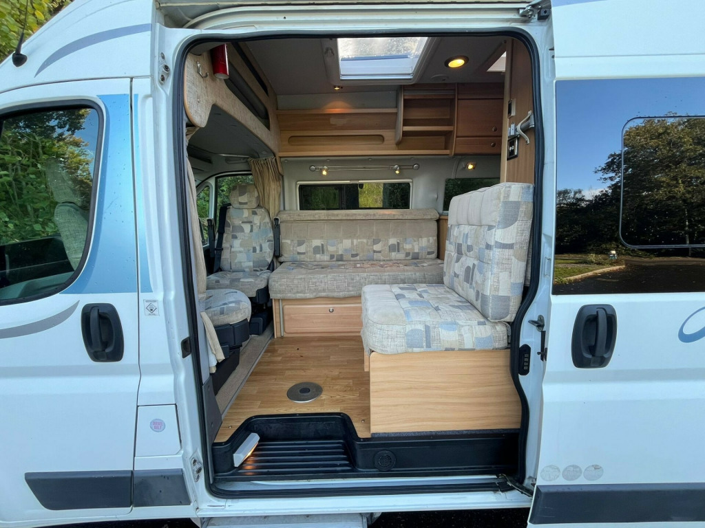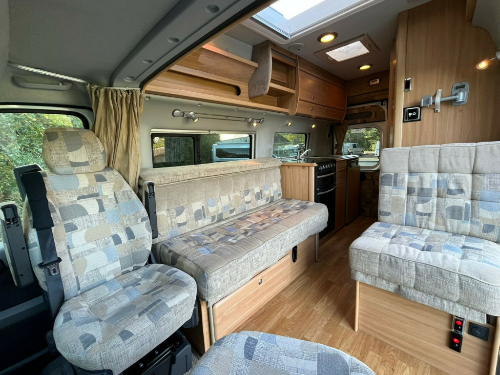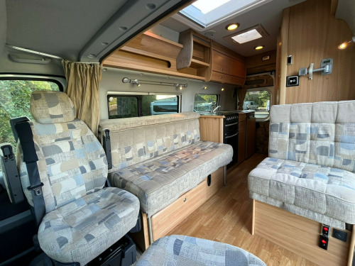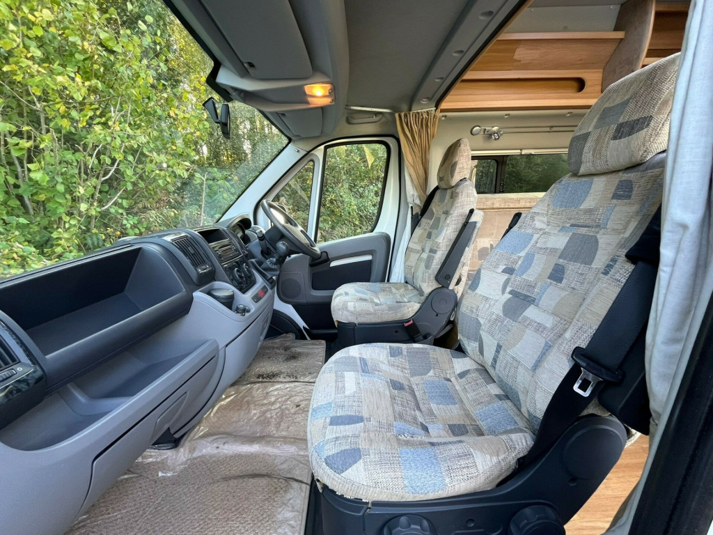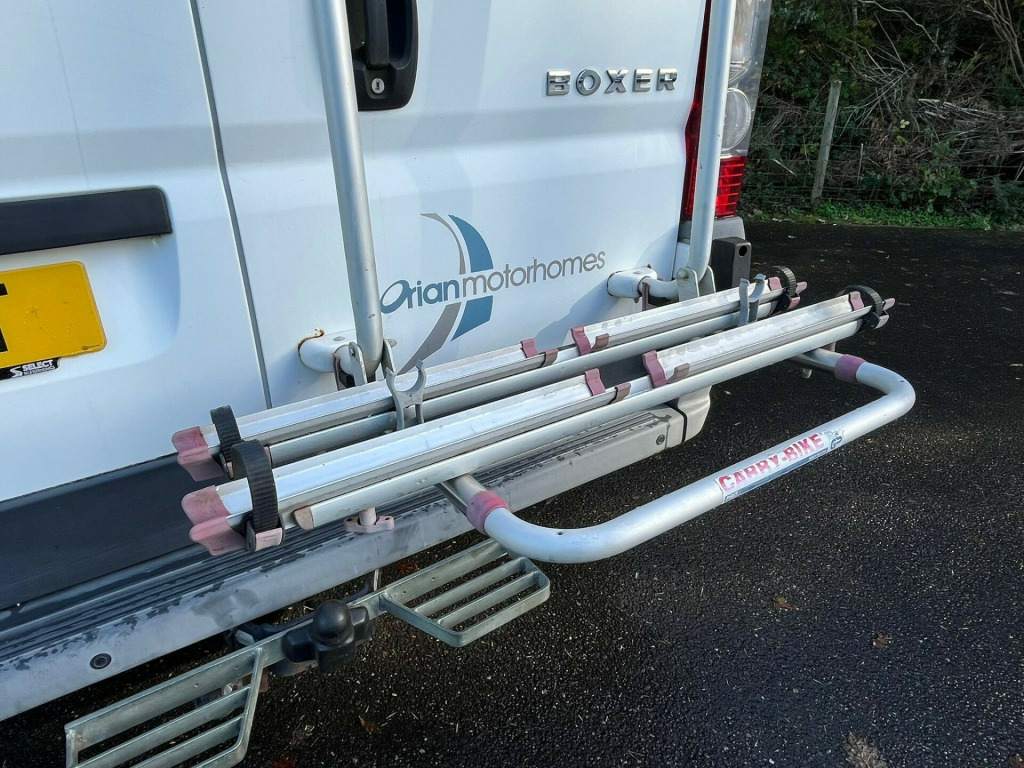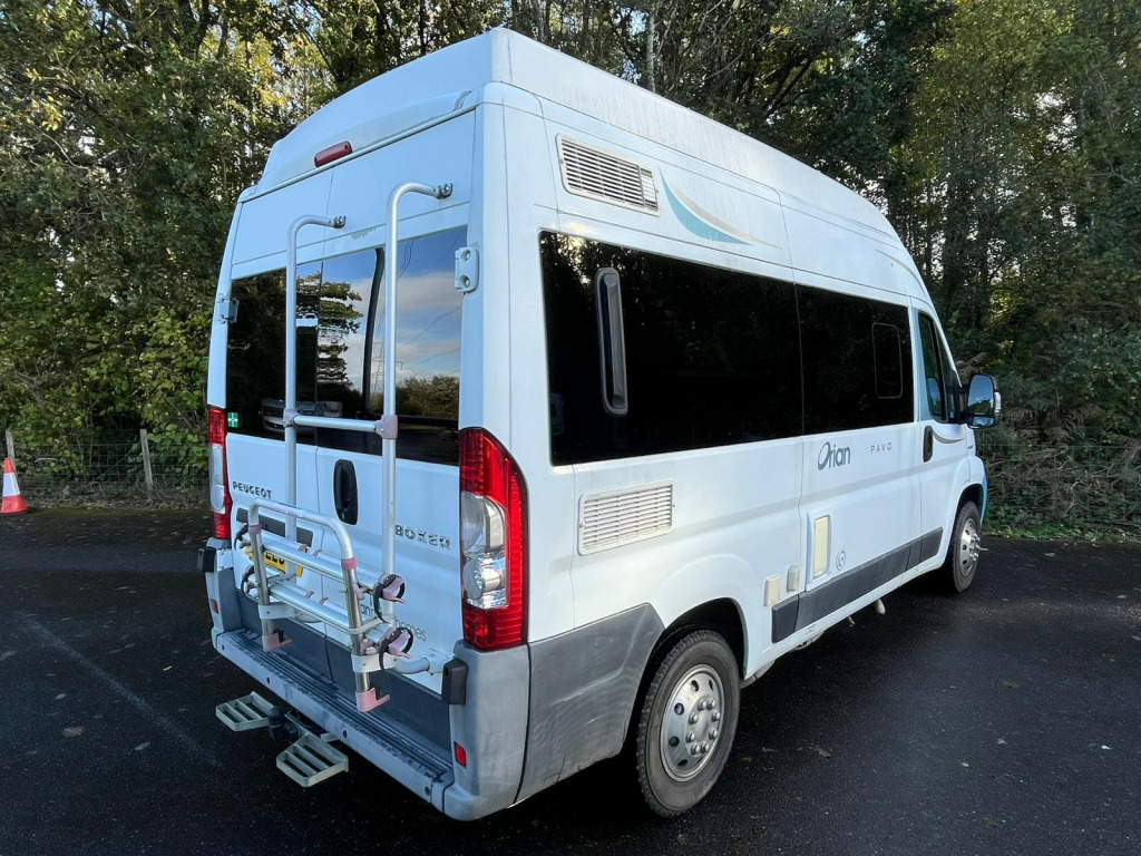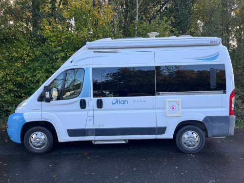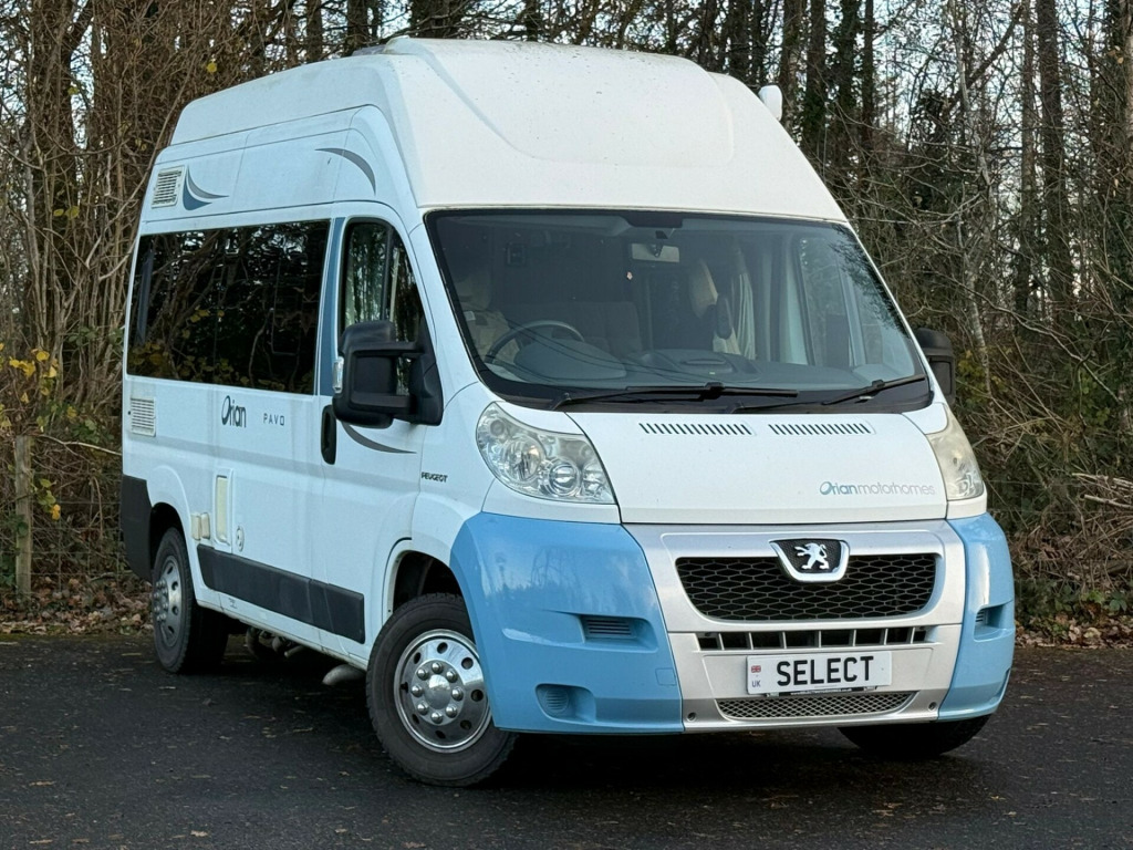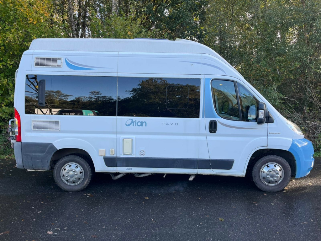 Experience compact touring at its finest with this 2008 Orian Pavo (predecessor to the Auto-Sleepers Symbol) - a smart, stylish and incredibly versatile camper built on the trusted Peugeot Boxer chassis with a durable chain-driven engine. With just 61,824 miles, it's been beautifully looked after and comes packed with thoughtful features designed to make every trip a pleasure. The air suspension ensures a smooth, stable drive, while the front lounge conversion creates a welcoming space to relax, with a couch perfectly positioned so you can enjoy your morning coffee while gazing out of the sliding door at your latest scenic view.Inside, you'll find everything you need for independent adventures - a full kitchenette for cooking on the go, a practical wet room with toilet and shower, and clever storage solutions tucked into every corner to make the most of its compact size. Outside, a tow hitch with integrated step, bike rack, and awning add extra functionality for active holidays and relaxed evenings alike. Whether you're heading off for weekends by the coast or long scenic escapes, this Orian Pavo is the perfect mix of comfort, capability, and clever design. ssette toilet, double bed, hand basin, rear washroom, shower, wardrobe, fridge freezer, grill, hob, oven, side kitchen, sink/drainer, 3 point seatbelts, central locking, electric windows, power steering, air bag, cd player, radio, front head restraints, steel wheels, awning, barn doors, bike rack, c rail, diesel heating, electric hook up, electric step, hot and cold water, loose carpets, parking sensors, shower point, swivel captain chairs, towbar, tv aerial, tv ready, underslung water tanks