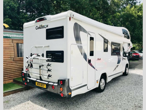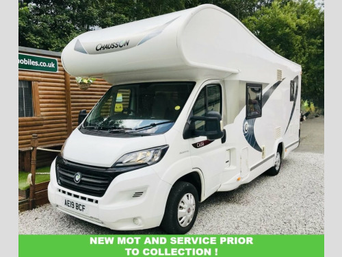 Chausson Flash 656 Motorhome, Built from brand new by this well respected quality manufacturer. Based on th very popular Fiat Ducatto 2.3 Litre Euro 6. 6 belted seats 2 double beds with 3 singles so ideal for large family or possibly 2 couples with 3 kids colectively. One bunk can be closed off and wound up to make garage a lot bigger. Large Thetford Fridge, Toilet with wash basin and decent size shower. will have full service with a new MOT Prior to delivery. Living Space: It features a lounge/dining area with seating for six to eight, and a kitchen with a hob, grill, and fridge. Bathroom: Includes a separate shower cubicle, toilet, and washbasin. Garage: The rear bunk beds can be converted into a large garage space. includes cab air conditioning, cruise control