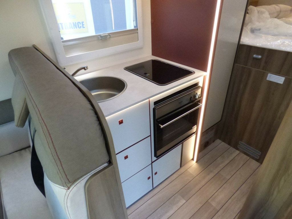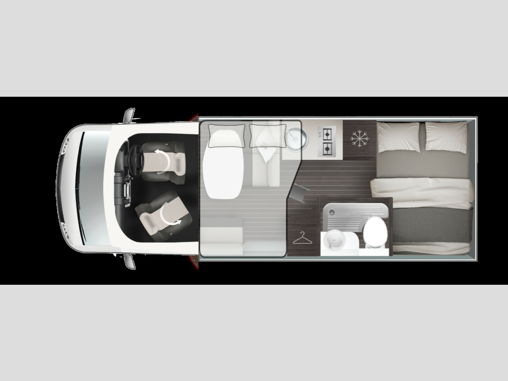 New model for 2026, the Kronos 665 based on the Ford chassis with 170bhp engine and 8 speed automatic transmission. The new 665, is sure to be a real hit with both families looking for a compact motorhome and couples with the need for occasional extra beds. The dinette seats 4 in comfort with swivel front seats. A fully equipped kitchen sits behind with a 3 burner gas hob and Thetford gas oven & grill below along with a large fridge/freezer. The bathroom opposite has a shower cubicle, cassette type toilet and wash hand basin. The rear fixed bed sits above a garage which is an exceptional size for a sub 6.5m motorhome. Heating and hot water is by a Truma duel fuel system and other features for the Kronos 665 include: Metallic cab, alloy wheels, Thule Awning, WiFi, external shower & BBQ points, reversing camera, factory Flex bed option, solar panel, Fiamma bike rack. L. 6.41m, W. 2.15m, H. 2.95m, 4 berth, 4 seatbelts, Delivery miles. 0w solar panel with mppt controller, alloy wheels, automatic transmission, bike rack, carpets, external gas bbq point, external shower point, factory flex bed, flyscreen for hab door, front parking sensors, iso fix child seat fixings, pleated cab blinds, rear garage, reversing camera, thule awning, tv bracket, ford 12, 16'' Alloys