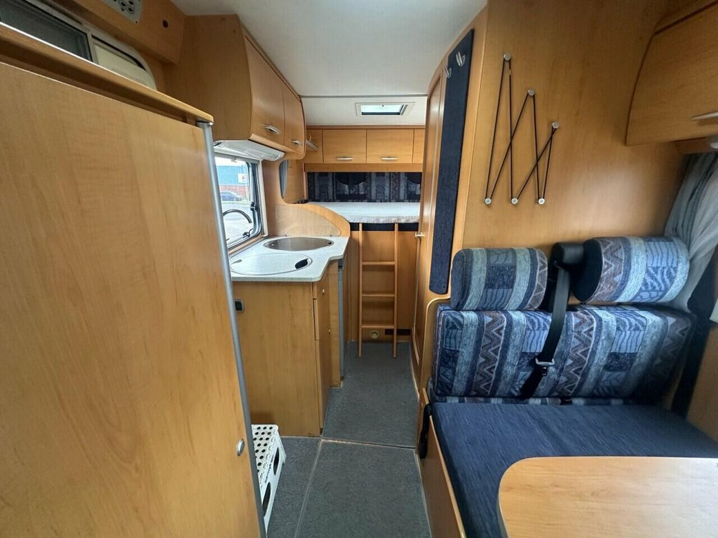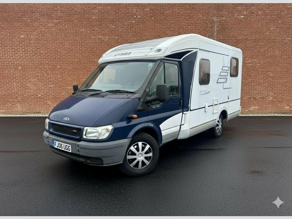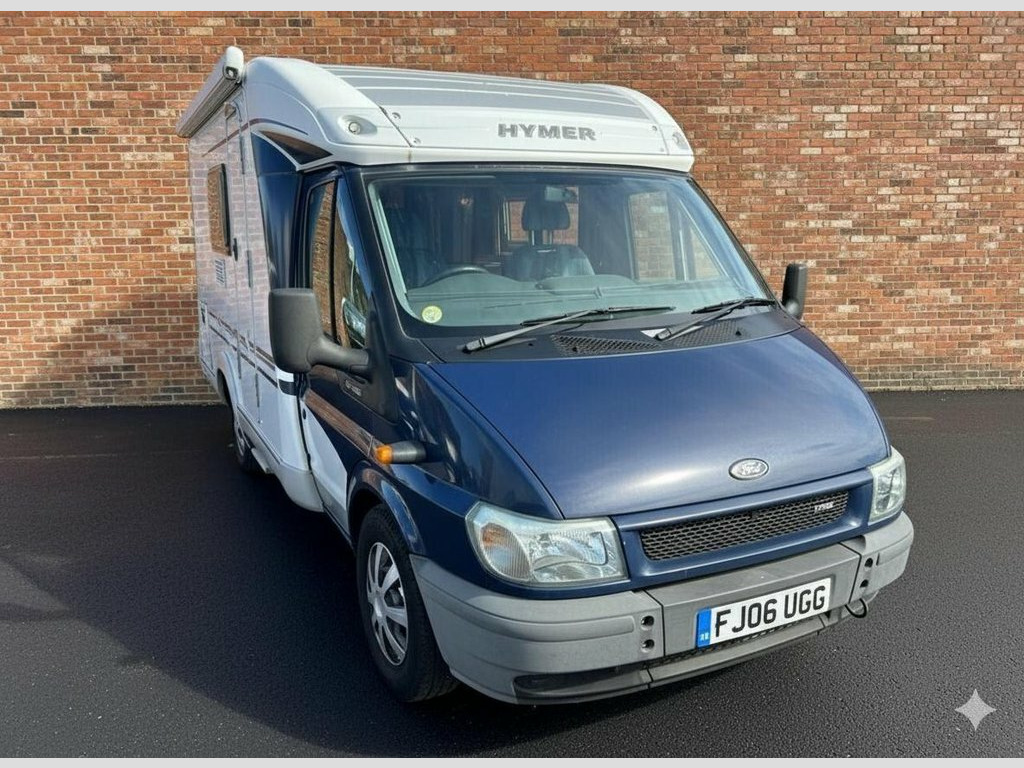 July 2006 Hymer 522 3 Berth motorhome finnished in blue/white. This example has covered just 76,149 miles from new and comes with extensive service history, This example has been cherished and serviced and maintained regardless to cost including a full re-wiring and electronic master unit in the last 6 months! Everything is in full working order and the usual Hymer quality is felt across this camper! The Hymer 522 is a compact motorhome, built on a Ford Transit base, known for its rear garage and practical layout. It features a kitchen, a washroom with a toilet and sink, and a living/dining area that converts into a bed. includes a large rear garage suitable for storing bikes or a scooter, a 3,500 kg gross vehicle weight allowing it to be driven on a standard car license, and features a reversing camera and cab air conditioning as well as electric door mirrors and windows! Spacious easy-access rear double bed 6' 6" x 4' 4", Front Lounge/Dinette with two rear 3 point seat belts makes into a single bed, kitchen: Hob with three gas rings, Large energy selection 3-way Fridge/Freezer, Sink. Spacious Bathroom, Swing wall creates Separate Shower Cubicle, Cassette Toilet with electric flush, Sink and Vanity Unit. Truma Combi Water Heater and Space Heater. Full 12v/240V Electric System. Leisure battery with mains and alternator charging. 240V consumer unit. Fully Insulated body and floor. Double glazing, Blinds and Fly-screens. Winterized water system with on-board 12v Power, ABS, Air Con, Air Conditioning, Alarm, Awning, Bike Rack, Blinds, Cab Air Conditioning, Cassette toilet, CD / Radio, Central Locking, CO2 Detectors, Cruise Control, Cycle Rack, Dual Fuel Hob and Grill, Eberspacher Heating, Electric and Gas Heating, Electric Entrance Step, Electric Heater, Electric Mirrors, Electric Windows, End Bedroom, Exterior Access/Storage Locker, Exterior Gas Bottle Locker, External 240v, External Battery Locker, External Lighting and Safety, External Storage Locker, Fire Extinguisher, Fixed Bed, Flyscreen and Blinds, Flyscreens, Fresh Water Tank, Fresh/Waste Water Tank, Fridge, Grill, Hob, Hob and Grill, Hot and Cold Shower Unit, Immobiliser, Large rooflight