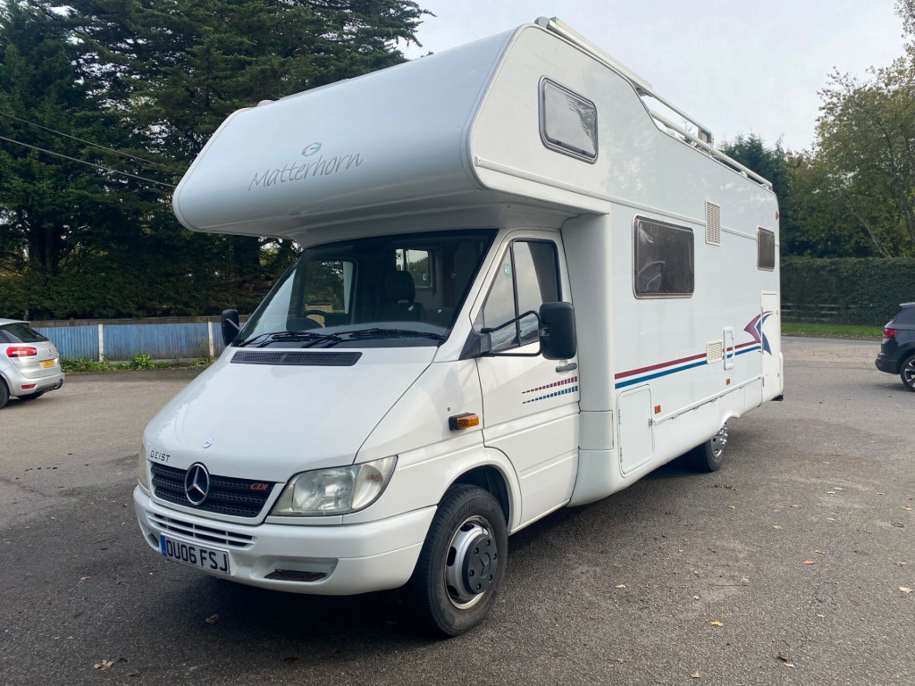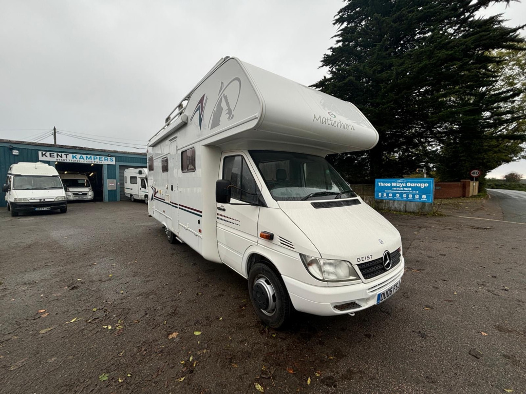 For sale is a 2006 Geist Matterhorn motorhome, powered by a reliable Diesel Mercedes-Benz 416 CDI engine Automatic with 72000 miles. This spacious 6 berth vehicle has a gross weight of 4600kg, making it ideal for family trips and adventures. This motorhome has been well-maintained and is ready for its next owner to enjoy. Whether it's a weekend getaway or a longer road trip, the Geist Matterhorn offers comfort and convenience on the go. Don't miss out on this fantastic opportunity to own a quality motorhome for all your travel needs.Air Con., Fixed Bed, Garage, Rear Seat Belts, Awning, Automatic , Solar Panels, Reversing Camera