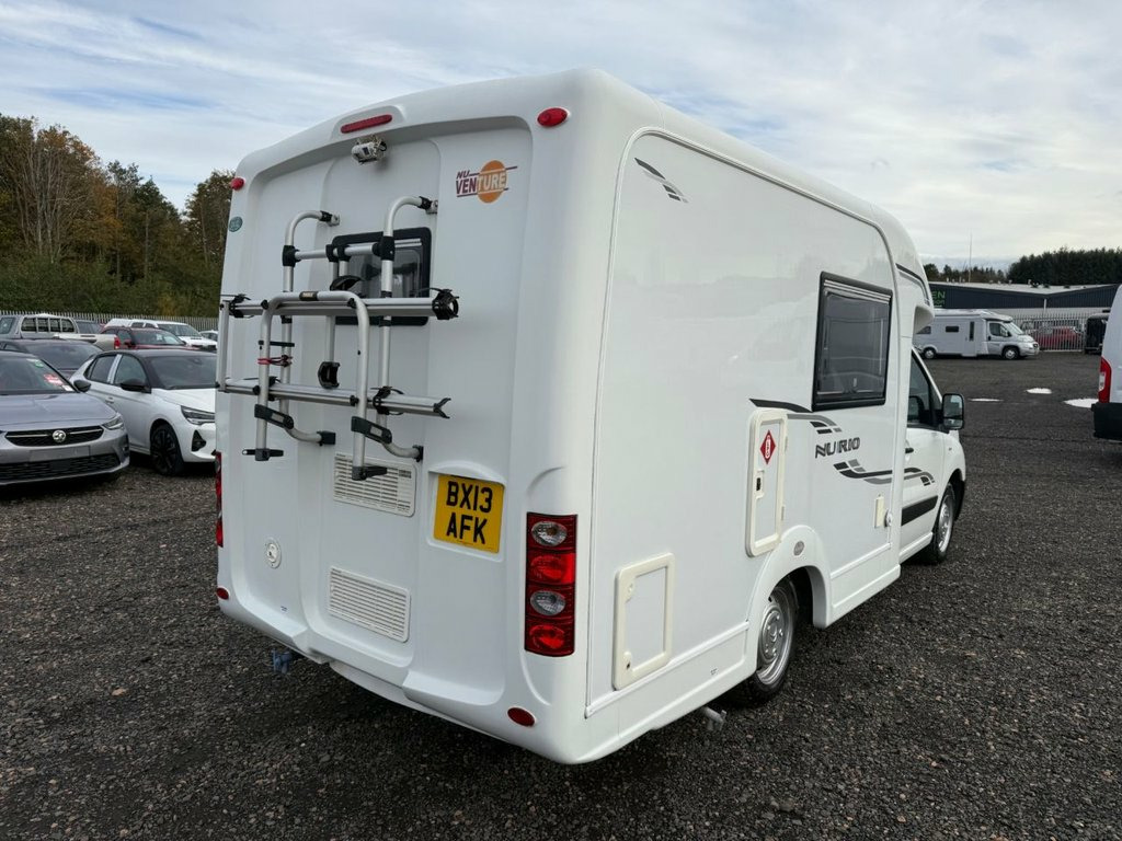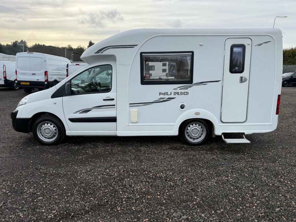 Small but spacious describes this coachbuilt from Nu Venture, based on Citroën s Dispatch. The sub-6m length and 1.96m width are among the key selling points. If you think the on-board facilities have been pared down as a result of this, think again. This model has 3 travelling seat belts and sleeps 2 people, also a manual gearbox with a 125bhp Engine. The Citroën base provides a more car-like experience than most, thanks to a lower seating position. The Nu Rio is the most popular format. The interior features a central settee with dinette opposite. The floorplan has an end-kitchen with a washroom in the rear offside corner. Main access is via a stable-type door. All the windows are flush-framed and double-glazed, with cassette blinds and flyscreens inside. Bodywork is GRP-clad, with polystyrene insulation. When it comes to sleeping, you can opt for twin single beds or a double in either scenario you will be sleeping lengthways. 12 Volt Socket on Centre Console, 15 in Steel Wheels, ABS, Automatic Illumination of Cabin Lighting, Converter Socket, Deadlocks, Drivers Airbag, Electric Front Windows with One Touch Op, Emergency Braking Assistance (EBA), Warn, Floor Mounted Anchorage Points, Front Fog Lights, Full Size Spare Wheel, Height Adjustable Front Seat Belts, Thre, Height and Reach Adjustable Steering Whe, Height-adjustable Headlamps, High Frequency Remote Control Central Lo, Ladder Frame Bulkhead, Laminated Windscreen, Multifunctional Trip Computer, Overhead Storage helf, Lockable Glove Bo, Power Assisted Steering, Pre-equipment for Towbar, Rear Doors Opening to 180°, Rear Fog Light with Twin Reversing Light