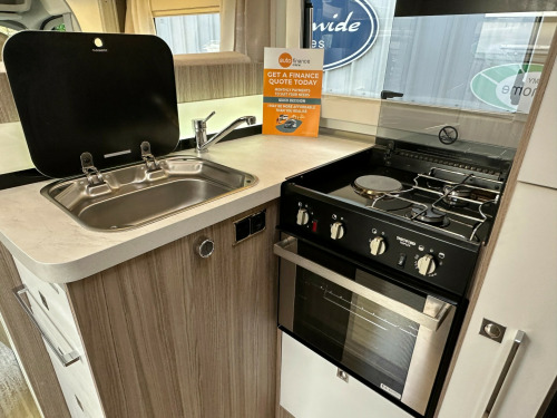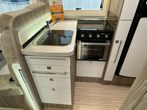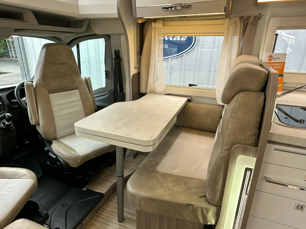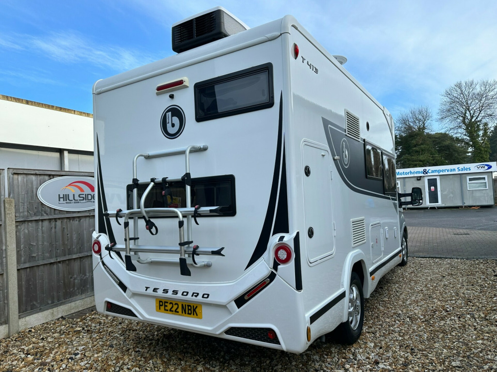 The Benimar Tessoro T413 , 4 berth and 4 seat belts , is a great family layout with rear transverse bunk beds which will also offer a garage when travelling. Side well-appointed kitchen and good-size shower room with a separate shower. Key features include Media screen, with Android Auto/ Apple Carplay, Cab and Hab air condition electric drop-down double bed and 2 x rail bike rack.. Call Now on 01202 855531 Option 1 for Sales '' We have attempted to make the above description as accurate as possible but please bear in mind that honest mistakes can happen so this description cannot form any part of any future contract. Some items fitted to models on display may be excluded from said contract' 0 mains & usb sockets, 4 berth, 4 seat belts, 6 speed manual, alloy wheels, battery charger, cab aircon, camera, cruise control, curtains, electric drop down bed, euro 6, flyscreens, ford 170 bhp engine, fresh water tank, fridge, front dinette, front lounge, gas bbq point, gas hob, heating, heki roof light, leisure battery, lovely original condition, mains hookup, microwave, plgv (under 3.5t), sat-nav, separate shower, sub 6.0 m van , swivel cab seats, waste tank, android auto, fiamma f45 cassette awning