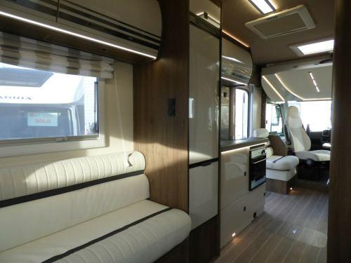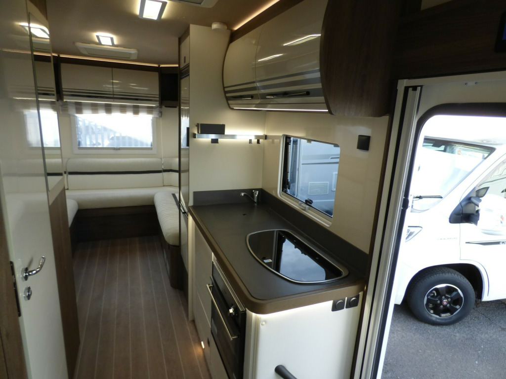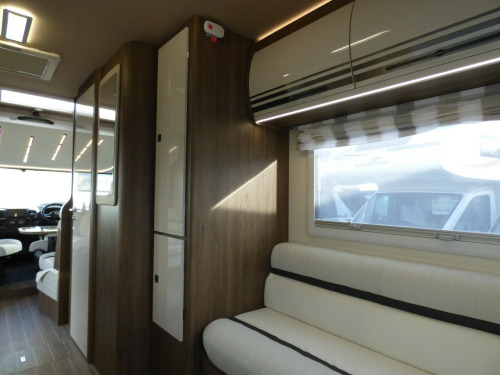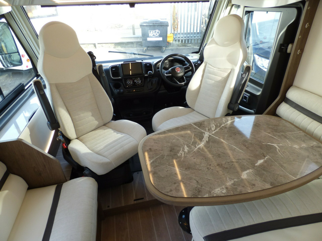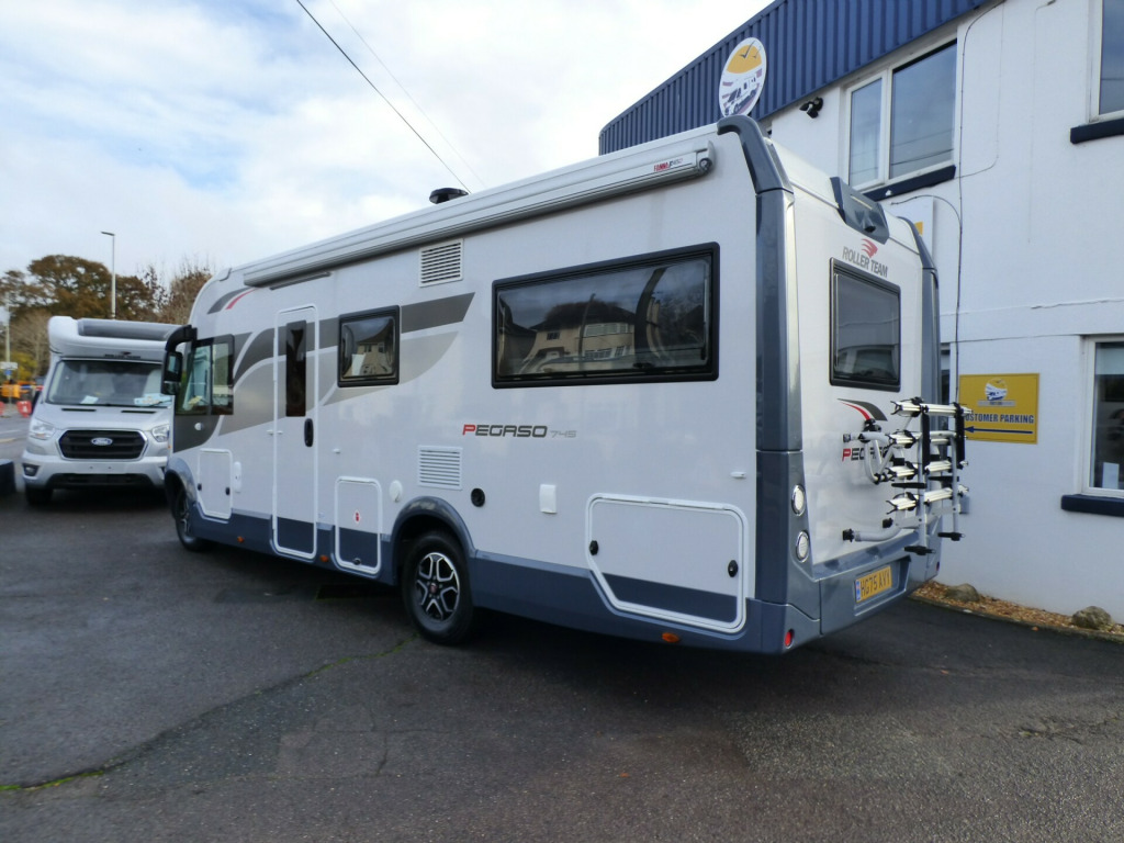 Ex demo 2024 model Pegaso 745 automatic. The Pegaso 745 has been a popular addition to the range since it was introduced in 2019. Based on the Fiat Ducato chassis with 140bhp engine and 9 speed automatic transmission, the end lounge layout is a hit with families and couples as it provides a light and airy living area whilst keeping the dining area free. A double bed swings down above the cab area and the rear lounge turns into a further double bed quickly with a pull out bed system. The kitchen is located centrally to one side and features a 3 burner gas hob, gas oven/grill and a good size fridge/freezer. The bathroom opposite has a shower cubicle, cassette type toilet and wash basin. Heating and hot water is provided by a Truma dual fuel system and other features on this Pegaso 745 include: Pioneer Sat Nav/Infotainment centre, Solar panel, Twin reversing cameras, WiFi, External gas BBQ and shower points, Colour Sat Nav, cab A/C, 4 bike rack and carpets. L. 7.41m, W. 2.35M, H. 2.95M, 3,500kg, 4 berth, 4 seat belts. Demo mileage. wifi, alloy wheels, automatic transmission, bike rack, carpets, external gas bbq point, external shower point, pioneer sat nav/infotainment system, pleated cab blinds, reversing camera, separate shower cubicle, solar panel, tv antenna, wind out awning, 21.5, 16'' Alloys
