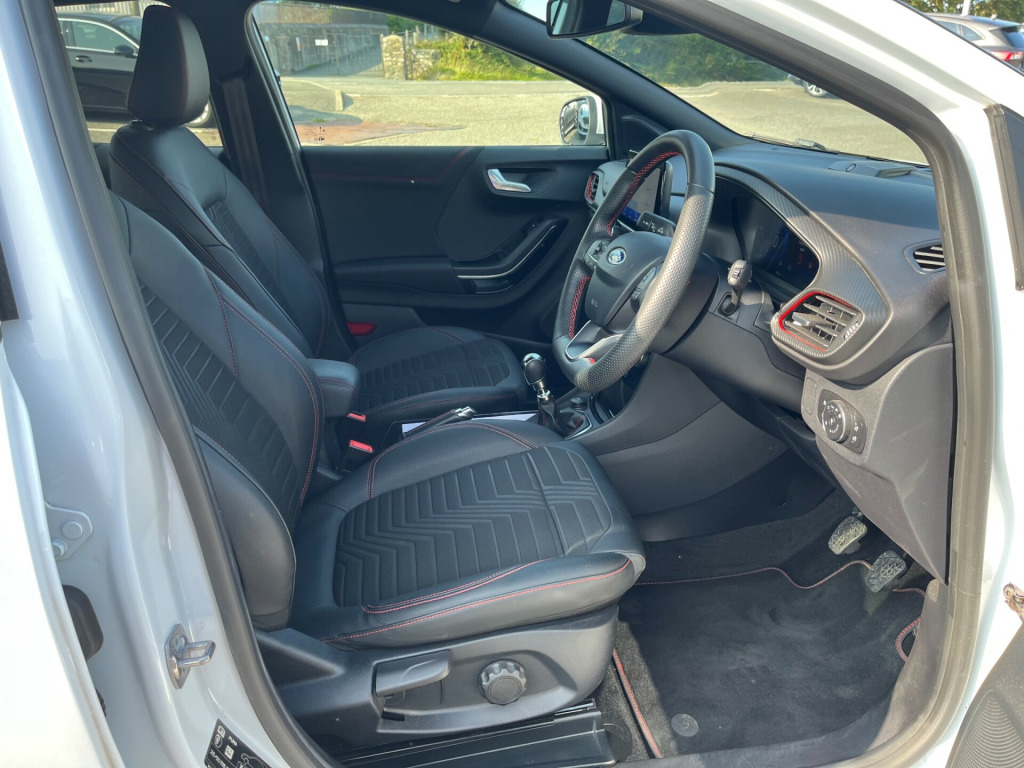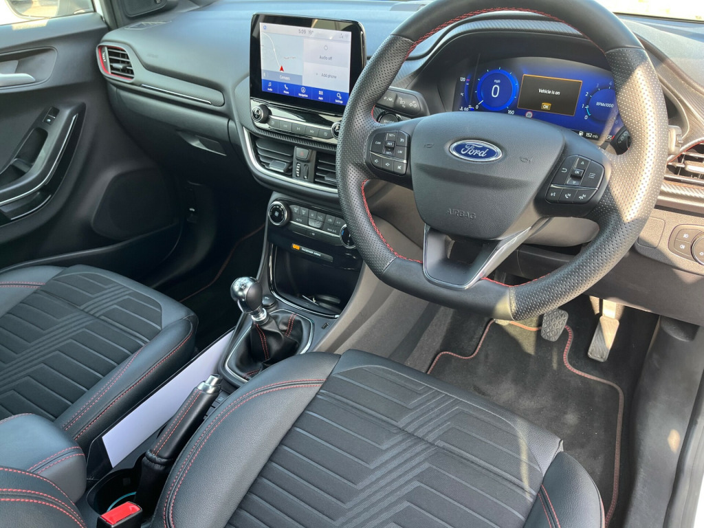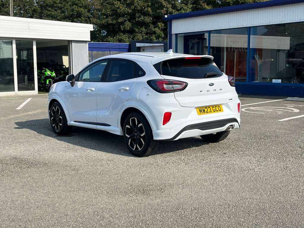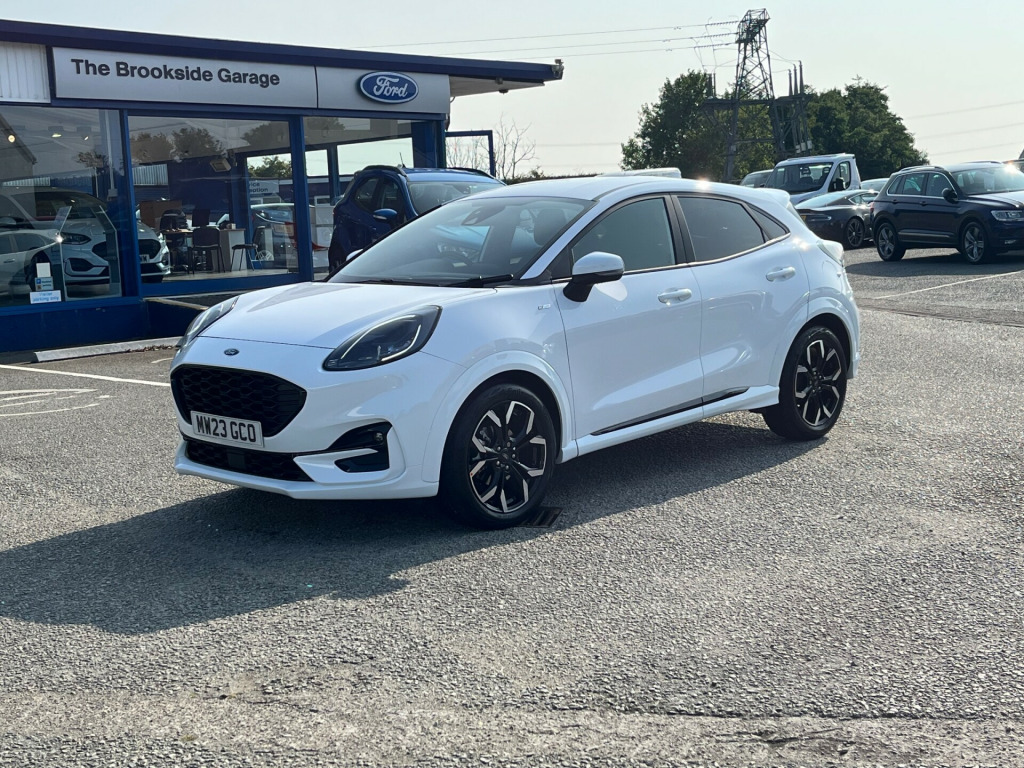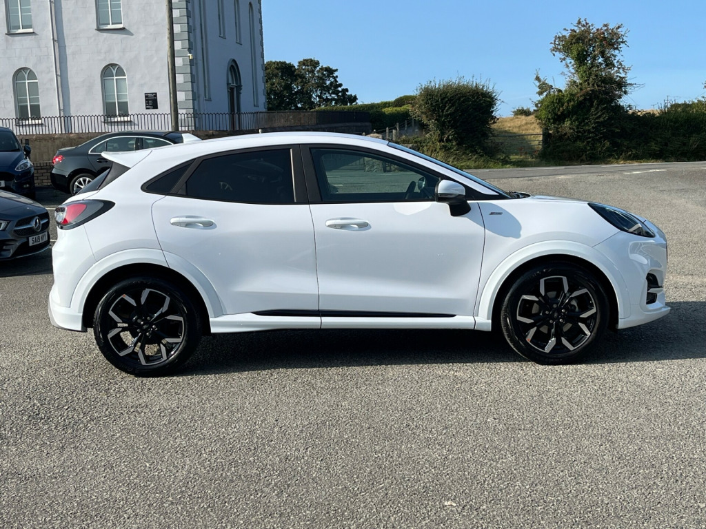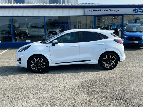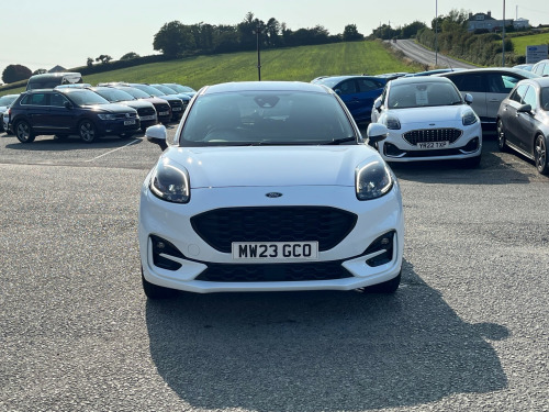 Modern Puma 1.0T 125ps MHEv ST-Line X finished in Frozen White. This car is very smooth and comfortable to drive with higher seating position and easy access. This low mileage example is Very well equipped with Sat Nav, Parking Sensors, Cruise Control, Climate Control, 1/2 Leather Seats, and Wireless Charging pad 18'' Alloys