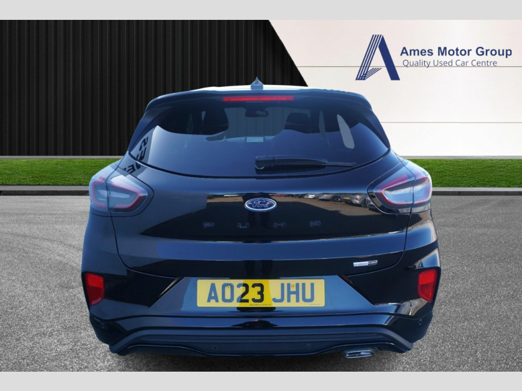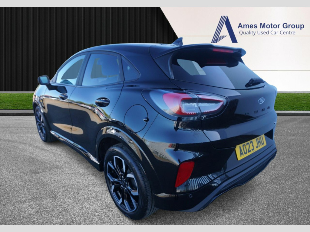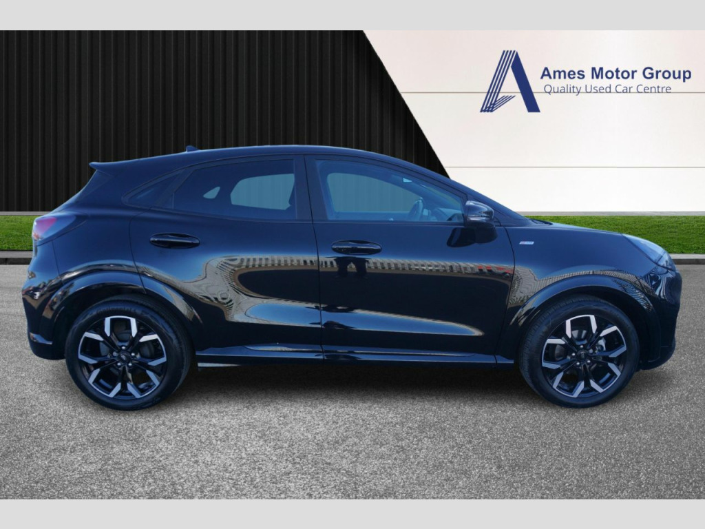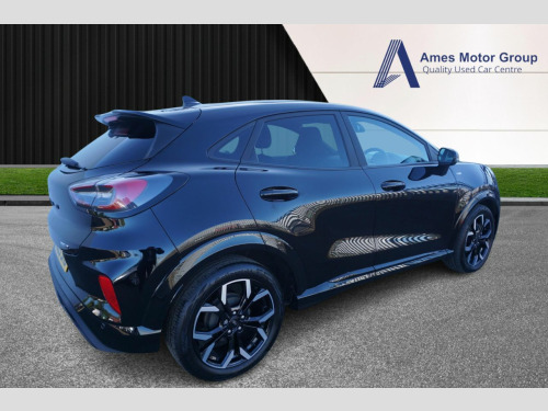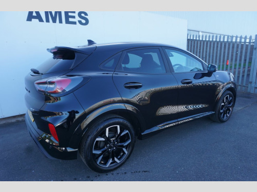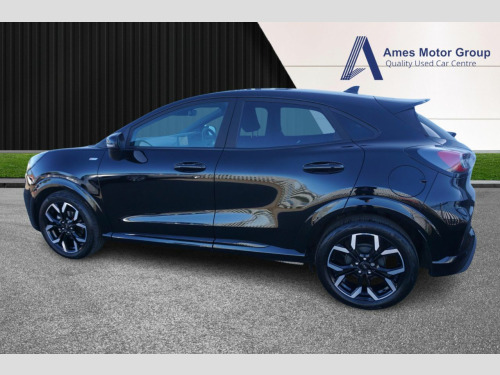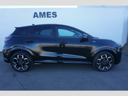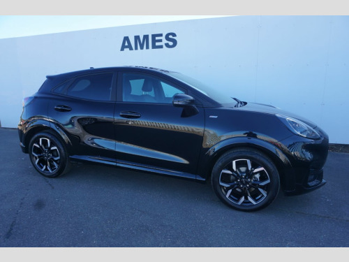 The Ford Puma ST-Line X 1.0L EcoBoost Hybrid MHEV (Mild Hybrid Electric Vehicle) is a stylish and efficient compact SUV that combines sporty design with advanced technology and practicality.Performance & EfficiencyEngine: 999cc 3-cylinder turbocharged petrol engine delivering 125 bhp and 210 Nm of torque.Transmission: 6-speed manual gearbox.0–62 mph: Approximately 9.8 seconds.Top Speed: 119 mph.Fuel Economy: WLTP combined figure of 52.3 mpg.CO₂ Emissions: 122 g/km. Top Gear+1Leasing.com+1What Car?+5What Car?+5Lookers Motor Group+5leasing.trustford.co.uk+5Top Gear+5Lookers Motor Group+5What Car?+2leasing.trustford.co.uk+2Lookers Motor Group+2Dimensions & PracticalityLength: 4,186 mmWidth (including mirrors): 1,930 mmHeight: 1,550 mmWheelbase: 2,588 mmBoot Capacity: 456 litres with seats up, expanding to 1,216 litres when seats are folded down.Towing Capacity: Up to 1,100 kg (braked). Leasing.com+2Top Gear+2Top Gear+2Leasing.com+2Top Gear+2Top Gear+2Leasing.com+1Top Gear+1Interior & FeaturesSeating: 5 seats with ST-Line X premium synthetic leather upholstery.Infotainment: 12" landscape touchscreen with Ford SYNC4, Apple CarPlay, Android Auto, and a premium B&O audio system with 10 speakers.Climate Control: Electronic Automatic Temperature Control (EATC).Additional Features: Ford Megabox extended boot space, centre console with armrest and stowage, and power start button. What Car?+3Leasing.com+3leasing.trustford.co.uk+3leasing.trustford.co.uk+2Lookers Motor Group+2Leasing.com+2Exterior & StylingWheels: 18" Absolute Black machined finish alloy wheels.Lighting: LED projector headlamps, LED daytime running lights, and LED rear lamps.Styling: ST-Line body styling kit with unique grille, large body colour rear roof spoiler, and rear privacy glass.Convenience: Power-foldable heated door mirrors with puddle lamps and Puma logo protection. leasing.trustford.co.uk+3Leasing.com+3Lookers Motor Group+3Lookers Motor Group+1Leasing.com+1Safety & Driver AssistanceSafety Features: Pre-collision assist with autonomous emergency braking, lane keeping aid with lane departure warning, and rear camera with rear parking sensors.Driver Aids: Cruise control with intelligent speed assist, driver impairment monitor, and speed sign recognition.Security: Thatcham alarm and tyre pressure monitoring system (TPMS). Lookers Motor Group+2Leasing.com+2leasing.trustford.co.uk+2Warranty & MaintenanceManufacturer's Warranty: 3 years or 60,000 miles.Corrosion Perforation Guarantee: 12 years.Service Interval: Every 18,000 miles or 24 months. The Ford Puma ST-Line X 1.0L EcoBoost Hybrid MHEV offers a compelling blend of performance, efficiency, and advanced features, making it a strong contender in the compact SUV segment.Sources
