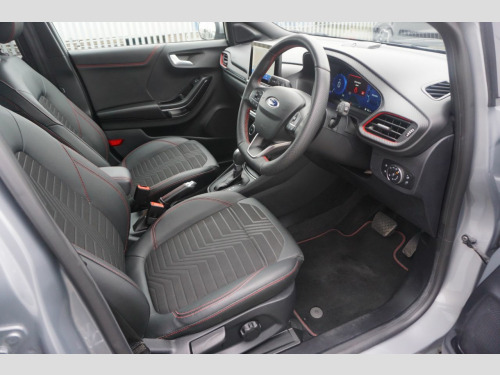 Ford Puma ST-Line X Auto 1.0L EcoBoost mHEV PetrolSporty, efficient, and packed with premium features, the Ford Puma ST-Line X blends dynamic design with advanced mild-hybrid efficiency. Powered by a responsive 1.0-litre EcoBoost petrol engine paired with a 7-speed automatic transmission, this Mild Hybrid Electric Vehicle (MHEV) enhances performance while optimizing fuel economy.The ST-Line X trim brings a bold, athletic edge with sporty body styling, a rear spoiler, and striking 18" alloy wheels. Inside, enjoy a high-quality cabin featuring partial Sensico leather sports seats, a 12.3" digital instrument cluster, and SYNC 3 infotainment with an 8" touchscreen, and built-in sat nav.Additional features include:parking sensorsKeyless entry & startAutomatic headlights & rain-sensing wipersWireless phone chargingB&O Premium Sound System (available on some models)With its elevated driving position, nimble handling, and smart storage solutions like the innovative Ford MegaBox, the Ford Puma ST-Line X is a versatile and fun-to-drive compact SUV that’s ideal for both city cruising and weekend adventures.