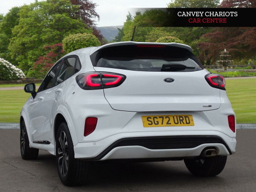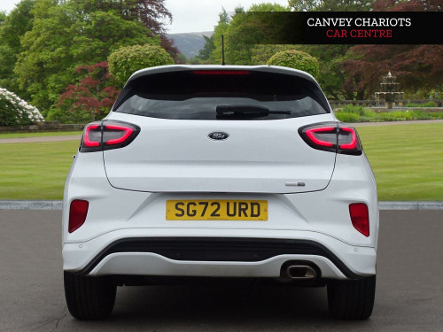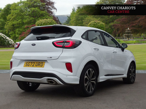 With only one previous owner, this 2022 Ford Puma is a great option for those seeking a stylish and efficient vehicle. As part of the ST-Line trim, this Puma T ST-Line combines sporty aesthetics with practical features. The vehicle is equipped with a 1.0L Petrol Hybrid engine and complies with Euro 6 emission standards.Inside, you'll find Ford SYNC 3 Navigation, complete with Android Auto, Apple CarPlay, and Bluetooth connectivity, making every journey connected and entertaining. Manoeuvring is made easier with rear parking sensors, including parking assistance. The manual air conditioning ensures a comfortable cabin environment. The Puma stands out with its fuel economy of 52 mpg, meaning fewer trips to the petrol station. It also boasts low CO2 emissions, making it a more environmentally conscious choice.. 17in Alloy Wheels - 5x2 Spoke - Black Machined Finish, ABS - Anti-lock Braking System, Acoustic Laminated Windscreen, Active Grille Shutter, Automatic Dimming Rear View Mirror, Automatic Headlights with Rain-Sensing Wipers and Auto High Beam, Centre Console - Premium with Openable Stowage Area with USB Connectivity - 2 Cupholders and 12v Power Point, Courtesy Lights - Ambient LED Courtesy Lighting - Single Colour, Cruise Control - Lane Keeping Aid and Lane Departure Warning, Driver Assistance Pack - Design, Drivers Manual 4-Way Seat Adjustment with Manual Lumbar Adjust, ESC - Electronic Stability Control and Hill Start Assist, Ecoboost Hybrid Tailgate Badge, Electric Windows - Front and Rear, Emergency Brake Warning - Automatic Hazard Warning Lights, First Aid Kit Strap, Floor Mats - Front and Rear, Ford MegaBox Extended Bootspace, Ford Power Starter Button, Ford SYNC 3 Navigation, Front Bumper - Unique ST-Line Sport Design - Body Colour, Front Fog Lights with Cornering lights and LED Rear Lamps, Full Digital 12.3in Instrument Cluster, Gear Knob - Aluminium, Handbrake - Black Sensico Trimmed with Stitching, Headliner - Deluxe, Instrument Panel - High Level, Intelligent Speed Assistance, Large Rear Spoiler - Body Colour with Centre High Mounted Stop Light, Locking Wheel Nuts, Lower Bodyside Moulding - Body Colour, Manual Air Conditioning, Passengers Seat - 2-Way, Post Collision Braking, Power Steering, Power-Foldable Heated Door Mirrors with Puddle Lamps, Pre-Collision Assist with Autonomous Emergency Braking and Pedestrian-Cyclist Detection, Projector Headlamps with LED Daytime Running Lights, Puma Badge, Quickclear Heated Windscreen, Rear Bumper Body Colour - Diffuser, Rear Parking Sensors, Rear Seats - 2-Way Head Restraint Up-Down, Rear Seats - Second Row 60-40 Folding Seats, Remote Central-Double Locking, Restrain Device Pack, ST-Line Badge, ST-Line Body Styling Kit, ST-Line Flat-Bottomed Leather Steering Wheel with Unique Red Stitching, Selectable Driving Modes - Normal - Eco - Sport - Slippery and Trail, Soft-feel Gearshift Boot with Red Stitching, Speed Limiter, Sports Suspension, Tailgate - Manual, Thatcham Alarm, Traction Control and Emergency Braking Assistance, Trip-Fuel Computer, Tyre Pressure Monitoring System - TPMS.