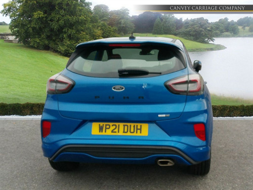 This 2021 Ford Puma ST Line is a superb example, having been owned by just one careful keeper since new. This stylish compact SUV boasts a responsive 1.0 litre petrol engine and meets the Euro 6 emission standards. Inside, you'll find the intuitive Ford SYNC 3 Navigation system, complete with Android Auto and Apple CarPlay for seamless smartphone integration, alongside Bluetooth connectivity. Comfort is assured with manual air conditioning, and convenience is enhanced by wireless phone charging and rear parking sensors to aid manoeuvring. The Ford Puma ST Line offers an engaging driving experience, achieving 0 to 62 miles per hour in just 8.9 seconds. Its impressive fuel economy of 51 miles per gallon highlights its efficiency, making it a cost effective choice for your journeys. Furthermore, its low CO2 emissions demonstrate a commitment to reduced environmental impact, setting it apart from many other vehicles in its class. 17in Alloy Wheels - 5x2 Spoke - Black Machined Finish,ABS - Anti-lock Braking System,Acoustic Laminated Windscreen,Active Grille Shutter,Alloy Sports Pedals,Automatic Headlights with Rain-Sensing Wipers and Auto High Beam,Centre Console with Armrest - Stowage,Courtesy Lights - Ambient LED Courtesy Lighting - Single Colour,Cruise Control - Lane Keeping Aid and Lane Departure Warning,Driver Seat Lumbar and Height Adjustment,EBA - Emergency Brake Assist,ESC - Electronic Stability Control and Hill Start Assist,Electric Windows - Front and Rear,Floor Mats - Front and Rear,Ford Easy Fuel System,Ford MegaBox Extended Bootspace,Ford SYNC 3 Navigation,Front Bumper - Unique ST-Line Sport Design - Body Colour,Front Fog Lights with Cornering lights and LED Rear Lamps,Full Digital 12.3in Instrument Cluster,Headliner - Deluxe,Instrument Panel - High Level,Locking Wheel Nuts,Lower Bodyside Moulding - Body Colour,Manual Air Conditioning,Post Collision Braking,Power Steering,Power-Foldable Heated Door Mirrors with Puddle Lamps,Pre-Collision Assist with Autonomous Emergency Braking and Pedestrian-Cyclist Detection,Projector Headlamps with LED Daytime Running Lights,Puma Badge,Quickclear Heated Windscreen,Rear Bumper Body Colour - Diffuser,Rear Parking Sensors,Rear Seats - 2-Way Head Restraint Up-Down,Rear Seats - Second Row 60-40 Folding Seats,Restrain Device Pack,ST-Line Badge,ST-Line Bodykit with Large Rear Spoiler and Sports Suspension,ST-Lined Flat-Bottomed Leather Steering Wheel - Leather Handbrake and Aluminium Gear Knob,Selectable Driving Modes - Normal - Eco - Sport - Slippery and Trail,Speed Limiter,Thatcham Alarm,Traction Control - TC,Trip-Fuel Computer,Tyre Inflation Kit,Tyre Pressure Monitoring System - TPMS,Tyre Repair Kit,Wireless Charging,Cloth - Ebony with Red Stitching