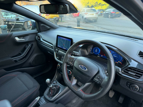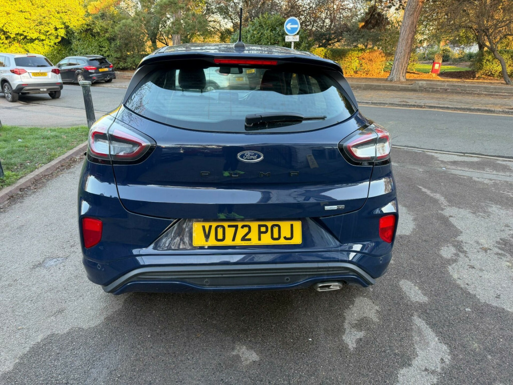 This 2022 Ford Puma ST Line offers the peace of mind that comes with having had only one owner from new. And serviced by the Ford dealer This stylish compact SUV features a responsive 1.0L Petrol Hybrid engine, meeting Euro 6 emission standards. Inside, you'll find the Ford SYNC 3 Navigation system, complete with Android Auto and Apple CarPlay for seamless smartphone integration, alongside Bluetooth connectivity. For your comfort, it includes manual air conditioning, and parking is made easier with rear parking sensors. The Driver Assistance Pack adds convenience, including automatic headlights.maintained at the Ford main dealerExperience impressive efficiency with a highlighted fuel economy of 51 miles per gallon, demonstrating its advantage over similar vehicles. This Ford Puma also boasts low CO2 emissions, contributing to its economical running costs. Its performance is equally noteworthy, achieving 0 to 62 miles per hour in just 8.9 seconds, a figure that sets it apart from many other cars in its class. in alloy wheels - 5x2 spoke - black machined finish, abs - anti-lock braking system, acoustic laminated windscreen, active grille shutter, automatic dimming rear view mirror, automatic headlights with rain-sensing wipers and auto high beam, centre console - premium with openable stowage area with usb connectivity - 2 cupholders and 12v power point, courtesy lights - ambient led courtesy lighting - single colour, cruise control - lane keeping aid and lane departure warning, driver assistance pack - design, drivers manual 4-way seat adjustment with manual lumbar adjust, esc - electronic stability control and hill start assist, ecoboost hybrid tailgate badge, electric windows - front and rear, emergency brake warning - automatic hazard warning lights, first aid kit strap, floor mats - front and rear, ford megabox extended bootspace, ford power starter button, ford sync 3 navigation, front bumper - unique st-line sport design - body colour, front fog lights with cornering lights and led rear lamps, full digital 12.3in instrument cluster, gear knob - aluminium, handbrake - black sensico trimmed with stitching, headliner - deluxe, instrument panel - high level, intelligent speed assistance, large rear spoiler - body colour with centre high mounted stop light, locking wheel nuts, lower bodyside moulding - body colour, manual air conditioning, passengers seat - 2-way, post collision braking, power steering, power-foldable heated door mirrors with puddle lamps, pre-collision assist with autonomous emergency braking and pedestrian-cyclist detection, projector headlamps with led daytime running lights, puma badge, quickclear heated windscreen, rear bumper body colour - diffuser, rear parking sensors, rear seats - 2-way head restraint up-down, rear seats - second row 60-40 folding seats, remote central-double locking, restrain device pack, st-line badge, st-line body styling kit, st-line flat-bottomed leather steering wheel with unique red stitching, selectable driving modes - normal - eco - sport - slippery and trail, soft-feel gearshift boot with red stitching, speed limiter, sports suspension, tailgate - manual, thatcham alarm, traction control and emergency braking assistance, trip-fuel computer, tyre pressure monitoring system - tpms