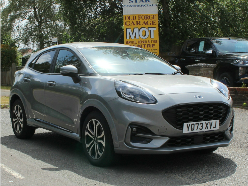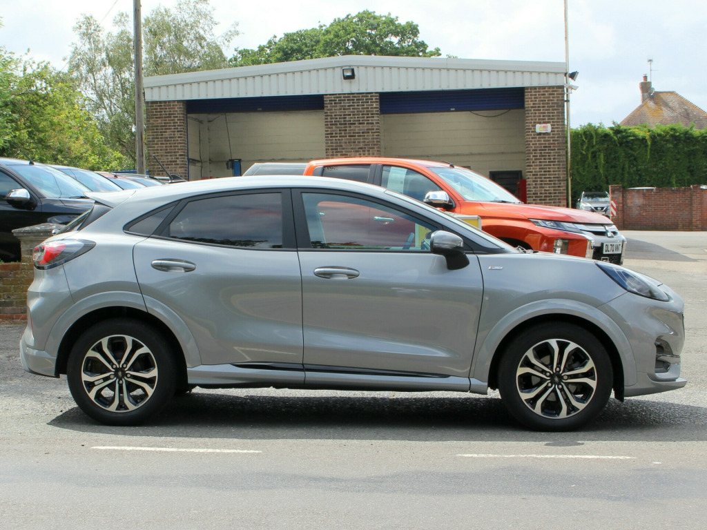 This 2024 Ford Puma 1.0T EcoBoost MHEV ST-Line SUV with only 4592 miles on the clock is the perfect combination of style and efficiency. Powered by a Petrol Hybrid engine, this 5-door, 5-seater SUV is not only ULEZ compliant but also comes with features like Privacy Glass, Solar Silver exterior, and Cloth Black with Red Stitching interiors. The 17-inch Alloy Wheels in a Black Machined Finish add a sporty touch while the ABS ensures safety on the road. This Euro 6 (s/s) compliant vehicle is perfect for those looking for a reliable and environmentally friendly SUV that doesn't compromise on style or performance., OPEN 7 DAYS A WEEK  -  A SELECTION OF UP TO 200 CARS AND VANS AVAILABLE. Click on dealer 'VISIT WEBSITE' link for many more large photographs of this car. We are a West Sussex Trading Standards Approved 'Buy with Confidence Dealership'. in alloy wheels - 5x2 spoke - black machined finish, acoustic laminated windscreen, active grille shutter, ecoboost hybrid tailgate badge, electric windows - front and rear, front bumper - unique st-line sport design - body colour, large rear spoiler - body colour with centre high mounted stop light, locking wheel nuts, lower bodyside moulding - body colour, power-foldable heated door mirrors with puddle lamps, puma badge, quickclear heated windscreen, rear bumper body colour - diffuser, st-line badge, st-line body styling kit, tailgate - manual, tyre inflation kit, abs - anti-lock braking system, esc - electronic stability control and hill start assist, emergency brake warning - automatic hazard warning lights, first aid kit strap, lane keeping aid with lane departure warning, post collision braking, remote central-double locking, thatcham alarm, traction control and emergency braking assistance, automatic dimming rear view mirror, centre console - premium with openable  stowage area with usb connectivity - 2 cupholders and 12v power point, courtesy lights - ambient led courtesy lighting - single colour, drivers manual 4-way seat adjustment with manual lumbar adjust, ford megabox extended bootspace, ford power starter button, front floor mats, front seats - sports style, full digital 12.3in instrument cluster, handbrake - black sensico trimmed with stitching, headliner - deluxe, instrument panel - high level, manual air conditioning, passengers seat - 2-way, rear seats - 2-way head restraint up-down, rear seats - second row 60-40 folding seats, restrain device pack, st-line flat-bottomed leather steering wheel with unique red stitching, soft-feel gearshift boot with red stitching, automatic headlights with rain-sensing wipers and auto high beam, front fog lights, led rear lights, projector headlamps with led daytime running lights, cruise control with intelligent speed assist, intelligent speed assistance, power steering, pre-collision assist with autonomous emergency braking and pedestrian-cyclist detection, rear parking sensors, selectable driving modes - normal - eco - sport - slippery and trail, speed limiter, sports suspension, trip-fuel computer, tyre pressure monitoring system - tpms, ford sync 3 navigation