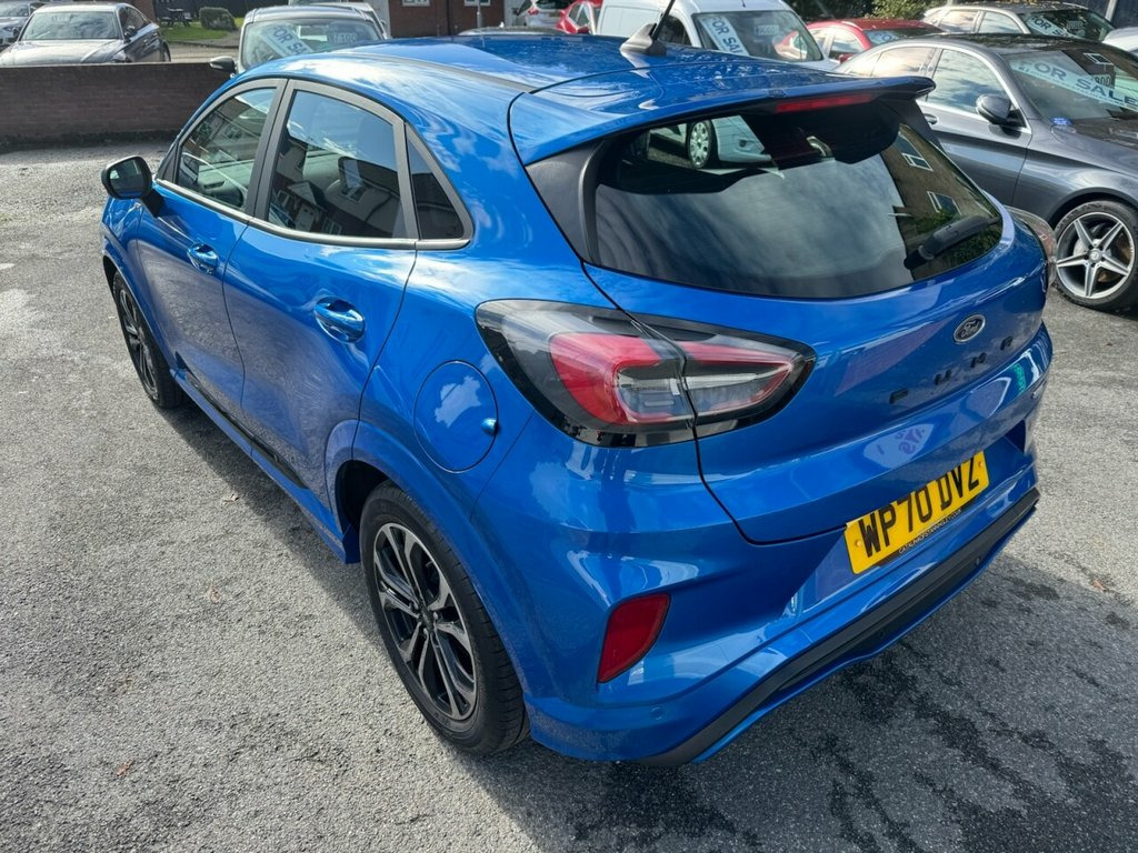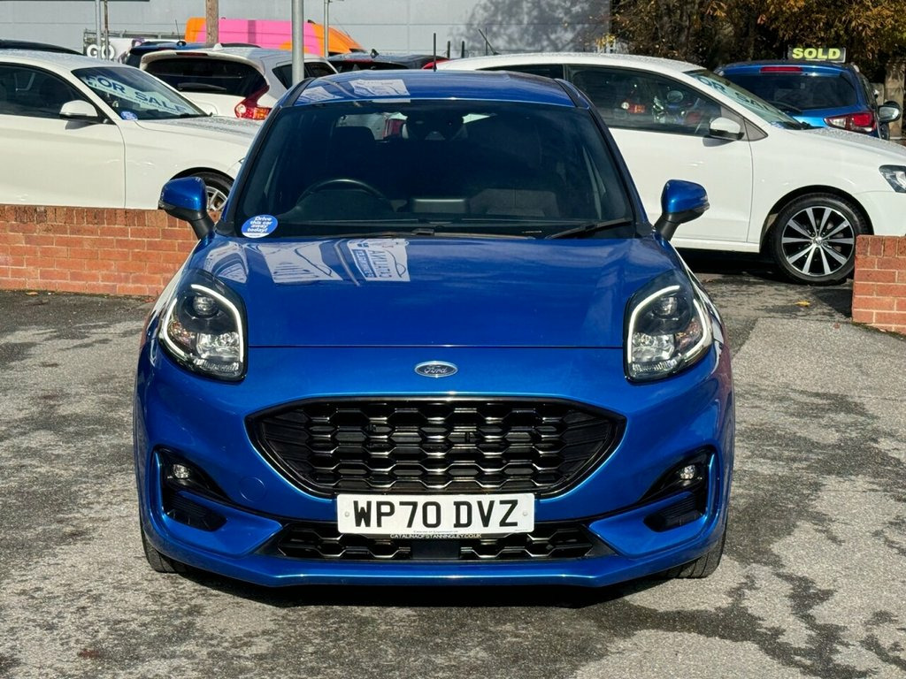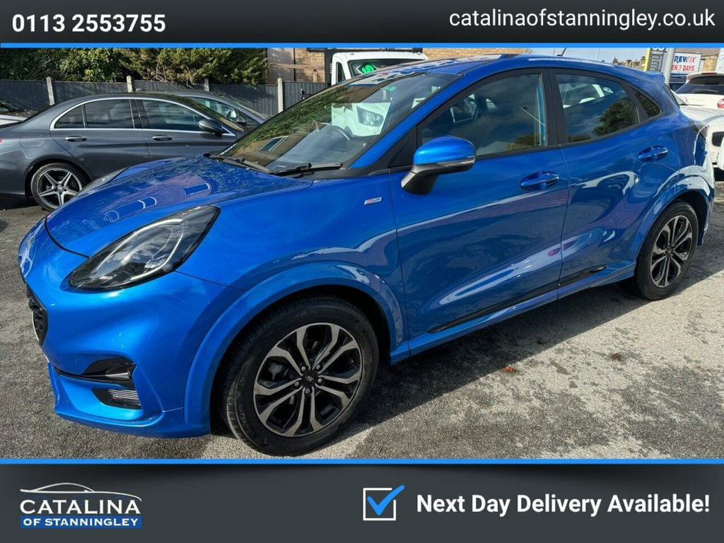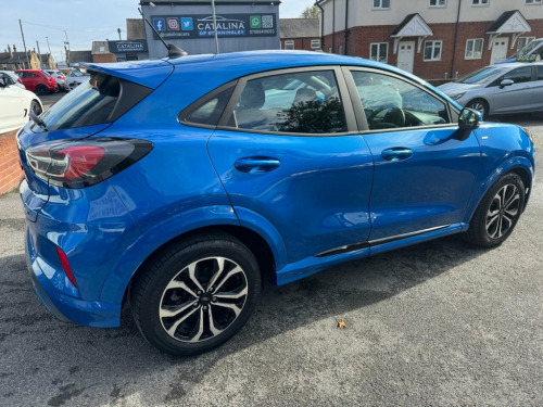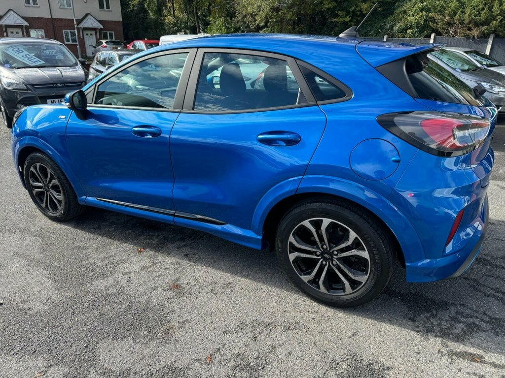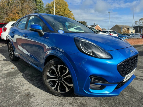 Ford Puma 1.0T EcoBoost MHEV ST-Line – Mild Hybrid | Great Spec | Long MOT Petrol | Manual | Euro 6 | 155 PS | 74,904 Miles | MOT Until 19-10-2026 This Ford Puma 1.0T EcoBoost MHEV ST-Line is a stylish and efficient mild-hybrid SUV that perfectly blends performance, economy, and practicality. With just 74,904 miles from new and two owners, it has been maintained with five services up to 74k, ensuring reliable performance and smooth running. Powered by Ford's award-winning 1.0-litre EcoBoost MHEV petrol engine, producing 155 PS, it delivers lively performance with impressive fuel efficiency thanks to its mild-hybrid system. The ST-Line trim adds sporty styling and handling refinement. Inside, you'll find a modern, tech-filled cabin with sat nav, Bluetooth connectivity, Apple CarPlay, parking assistance, and alloy wheels, all contributing to an enjoyable and connected driving experience. Finished in metallic blue with a dark interior, this Puma looks as good as it drives. A fantastic, well-maintained hybrid SUV with a long MOT until October 2026 and a great mix of efficiency, comfort, and sporty design 17in Alloy Wheels - 5x2 Spoke - Black Ma, ABS - Anti-lock Braking System, Acoustic Laminated Windscreen, Active Grille Shutter, Automatic Dimming Rear View Mirror, Automatic Headlights with Rain-Sensing W, Centre Console with Armrest - Stowage, Courtesy Lights - Ambient LED Courtesy L, Cruise Control - Lane Keeping Aid and La, Driver Seat Lumbar and Height Adjustment, Electric Windows - Front and Rear, Electronic Stability Control - ESC with , Emergency Brake Warning - Automatic Haza, First Aid Kit Strap, Floor Mats - Front and Rear, Ford Easy Fuel System, Ford MegaBox Extended Bootspace, Ford Power Starter Button, Ford SYNC 3 Navigation, Front Bumper - Unique ST-Line Sport Desi, Front Door
