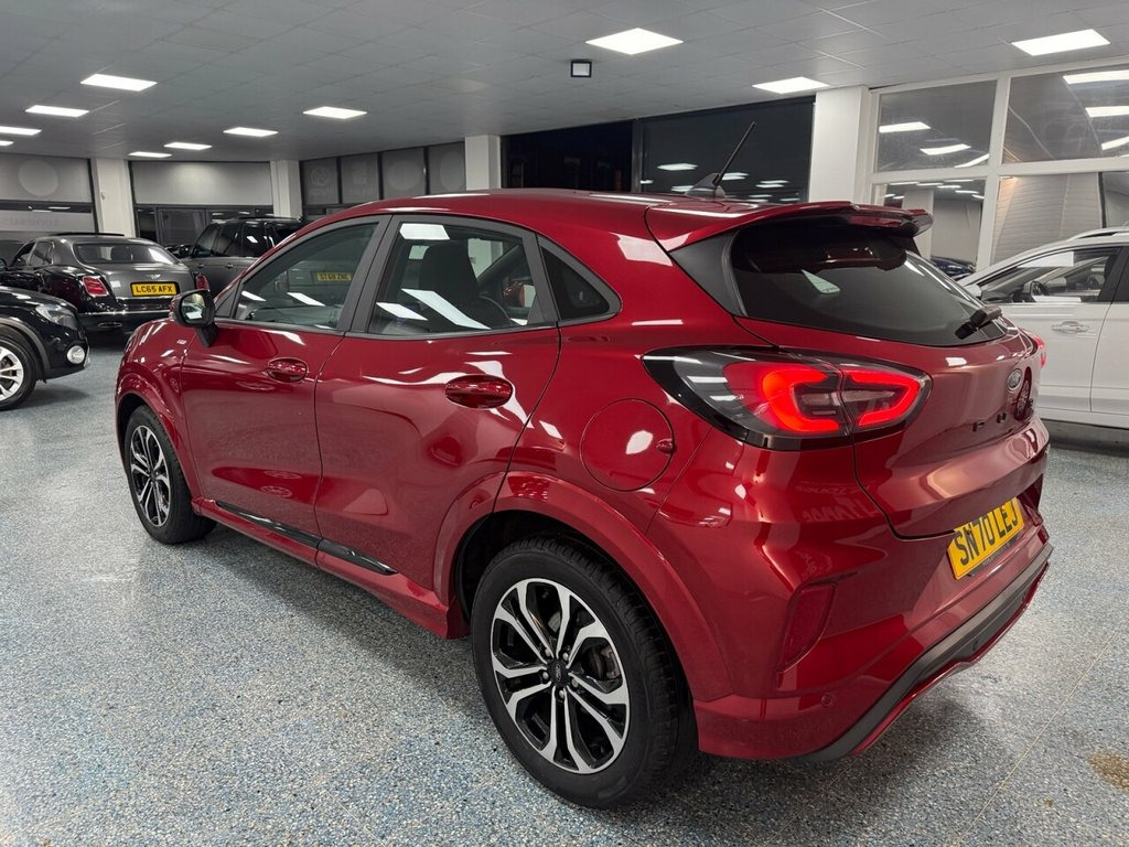 Discover this 2020 Ford Puma ST Line, a stylish and efficient compact SUV that's ready for your next adventure. This particular model boasts a 1.0 litre petrol engine and meets Euro 6 emission standards, ensuring a responsible drive. As an ST Line trim, it offers a sporty aesthetic combined with practical everyday usability, making it a compelling choice for those seeking both form and function in their vehicle. With an impressive fuel economy of 52 miles per gallon, this Ford Puma ST Line demonstrates excellent efficiency, outperforming many similar vehicles on the market. Its low CO2 emissions further contribute to its appeal, offering a more environmentally conscious driving experience. This combination of performance, economy, and responsible emissions makes the 2020 Ford Puma ST Line a standout option. Privacy Glass, Fantastic Red, 17in Alloy Wheels - 5x2 Spoke - Black Ma, ABS - Anti-lock Braking System, Acoustic Laminated Windscreen, Active Grille Shutter, Automatic Dimming Rear View Mirror, Automatic Headlights with Rain-Sensing W, Centre Console with Armrest - Stowage, Courtesy Lights - Ambient LED Courtesy L, Cruise Control - Lane Keeping Aid and La, Driver Seat Lumbar and Height Adjustment, Electric Windows - Front and Rear, Electronic Stability Control - ESC with , Emergency Brake Warning - Automatic Haza, First Aid Kit Strap, Floor Mats - Front and Rear, Ford Easy Fuel System, Ford MegaBox Extended Bootspace, Ford Power Starter Button, Ford SYNC 3 Navigation, Front Bumper - Unique S