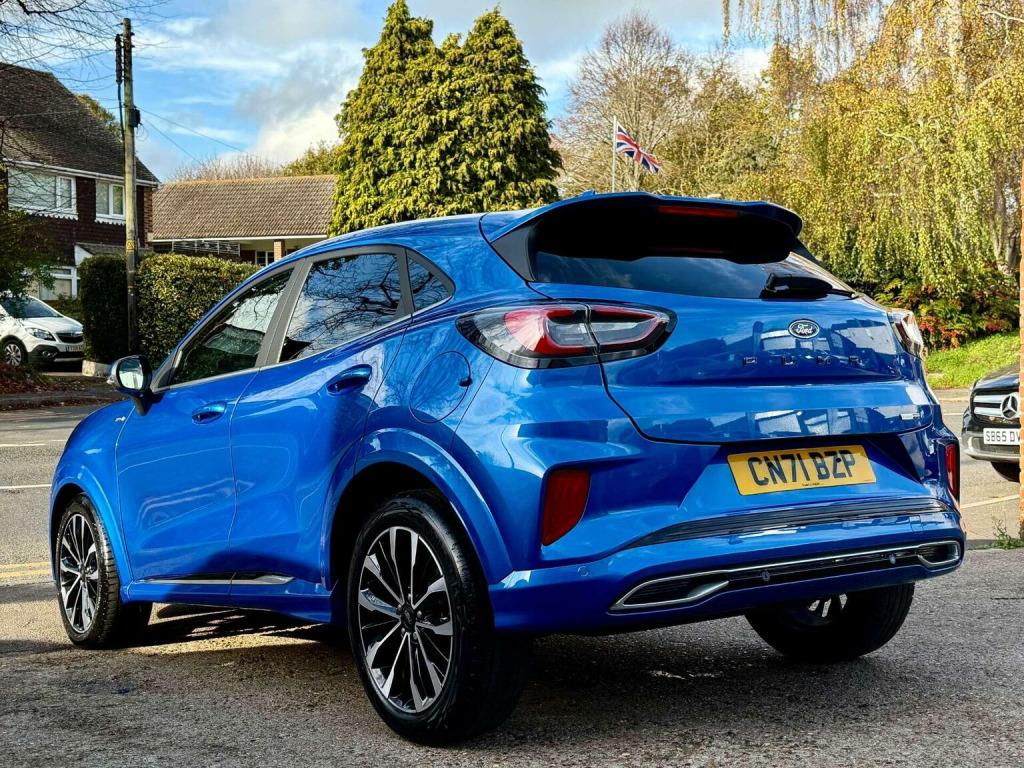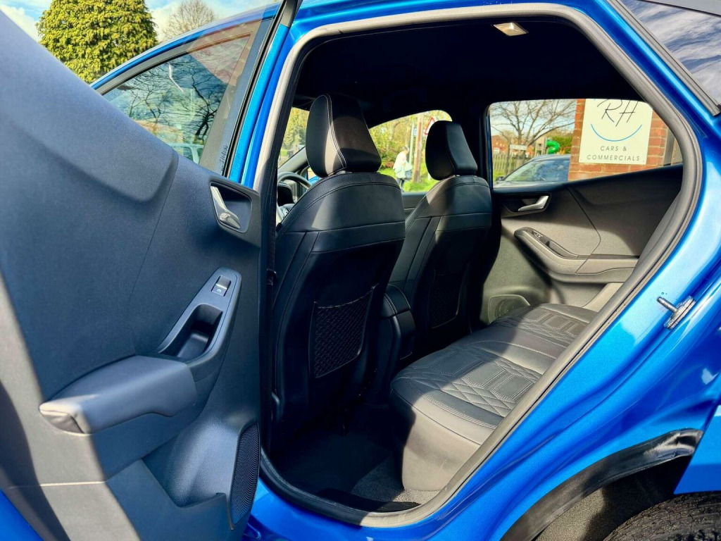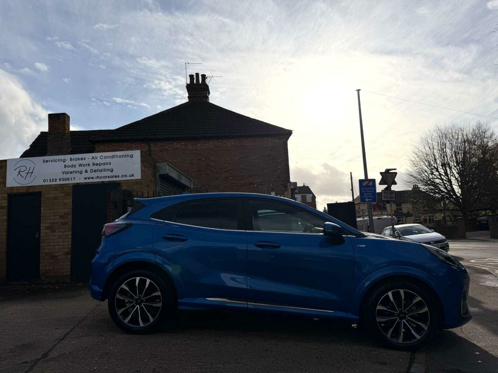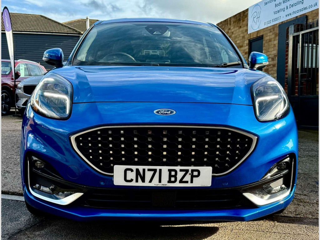 Introducing the stunning Ford Puma 1.0 Puma ST-Line Vignale MHEV Auto 5dr in a sleek Blue finish. With only 16971 miles on the clock and 2 owners from new owners. This car is in impeccable condition. Massive spec! Desert Island Blue paint, heated, seats, massaging seats, heated steering wheel, cruise control, Bang & Olufsen Sound System, front and rear parking sensors, and 19 inch diamond cut alloys. Serviced by Ford at 9k and 15k on the 18th of August 2025 (15851), Experience luxury and style with the Vignale trim, offering a touch of sophistication to your driving experience. The Desert Island Blue colour adds a touch of uniqueness to this already impressive vehicle. Dont miss out on the opportunity to own this exceptional Ford Puma. Contact us today to schedule a test drive and make this beauty yours.