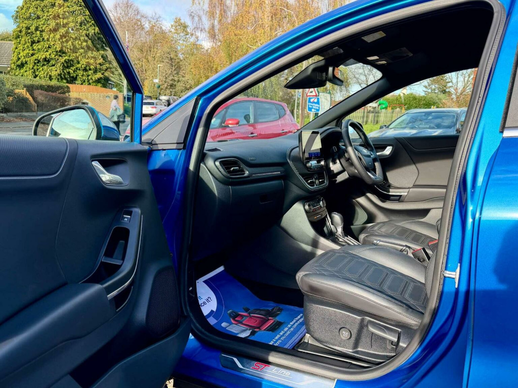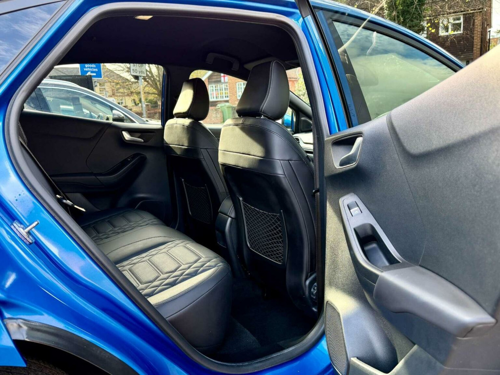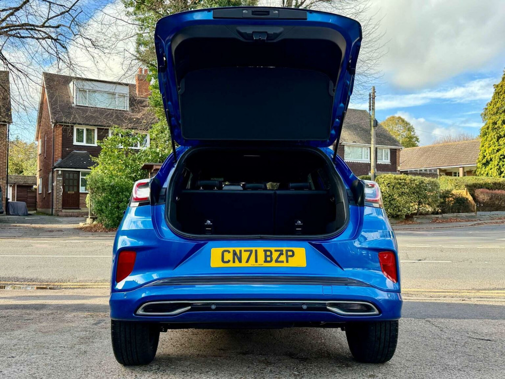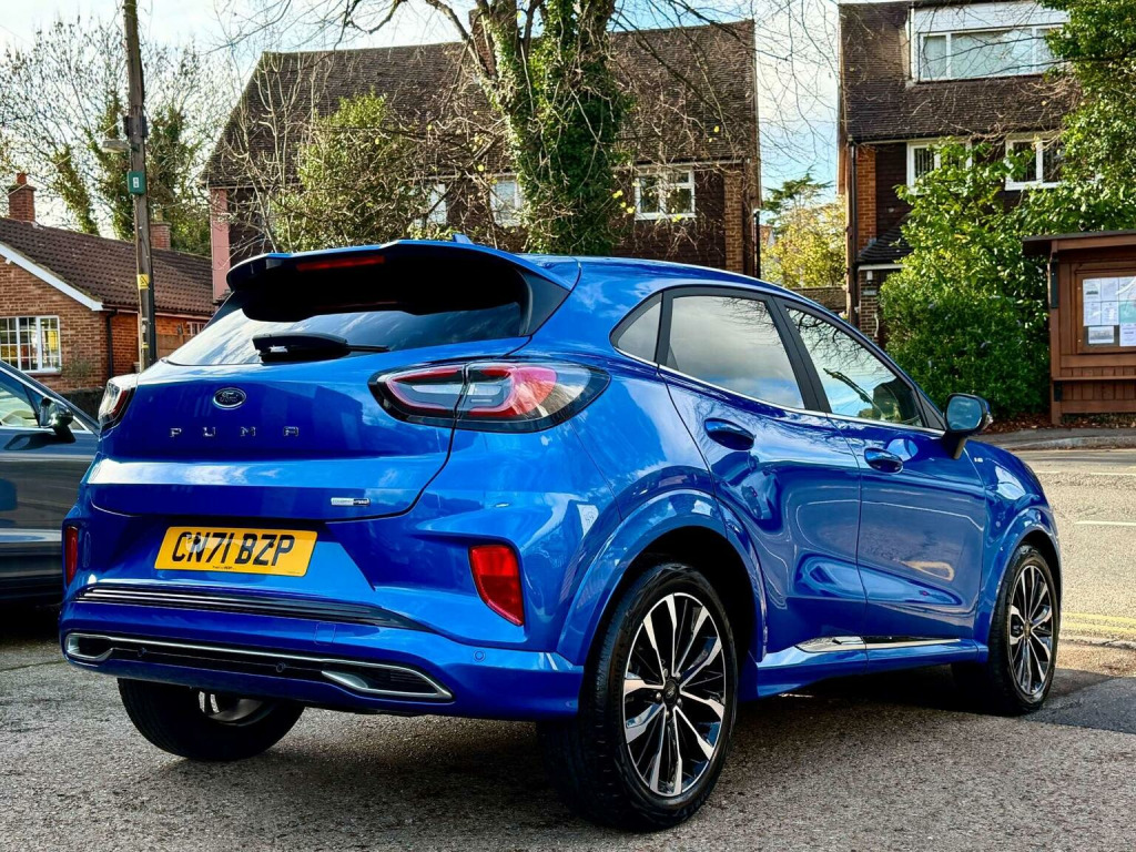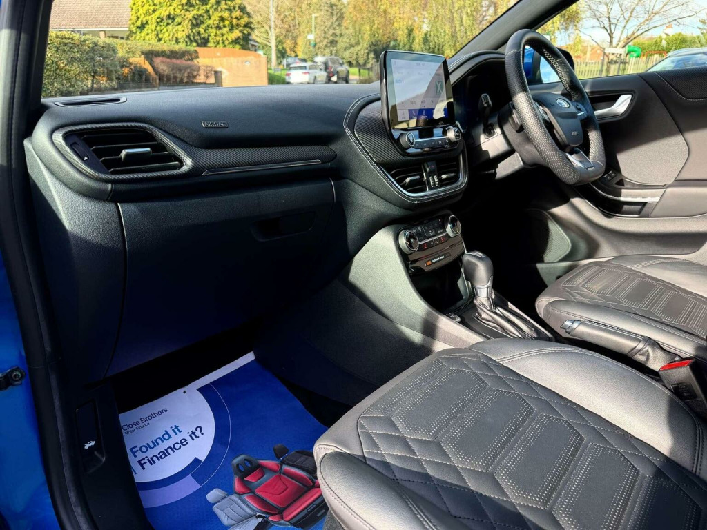 Introducing the stunning Ford Puma 1.0 Puma ST-Line Vignale MHEV Auto 5dr in a sleek Blue finish. With only 16971 miles on the clock and 2 owners from new owners. This car is in impeccable condition. Massive spec! Desert Island Blue paint, heated, seats, massaging seats, heated steering wheel, cruise control, Bang & Olufsen Sound System, front and rear parking sensors, and 19 inch diamond cut alloys. Serviced by Ford at 9k and 15k on the 18th of August 2025 (15851), Experience luxury and style with the Vignale trim, offering a touch of sophistication to your driving experience. The Desert Island Blue colour adds a touch of uniqueness to this already impressive vehicle. Dont miss out on the opportunity to own this exceptional Ford Puma. Contact us today to schedule a test drive and make this beauty yours.