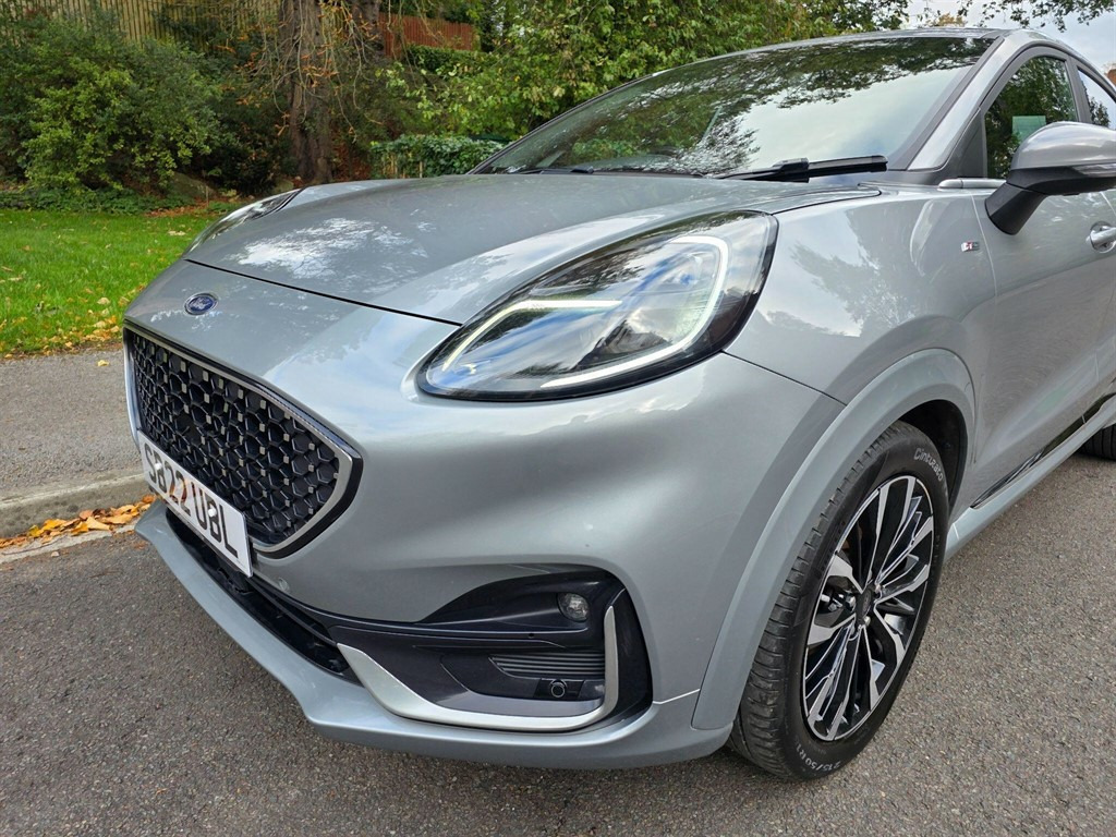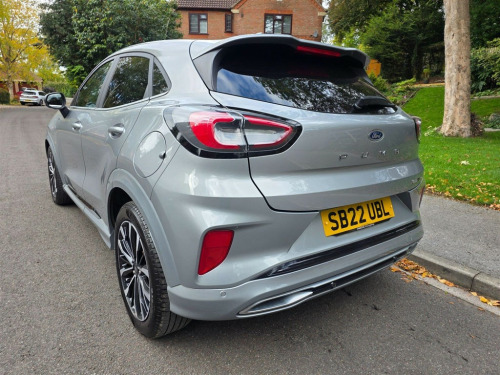 This 2022 Ford Puma ST-Line Vignale offers exceptional provenance, having been owned by just one person and boasting a clear vehicle history check. This stylish compact SUV is powered by an efficient 1.0L Petrol Hybrid engine, meeting Euro 6 emission standards. You can drive with confidence knowing it comes with a 12 month MOT provided on purchase. Inside, you'll find a host of premium features designed for comfort and convenience, including a Wireless Charging Pad with Electronic Air Temperature Control, a B&O Premium Audio System integrated with Ford SYNC 3 Navigation supporting Android Auto and Apple CarPlay, and the Ford KeyFree System for effortless keyless entry. The Heated Steering Wheel ensures comfort on colder days, while Rear Parking Sensors make manoeuvring a breeze.  Experience impressive performance with this Ford Puma, achieving 0-62mph in just 8.9 seconds. Its fuel economy is a standout feature, delivering an excellent 51 mpg, and it also benefits from low CO2 emissions, making it a more environmentally conscious choice compared to similar vehicles. These highlights demonstrate how this particular Puma ST-Line Vignale offers a superior driving experience and value. Quickclear Heated Windscreen,B&O Premium Audio System and Ford SYNC 3 Navigation,Cruise Control with Intelligent Speed Assist,Rear Parking Sensors,Wireless Charging Pad with Electronic Air Temperature Control EATC,Ford MegaBox Extended Bootspace,18in Alloy Wheels - Unique 5x2-Spoke - ST-Line Vignale,Cruise Control - Lane Keeping Aid and Lane Departure Warning,Ford KeyFree System,Ford Power Starter Button,Heated Front Seats,Heated Steering Wheel,Lumbar Massage Seats - Driver and Passenger,Power-Foldable Heated Door Mirrors with Puddle Lamps and Puma Logo Projection,Rear Bumper - ST Line Vignale Body Colour with Special Masking,Premium Sensico - Black with Metal Grey Stitching