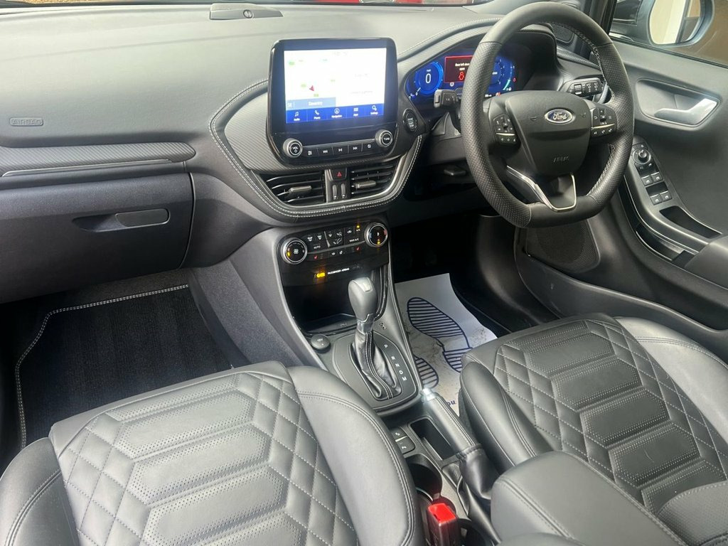 Elevate your drive with the ultimate fusion of sporty style and luxurious comfort. Experience the pinnacle of the Ford Puma lineup with the ST-Line Vignale edition. This top-tier compact SUV combines the athletic looks and dynamic handling of the ST-Line with the sophisticated, premium features of the Vignale trim. Its potent yet efficient 1.0-litre EcoBoost mild-hybrid (MHEV) engine delivers a lively performance while keeping running costs down. 2 Owners from new we'll complete the first Service ready for your next adventure... The specification includes Heated Leather front Seats, Heated Steering Wheel, Quick Clear Windscreen, Self Park, Satellite Navigation, Cruise Control, 18" Diamond Turned Alloys, Voice Control, Paddleshift 7 Speed Automatic Gearbox. 18in Alloy Wheels - Unique 5x2-Spoke - S, ABS - Anti-lock Braking System, Acoustic Laminated Windscreen, Active Grille Shutter, Automatic Dimming Rear View Mirror, Automatic Headlights with Rain-Sensing W, B&O Premium Audio System and Ford SY, Brighter Upper Door Frame Mouldings, Carbon-Look Interior Deco Spears, Centre Console - Premium with Openable S, Courtesy Lights - Ambient LED Courtesy L, Cruise Control with Intelligent Speed As, Drivers Manual 4-Way Seat Adjustment wit, ESC - Electronic Stability Control and H, Ecoboost Hybrid Tailgate Badge, Electric Windows - Front and Rear, Electronic Air Temperature Control - EAT, Emergency Brake Warning - Automatic Haza, First Aid Kit Strap,