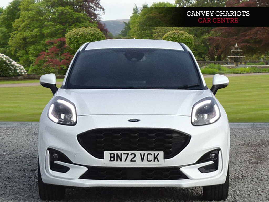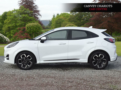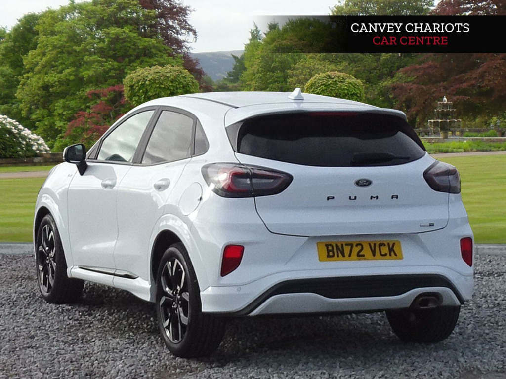 This 2022 Ford Puma ST-Line X is a superb example, having had only one owner since new. This stylish compact SUV features a responsive 1.0L Petrol Hybrid engine, meeting Euro 6 emission standards. Inside, you'll find a Wireless Charging Pad integrated with Electronic Air Temperature Control for effortless convenience, alongside a premium B&O Sound System and Ford SYNC 3 Navigation, compatible with both Android Auto and Apple CarPlay. The Driver Assistance Pack includes automatic headlights, and rear parking sensors with parking assistance make manoeuvring simple.Experience impressive performance with a 0-62mph acceleration time of just 8.9 seconds, a testament to its efficient hybrid technology. This Puma also boasts low CO2 emissions and an excellent fuel economy of 51 mpg, making it a more economical choice compared to many similar vehicles. These highlights demonstrate the advanced engineering and thoughtful design that set this Ford Puma apart.. 18in Alloy Wheels - 5-Spoke - Matt Black Machined Finish, ABS - Anti-lock Braking System, Acoustic Laminated Windscreen, Active Grille Shutter, Automatic Dimming Rear View Mirror, Automatic Headlights with Rain-Sensing Wipers and Auto High Beam, B&O Premium Audio System and Ford SYNC 3 Navigation, Carbon-Look Interior Deco Spears, Centre Console - Premium with Openable Stowage Area with USB Connectivity - 2 Cupholders and 12v Power Point, Courtesy Lights - Ambient LED Courtesy Lighting - Single Colour, Cruise Control - Lane Keeping Aid and Lane Departure Warning, Driver Assistance Pack - Design, Driver and Passenger Seat Lumbar and Height Adjustment, Drivers Manual 4-Way Seat Adjustment with Manual Lumbar Adjust, ESC - Electronic Stability Control and Hill Start Assist, Ecoboost Hybrid Tailgate Badge, Electric Windows - Front and Rear, Electronic Air Temperature Control - EATC, Emergency Brake Warning - Automatic Hazard Warning Lights, First Aid Kit Strap, Floor Mats - Front and Rear, Ford MegaBox Extended Bootspace, Ford Power Starter Button, Front Bumper - Unique ST-Line Sport Design - Body Colour, Front Fog Lights with Cornering lights and LED Rear Lamps, Full Digital 12.3in Instrument Cluster, Gear Knob - Aluminium, Handbrake - Black Sensico Trimmed with Stitching, Headliner - Deluxe, Instrument Panel - High Level, Intelligent Speed Assistance, Large Rear Spoiler - Body Colour with Centre High Mounted Stop Light, Locking Wheel Nuts, Lower Bodyside Moulding - Body Colour, Passenger 4-Way Seat with Lumbar Adjustment, Post Collision Braking, Power Steering, Power-Foldable Heated Door Mirrors with Puddle Lamps, Pre-Collision Assist with Autonomous Emergency Braking and Pedestrian-Cyclist Detection, Privacy Glass, Projector Headlamps with LED Daytime Running Lights, Puma Badge, Quickclear Heated Windscreen, Rear Bumper Body Colour - Diffuser, Rear Parking Sensors, Rear Seats - 2-Way Head Restraint Up-Down, Rear Seats - Second Row 60-40 Folding Seats, Remote Central-Double Locking, Restrain Device Pack, ST-Line Badge, ST-Line Body Styling Kit, ST-Line Flat-Bottomed Leather Steering Wheel with Unique Red Stitching, Selectable Driving Modes - Normal - Eco - Sport - Slippery and Trail, Soft-feel Gearshift Boot with Red Stitching, Speed Limiter, Sports Suspension, Tailgate - Manual, Thatcham Alarm, Traction Control and Emergency Braking Assistance, Trip-Fuel Computer, Tyre Pressure Monitoring System - TPMS, Wireless Charging Pad with Electronic Air Temperature Control EATC, Partial Premium Sensico - Black with Red Stitching.