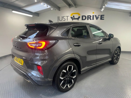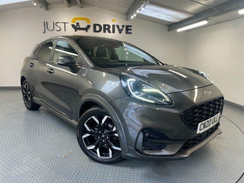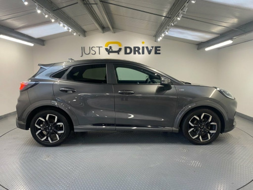 The Puma is fun to drive with a well-sorted chassis, cutting edge interior technology and very competitive fuel efficiency. The steering is sharp, the handling agile and it really is a standout compact SUV with an eye-catching design. It's finished in Magnetic Grey metallic and stands on clean 18" 2-tone alloy wheels. The striking exterior is complete with ST-Line bodystyling, rear privacy glass and high level spoiler. Inside you get more toys than Hamleys - there's part leather sports seats with red stitching detail and the centre of the dash has Ford's fantastic SYNC 3 media system with navigation, Bluetooth and DAB radio. The system also supports Apple CarPlay and Android Auto so music lovers are well catered for. The patented QuickClear heated windscreen is great for the Winter months, there's ice cold air conditioning for the warmer weather and reverse Park Pilot with audio alert together with a camera view make parking a breeze. Cruise, telephone and audio controls are easily accessed via the leather multi-function steering wheel. Powered by a lively 1.0 Ecoboost mild-hybrid engine there's a punchy 123 Bhp available and it's ULEZ compliant. 18in Alloy Wheels - 5-Spoke - Matt Black, ABS - Anti-lock Braking System, Acoustic Laminated Windscreen, Active Grille Shutter, Alloy Sports Pedals, Automatic Headlights with Rain-Sensing W, B&O Premium Audio System and Ford SY, Carbon-Look Interior Deco Spears, Centre Console with Armrest - Stowage, Courtesy Lights - Ambient LED Courtesy L, Cruise Control - Lane Keeping Aid and La, Driver Assistance Pack, Driver and Passenger Seat Lumbar and Hei, ESC - Electronic Stability Control and H, Electric Windows - Front and Rear, Electronic Air Temperature Control - EAT, Fixed LED Headlamps, Floor Mats - Front and Rear, Ford Easy Fuel System, Ford MegaBox Extended Bootspace, Front Bumper - Uniq