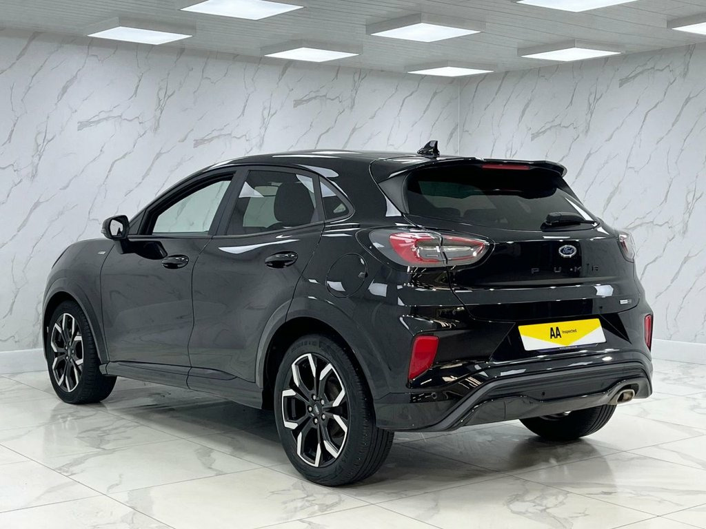 This 2022 Ford Puma ST Line X offers peace of mind with a clear vehicle history check and a 36 months warranty.  This stylish compact SUV is powered by an efficient 1.0L Petrol Hybrid engine, meeting Euro 6 emission standards.  Inside, you'll find a premium B&O Sound System integrated with Ford SYNC 3 Navigation, offering seamless connectivity through Android Auto and Apple CarPlay, alongside Bluetooth.  Enjoy a comfortable cabin environment with Electronic Air Temperature Control and convenient features like rear parking sensors for easier manoeuvring and a wireless charging pad for your compatible devices.  The Ford Puma ST Line X is designed to impress, boasting an impressive fuel economy of 52 mpg, which is a significant advantage over many similar vehicles. Its low CO2 emissions further highlight its efficiency and environmental consideration. This particular model comes with 12 months MOT provided on purchase, ensuring its roadworthiness. The combination of its advanced technology, hybrid powertrain, and excellent fuel efficiency makes this 2022 Ford Puma ST Line X a compelling choice for those seeking a modern and economical driving experience. Partial Premium Sensico - Black with Red, 18in Alloy Wheels - 5-Spoke - Matt Black, ABS - Anti-lock Braking System, Acoustic Laminated Windscreen, Active Grille Shutter, Automatic Dimming Rear View Mirror, Automatic Headlights with Rain-Sensing W, B&O Premium Audio System and Ford SY, Carbon-Look Interior Deco Spears, Centre Console - Premium with Openable S, Courtesy Lights - Ambient LED Courtesy L, Cruise Control with Intelligent Speed As, Drivers Manual 4-Way Seat Adjustment wit, ESC - Electronic Stability Control and H, Ecoboost Hybrid Tailgate Badge, Electric Windows - Front and Rear, Electronic Air Temperature Control - EAT, Emergency Brake Warning - Automatic Haza, First Aid Kit S