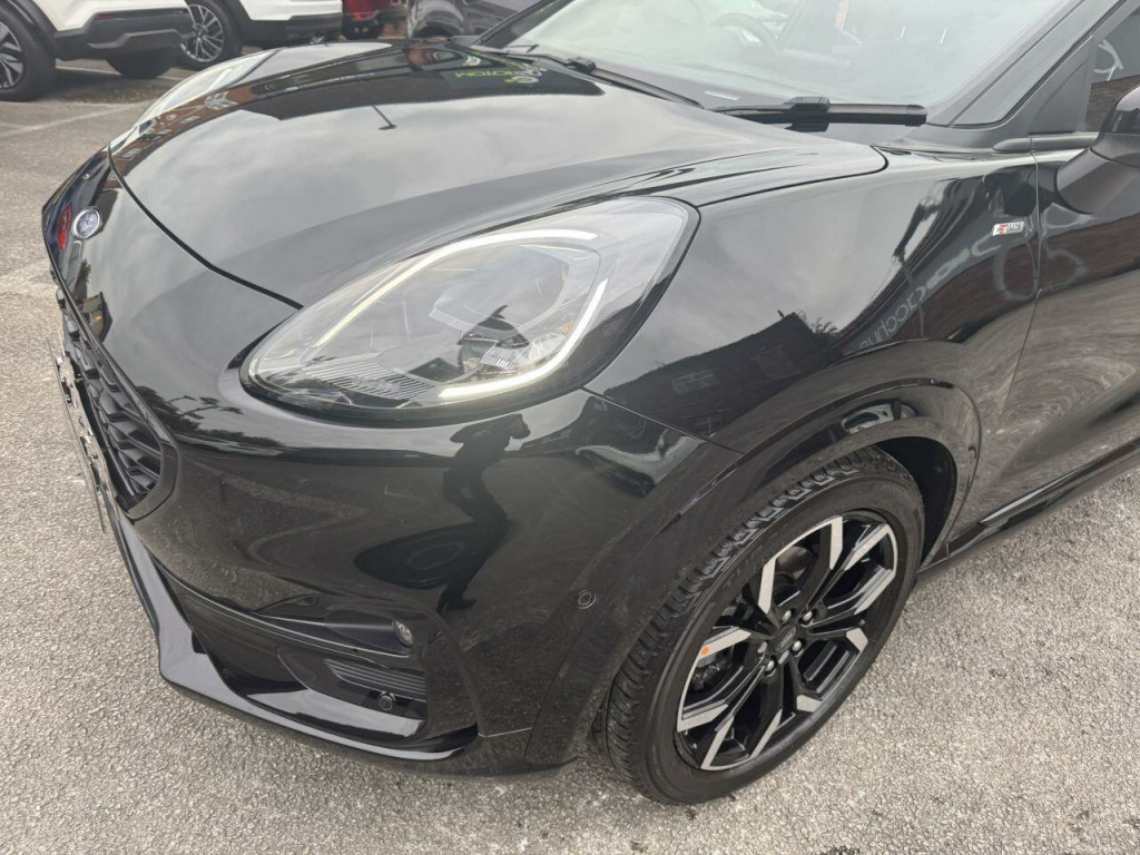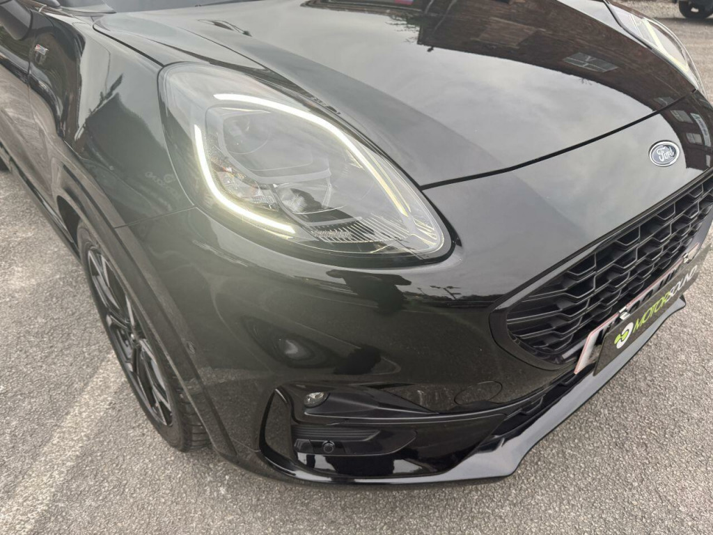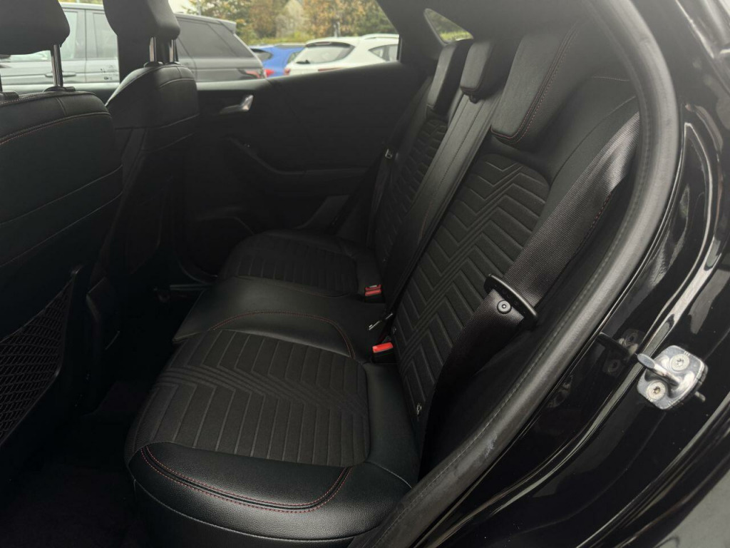. 18in Alloy Wheels - 5-Spoke - Matt Black Machined Finish, ABS - Anti-lock Braking System, Acoustic Laminated Windscreen, Active Grille Shutter, Automatic Dimming Rear View Mirror, Automatic Headlights with Rain-Sensing Wipers and Auto High Beam, B&O Premium Audio System and Ford SYNC 3 Navigation, Carbon-Look Interior Deco Spears, Centre Console - Premium with Openable Stowage Area with USB Connectivity - 2 Cupholders and 12v Power Point, Courtesy Lights - Ambient LED Courtesy Lighting - Single Colour, Cruise Control with Intelligent Speed Assist, Drivers Manual 4-Way Seat Adjustment with Manual Lumbar Adjust, Ecoboost Hybrid Tailgate Badge, Electric Windows - Front and Rear, Electronic Air Temperature Control - EATC, Emergency Brake Warning - Automatic Hazard Warning Lights, ESC - Electronic Stability Control and Hill Start Assist, First Aid Kit Strap, Ford MegaBox Extended Bootspace, Ford Power Starter Button, Front Bumper - Unique ST-Line Sport Design - Body Colour, Front Floor Mats, Front Fog Lights with Cornering lights and LED Rear Lamps, Front Seats - Sports Style, Full Digital 12.3in Instrument Cluster, Gear Knob - Aluminium, Handbrake - Black Sensico Trimmed with Stitching, Headliner - Deluxe, Instrument Panel - High Level, Intelligent Speed Assistance, Lane Keeping Aid with Lane Departure Warning, Large Rear Spoiler - Body Colour with Centre High Mounted Stop Light, Locking Wheel Nuts, Lower Bodyside Moulding - Body Colour, Passenger 4-Way Seat with Lumbar Adjustment, Post Collision Braking, Power Steering, Power-Foldable Heated Door Mirrors with Puddle Lamps, Pre-Collision Assist with Autonomous Emergency Braking and Pedestrian-Cyclist Detection, Privacy Glass, Projector Headlamps with LED Daytime Running Lights, Puma Badge, Quickclear Heated Windscreen, Rear Bumper Body Colour - Diffuser, Rear Parking Sensors, Rear Seats - 2-Way Head Restraint Up-Down, Rear Seats - Second Row 60-40 Folding Seats, Remote Central-Double Locking, Restrain Device Pack, Selectable Driving Modes - Normal - Eco - Sport - Slippery and Trail, Soft-feel Gearshift Boot with Red Stitching, Speed Limiter, Sports Suspension, ST-Line Badge, ST-Line Body Styling Kit, ST-Line Flat-Bottomed Leather Steering Wheel with Unique Red Stitching, Tailgate - Manual, Thatcham Alarm, Traction Control and Emergency Braking Assistance, Trip-Fuel Computer, Tyre Inflation Kit, Tyre Pressure Monitoring System - TPMS, Wireless Charging Pad with Electronic Air Temperature Control EATC, Agate Black, Parking Pack, Partial Premium Sensico - Black with Red Stitching.