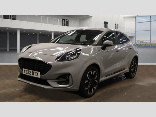 2 KEYS+1 OWNER FROM NEW+MEDIA+HISTORY+PARK CONTROL+BLUETOOTH+NAV+USB+AUX+DAB+PRIVACY+ALLOYS+CRUISE+HPI CLEAR+VOSA MOT HISTORY+FULL DEALER FACILITIES+GOOD MPG,+RAC CHECKED+The car is in very good condition in and out . Bodywork and interior clean for age and mileage . Interior is clean and tyres good ,Engine and gearbox in good order.  This 2022 Ford Puma ST Line T is a fantastic example, having had only one owner since new. It boasts a fuel efficient 1.0L Petrol Hybrid engine, meeting Euro 6 emission standards. For your convenience and comfort, this Puma is equipped with the desirable Parking Pack, which includes front and rear parking sensors along with a rear camera, you'll find manual air conditioning and the Ford SYNC 3 Navigation system, complete with Android Auto and Apple CarPlay connectivity, plus Bluetooth for seamless phone integration. The MOT remains valid until May 2026, offering peace of mind.  With an impressive fuel economy of 52 mpg, this Ford Puma ST Line T offers excellent running costs, a significant advantage over many similar vehicles. Its low CO2 emissions further contribute to its economical and environmentally conscious performance. This combination of advanced technology, comfort features, and efficient hybrid power makes it a compelling choice for those seeking a stylish and practical compact SUV..  18in Alloy Wheels - 5-Spoke - Matt Black, ABS - Anti-lock Braking System, Acoustic Laminated Windscreen, Active Grille Shutter, Automatic Dimming Rear View Mirror, Automatic Headlights with Rain-Sensing W, B&O Premium Audio System and Ford SY, Carbon-Look Interior Deco Spears, Centre Console - Premium with Openable S, Courtesy Lights - Ambient LED Courtesy L, Cruise Control with Intelligent Speed As, Drivers Manual 4-Way Seat Adjustment wit, Ecoboost Hybrid Tailgate Badge, Electric Windows - Front and Rear, Electronic Air Temperature Control - EAT, Emergency Brake Warning - Automatic Haza, ESC - Electronic Stability Control and H, First Aid Kit Strap, Floor Mats - Front and Rear, Ford Me